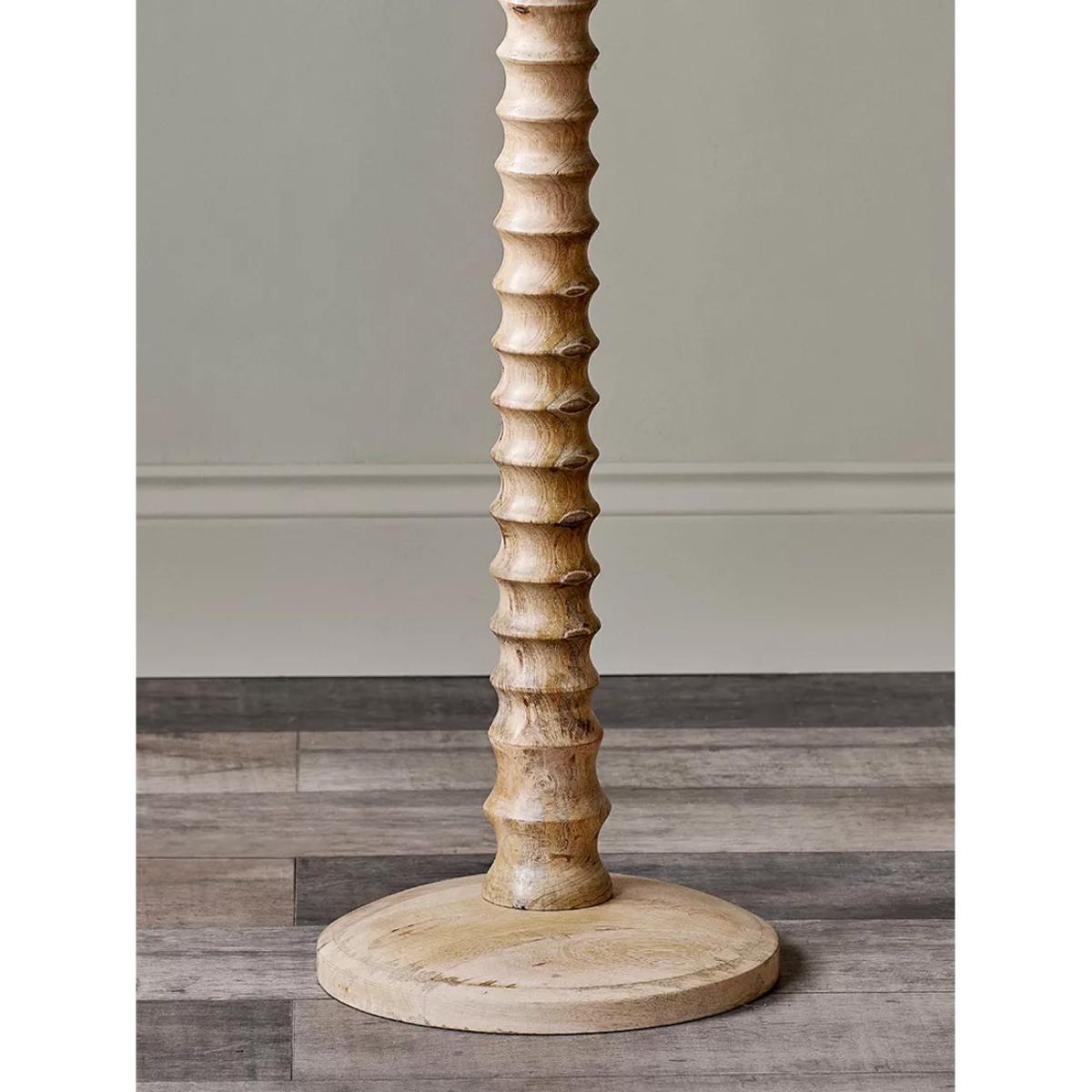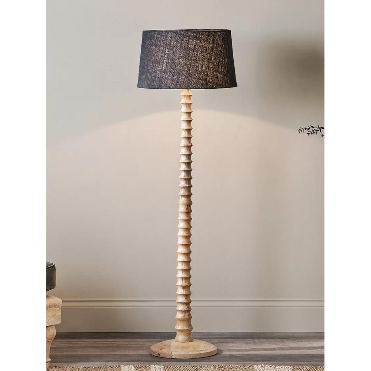 The hand carved spiral design of the elegant Avisa floor lamp base has been created from one continuous piece of solid mango wood. It will bring instant interest to a room and makes a striking reading lamp, adding character to any interior scheme and a relaxed, welcoming atmosphere. A shade is not included.