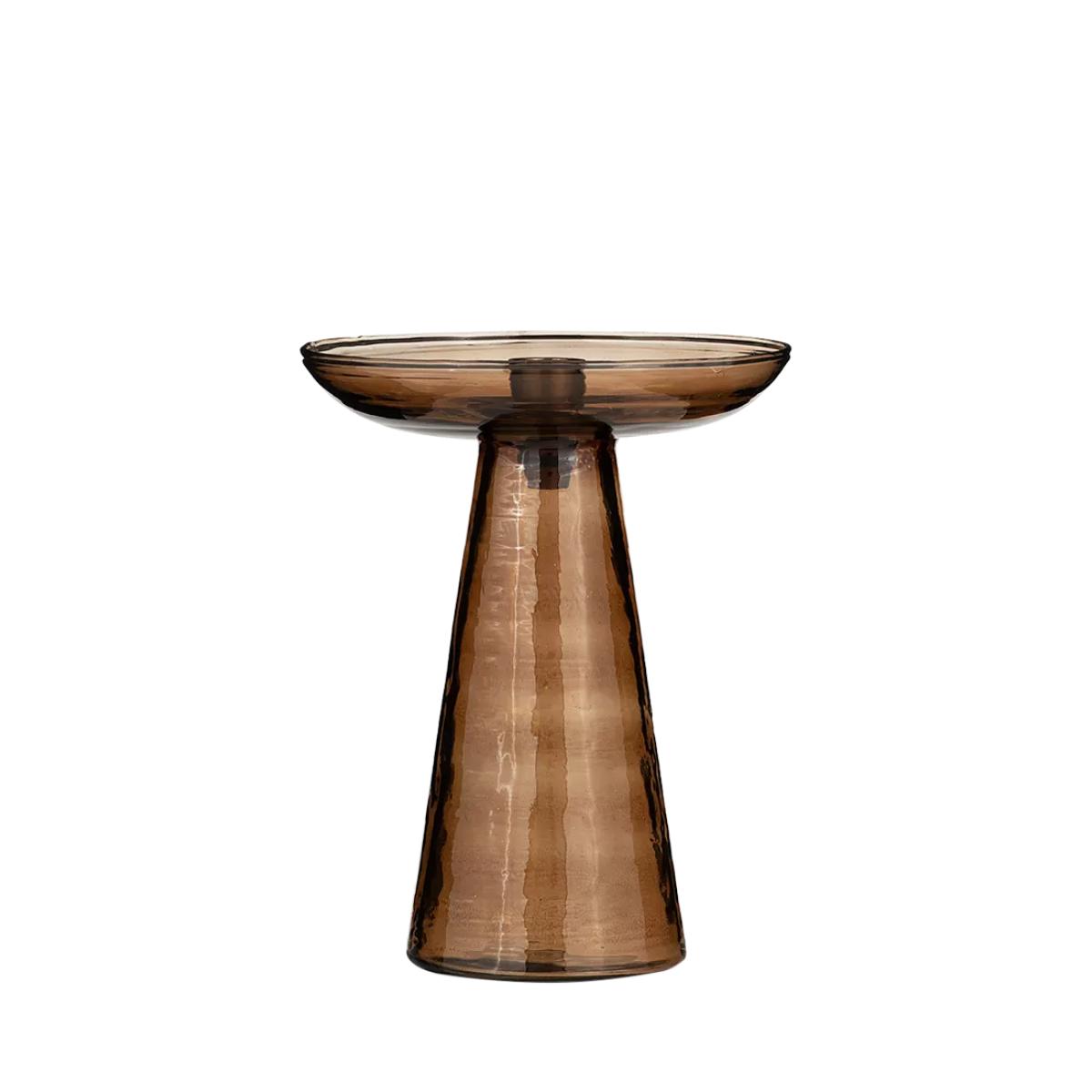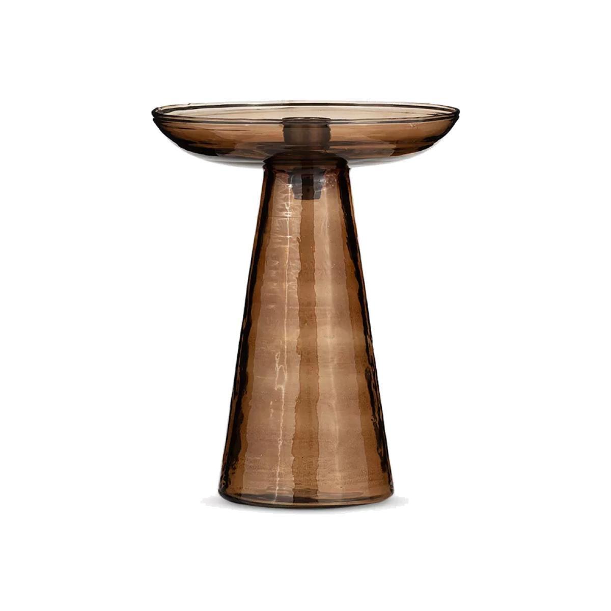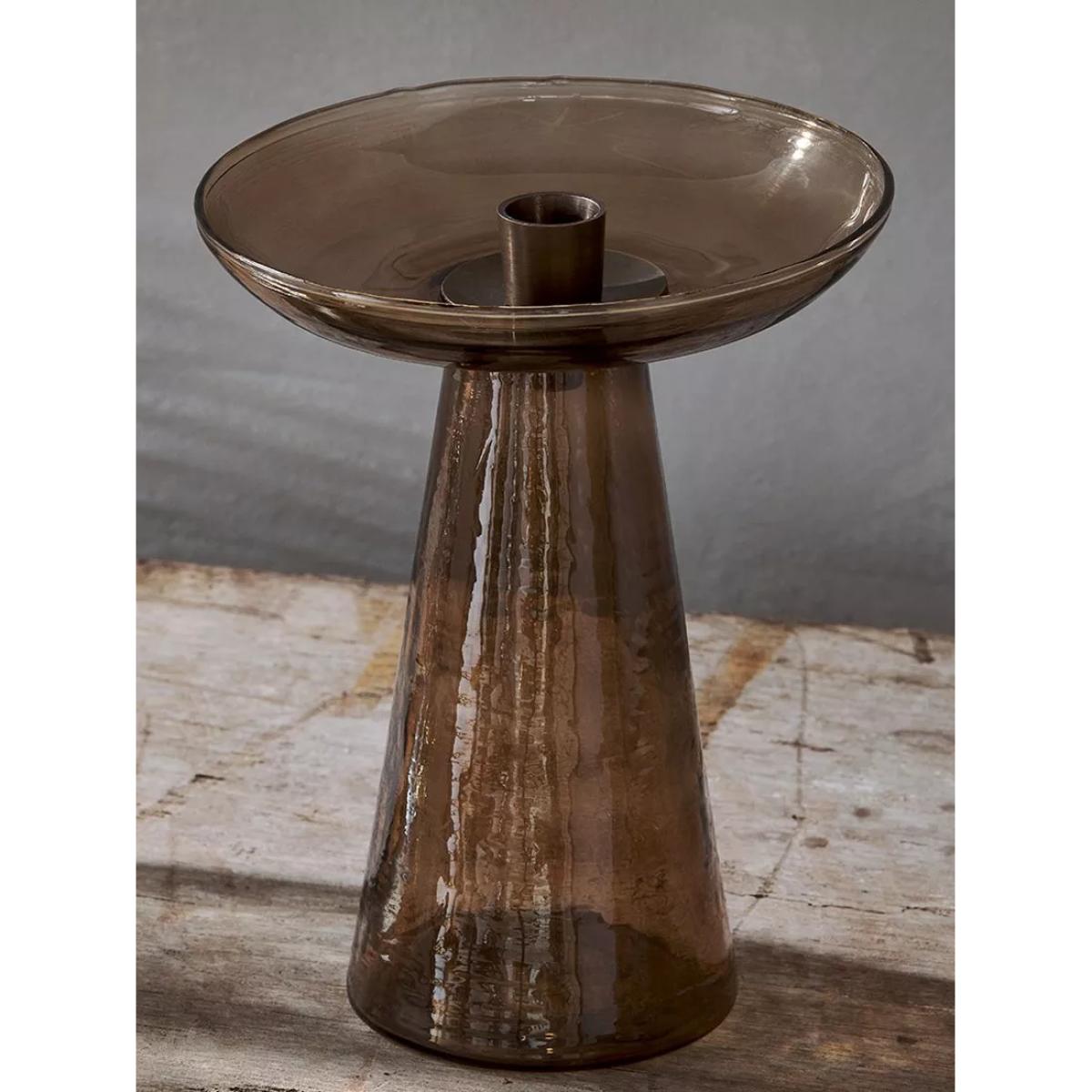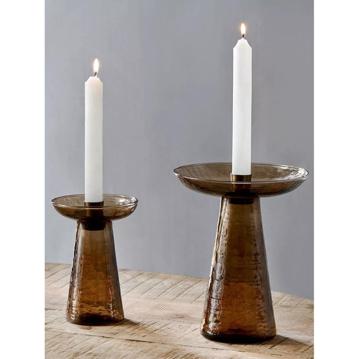 The enchanting Avyn smoke glass candle holder is a simple yet sophisticated piece that is as sculptural as it is functional. The appealing tones of the glass flatter the smooth and elegant contours and tapered base of the holder. Designed to hold a dining candle, style in pairs for a traditional dining table setting or mixed sizes for a more creative display. Each glass candle holder is crafted from recycled glass.