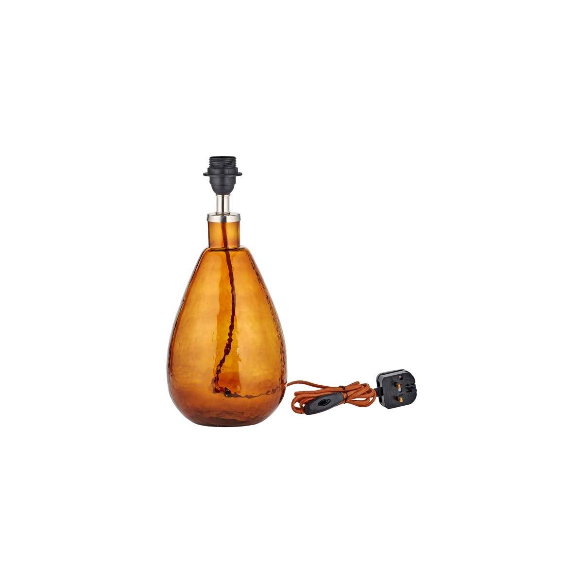This small glass Baba table lamp has a tall organic shape. The burnt amber coloured glass provides a sophisticated tone, with the small size of this elegant table lamp well-suited to a beside light or side table. Complete the look with a Dia lampshade. | nkuku Baba Recycled Glass Lamp | Lamps | Burnt Amber | Small Tall