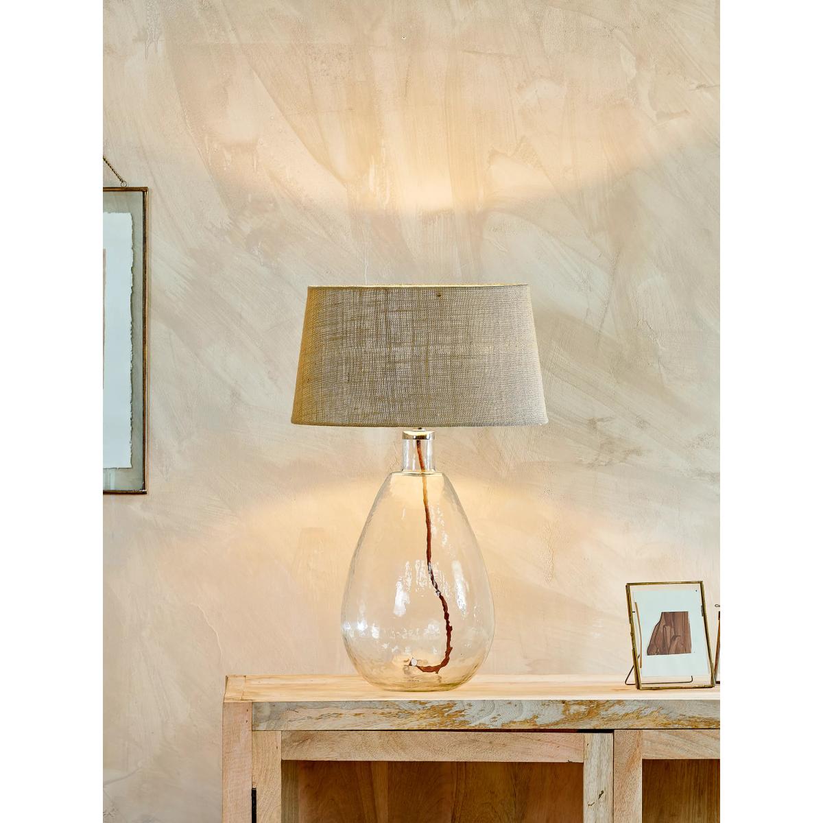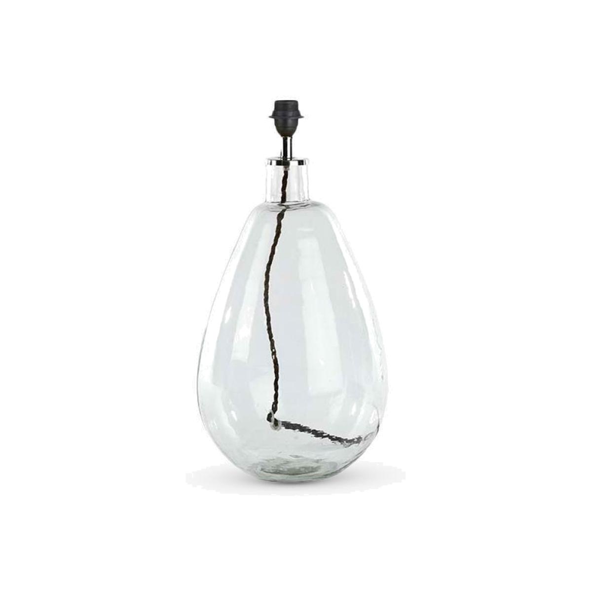The Baba glass lamp is a Nkuku bestseller. Combining elegance and style, each lamp is handmade from recycled glass by skilled artisans using traditional techniques. The glass is hand blown into a mould, then hammered to create its beautiful, textured finish. Once on, the lamp creates a beautiful, ambient light. This lamp, with its simple design and clean aesthetic, is the perfect addition to your home. Features a brown fabric cord. Please note: lampshade and bulb are not included.