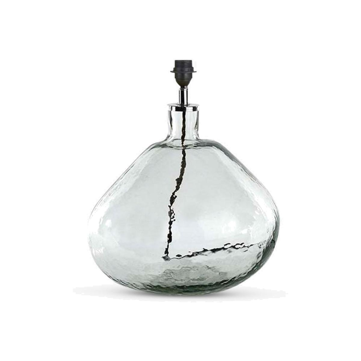 The Baba glass lamp is a Nkuku bestseller. Combining elegance and style, each lamp is handmade from recycled glass by skilled artisans using traditional techniques. The glass is handblown into a mould, then hammered to create its beautiful, textured finish. Once on, the lamp creates a beautiful, ambient light. This lamp, with its simple design and clean aesthetic, is the perfect addition to your home. Features a brown fabric cord. Please note: lampshade and bulb are not included.
