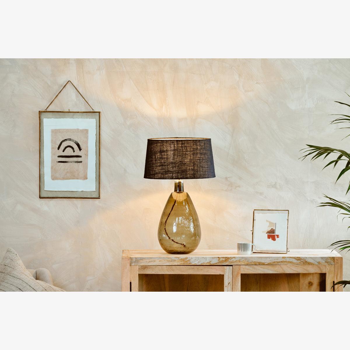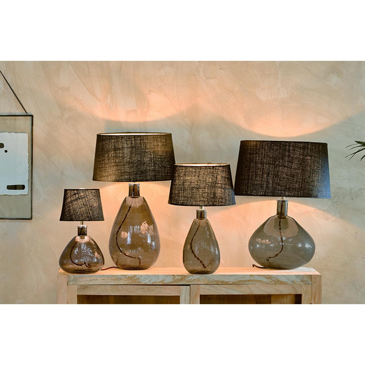 Elegant and timeless, the organic shape of these beautifully crafted green smoke-hued glass lamp bases would add the finishing touch to any interior. The Baba is skilfully made from recycled glass, handblown into a mould and delicately hammered to create an irregular but smooth finish. The height of these elegant lights makes them ideal for a sideboard or console. Complete the look with one of our lampshades. Large tall lamp pictured with our large sized Dia Jute Lampshade.