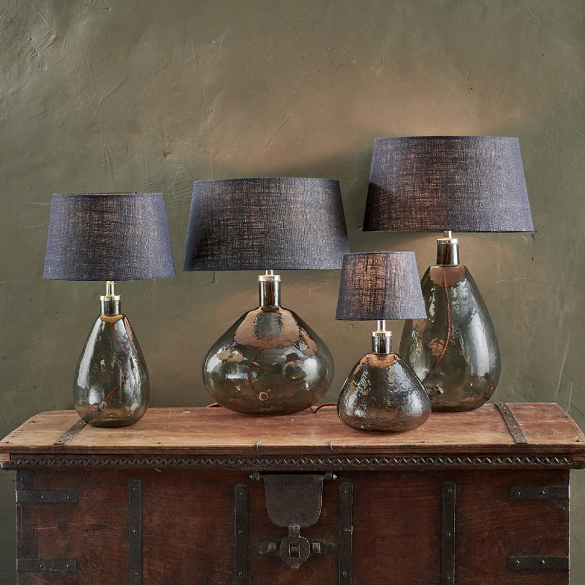 The smoky hues of this sophisticated Baba Wide Glass Lamp from Nkuku are enhanced by the hammered glass texture. Hand blown from recycled glass by skilled artisans in Rajasthan, the handmade process creates an imperfect, textured finish. Ideal for adding interest to your side table, the simple organic shape will complement any space.