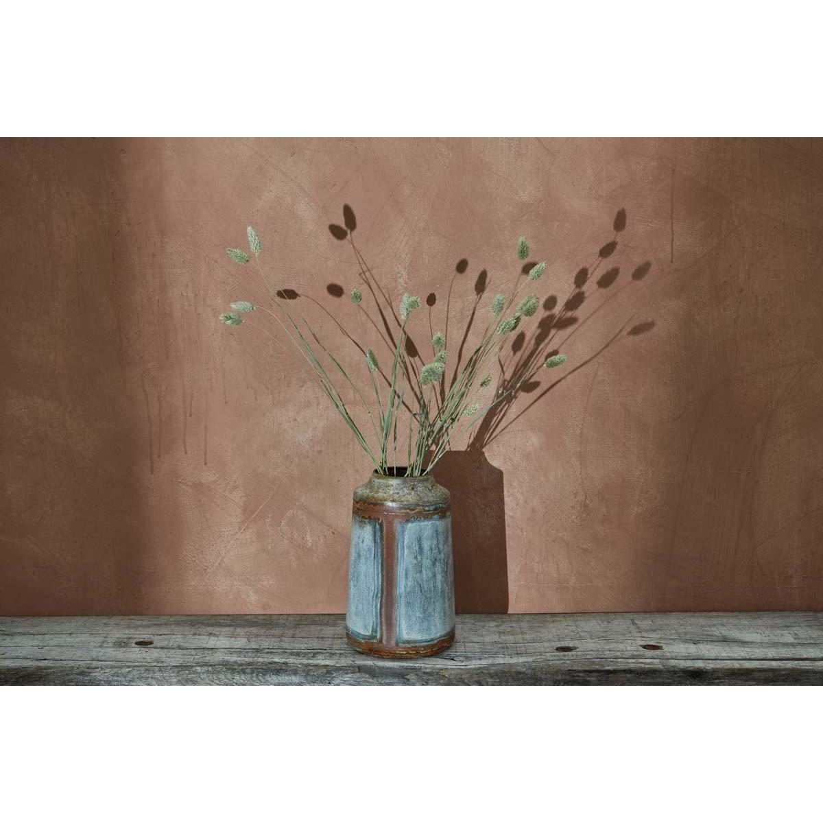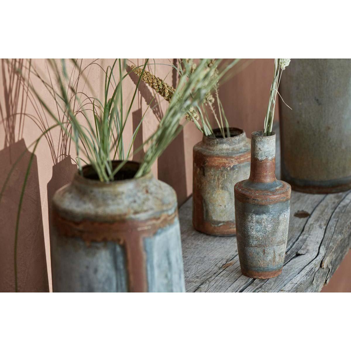 The aged - zinc patina of these rustic vases, gives them an imperfect aesthetic and creates an ideal back drop for flowers and foliage. | nkuku Bennu Straight Vase | Vases & Planters | Aged Zinc | 26 x 16 cm (Diameter)