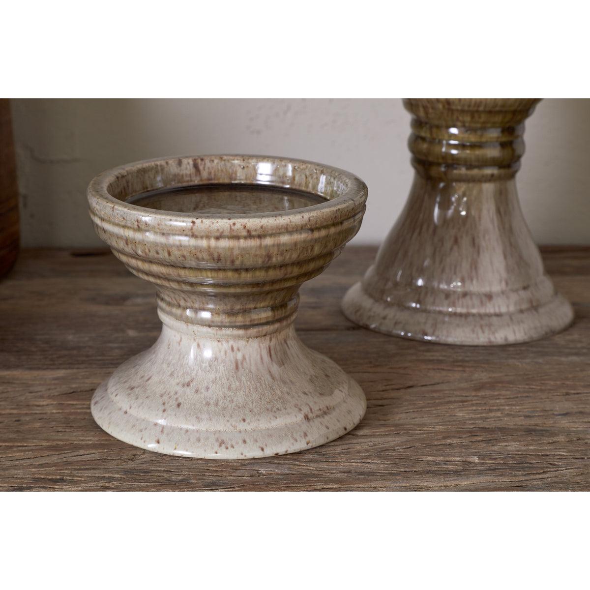 nkuku Cabra Reactive Glaze Candle Holder | Candles Holders & Lanterns | Olive/Natural | Small