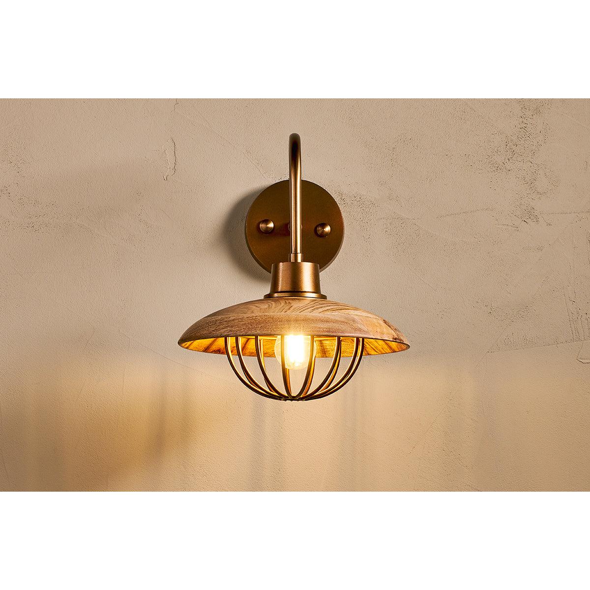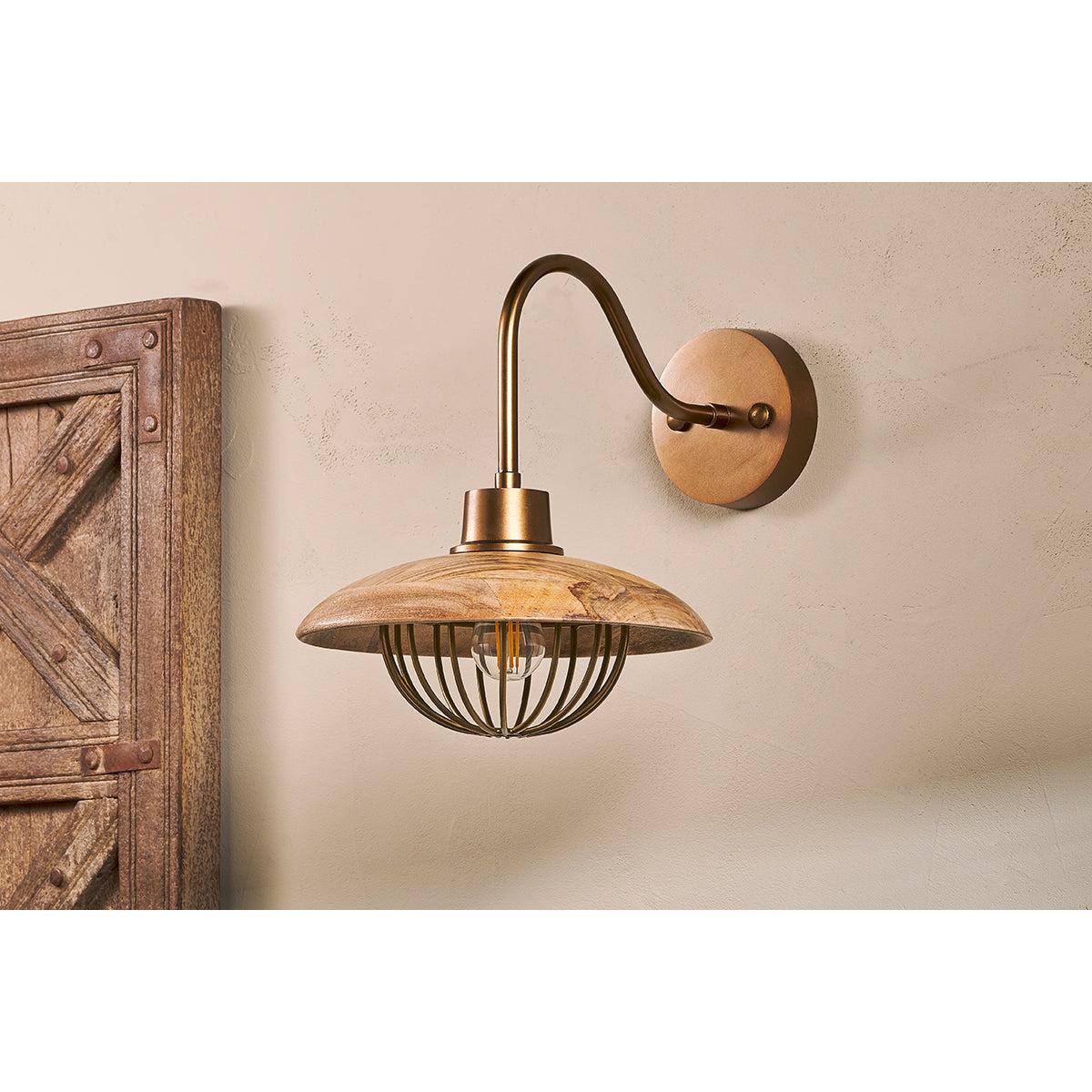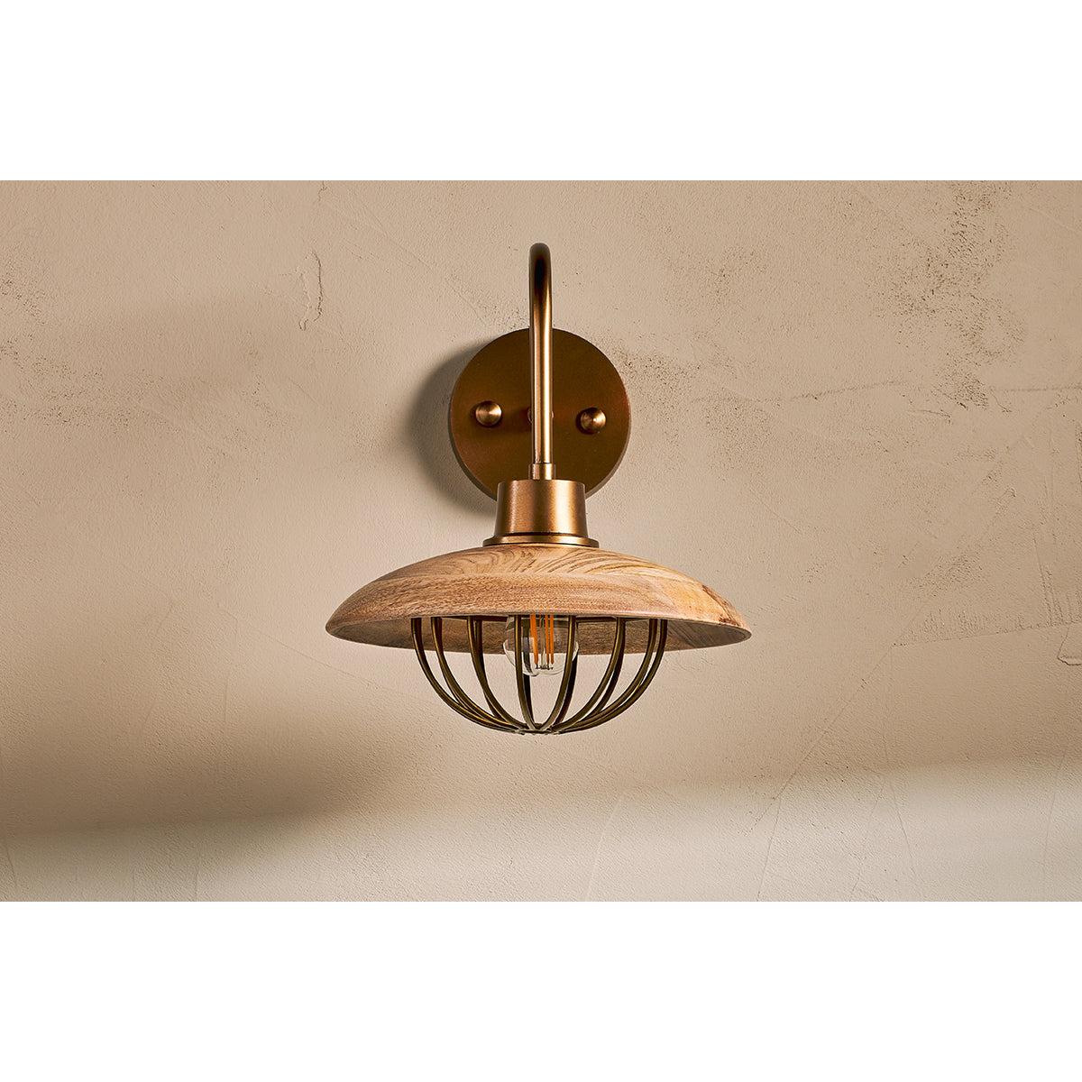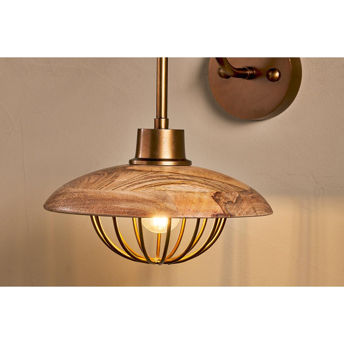 Nkuku Chakai Mango Wood Wall Lamp | Lights | Natural/Antique Brass