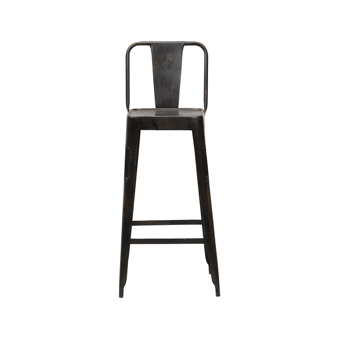 I really like this bar stool because of its bold distressed black finish, which adds a touch of industrial charm to any space. It works especially well in urban, rustic, or eclectic interiors where a statement piece is needed. I’d recommend styling it with minimalist accessories to let the metal’s character shine, or pairing it with a reclaimed wood or concrete bar for a cohesive look. Practical tips include stacking it with other stools for versatility, or adding a simple cushion or padded cover if comfort is a priority. Overall, it’s a versatile piece that blends well in both contemporary and vintage-inspired settings.