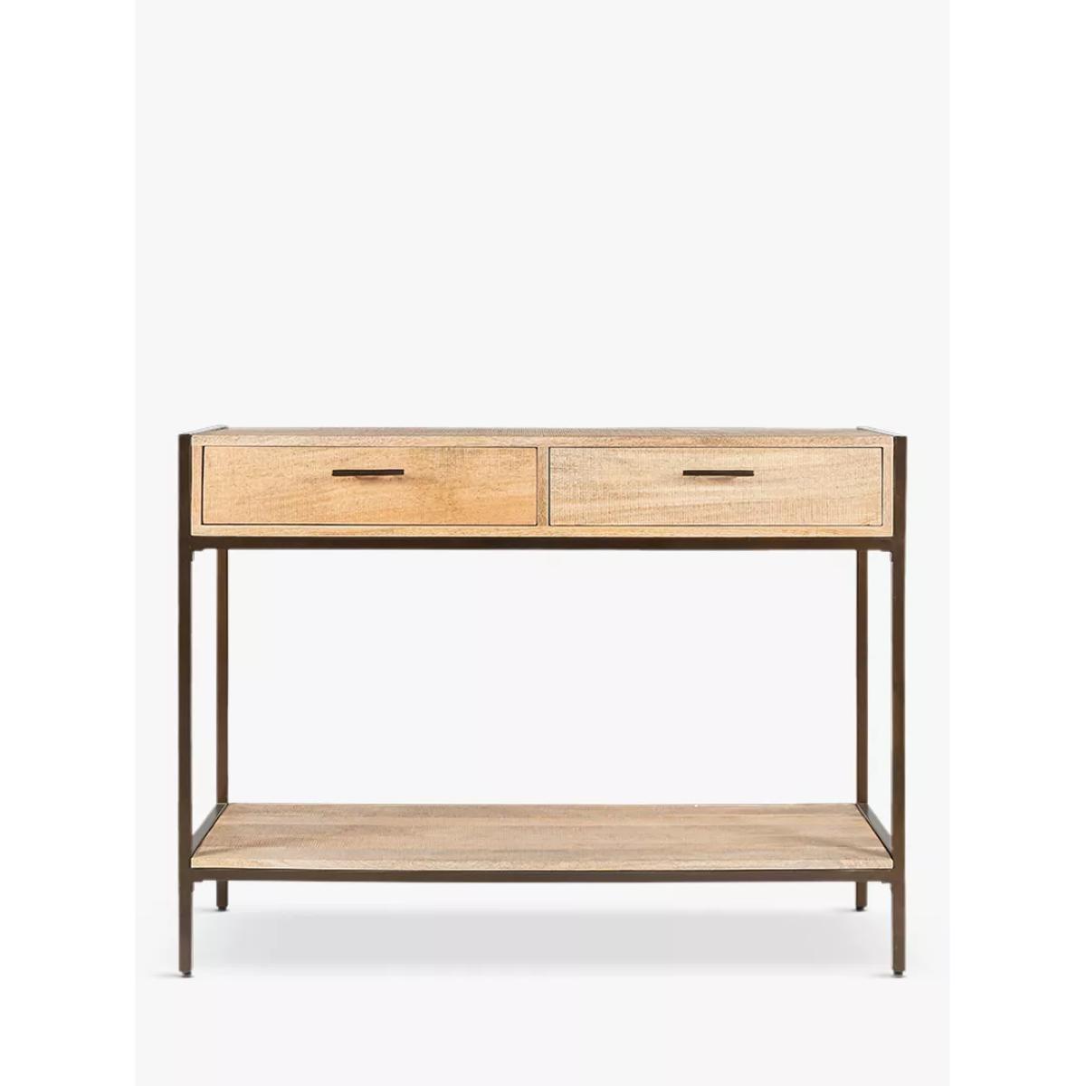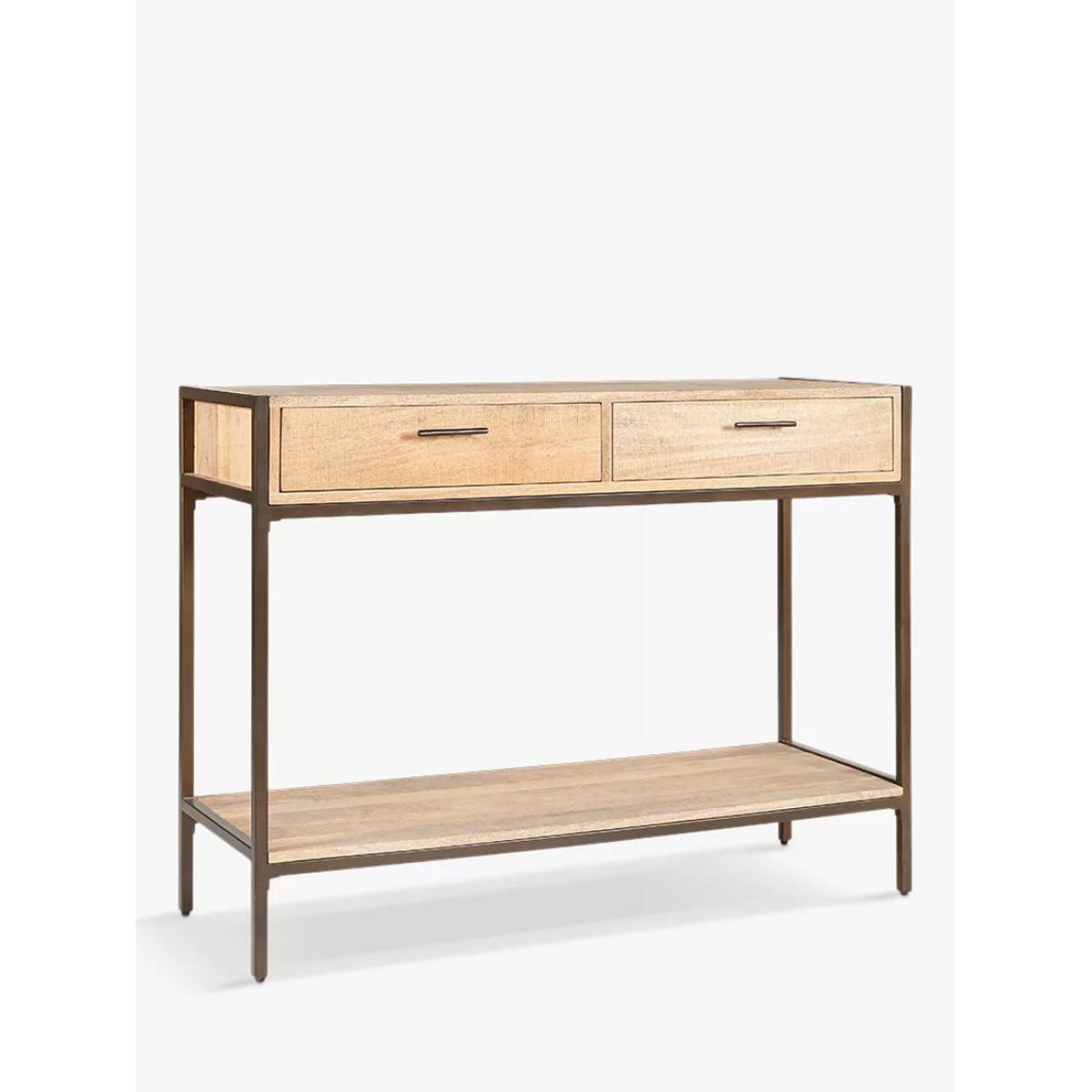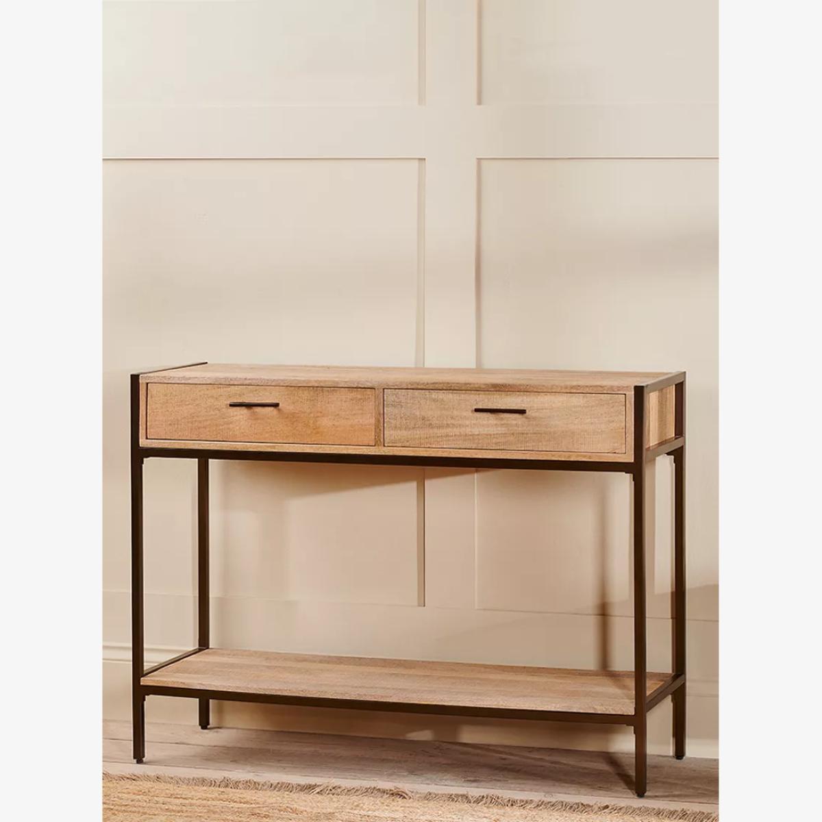 I’m a fan of this console’s mix of solid mango wood and slim metal frame - it feels both sturdy and light, with two shallow drawers to keep clutter out of sight and a lower shelf that’s perfect for baskets. It works just as well in a Scandi-inspired hallway as it does in an industrial-style living room or a pared-back modern home. Style it by leaning a round mirror above, clustering a couple of ceramic vases and a small plant to one side, then balancing with a stack of books and a slim table lamp. Tuck woven baskets underneath to corral blankets or magazines and keep the top looking tidy.