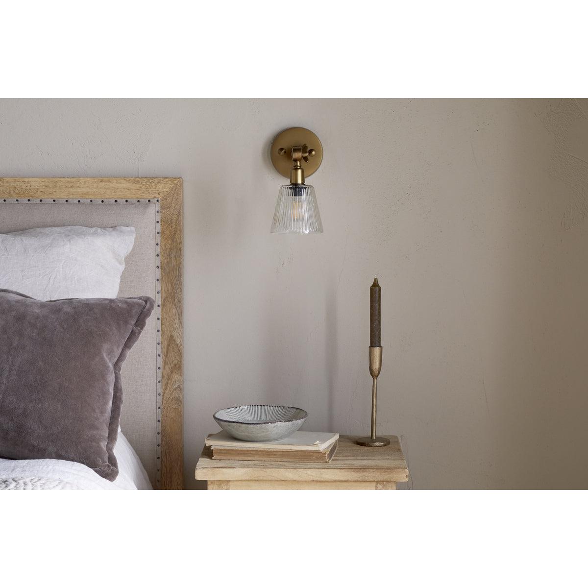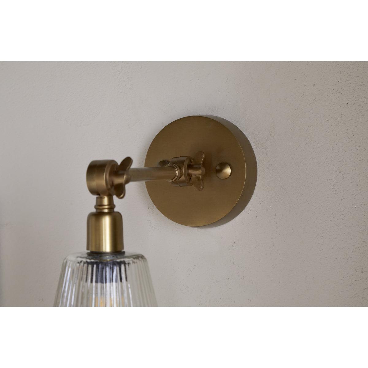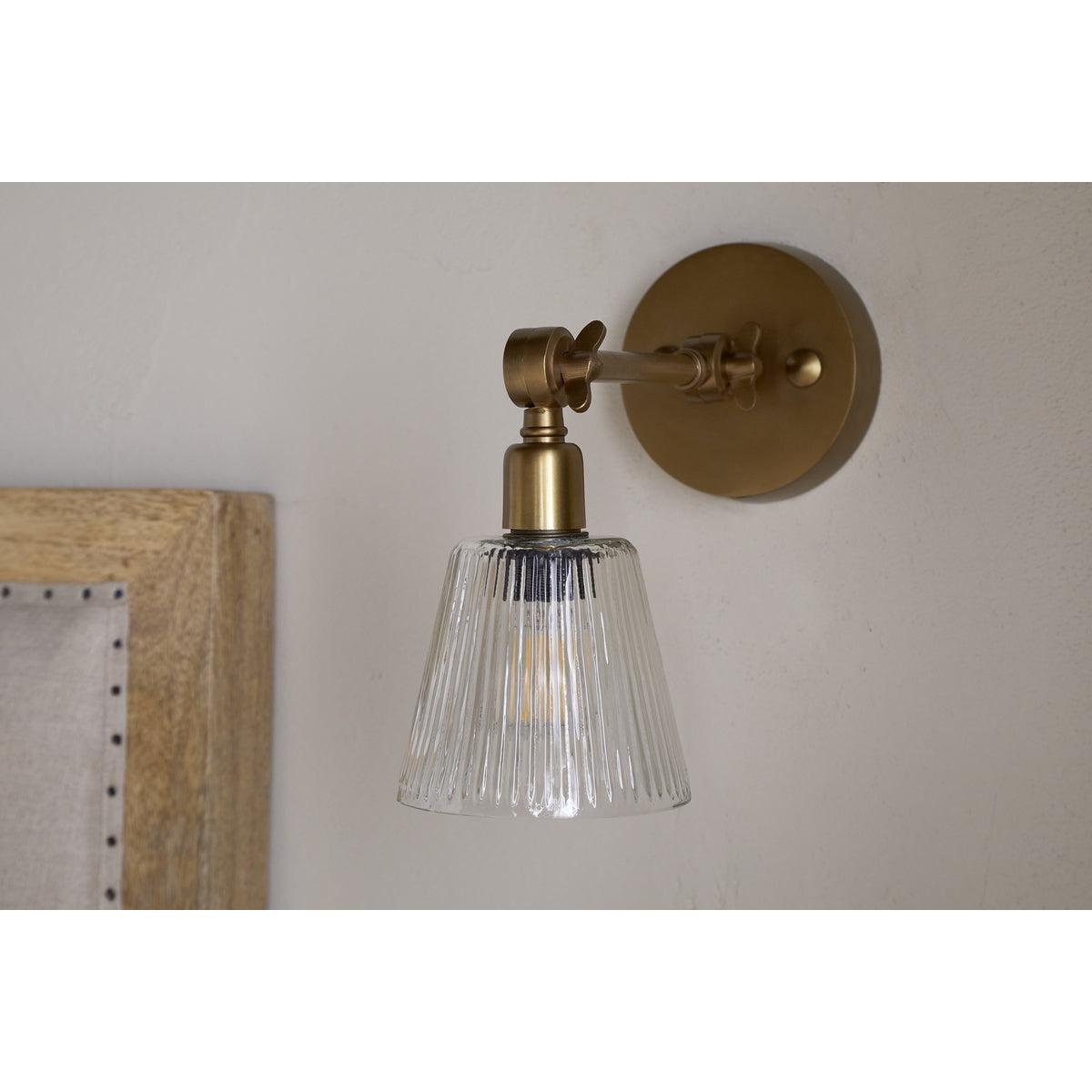 nkuku Davika Ribbed Glass Task Wall Lamp | Lights | Antique Brass/Clear Glass