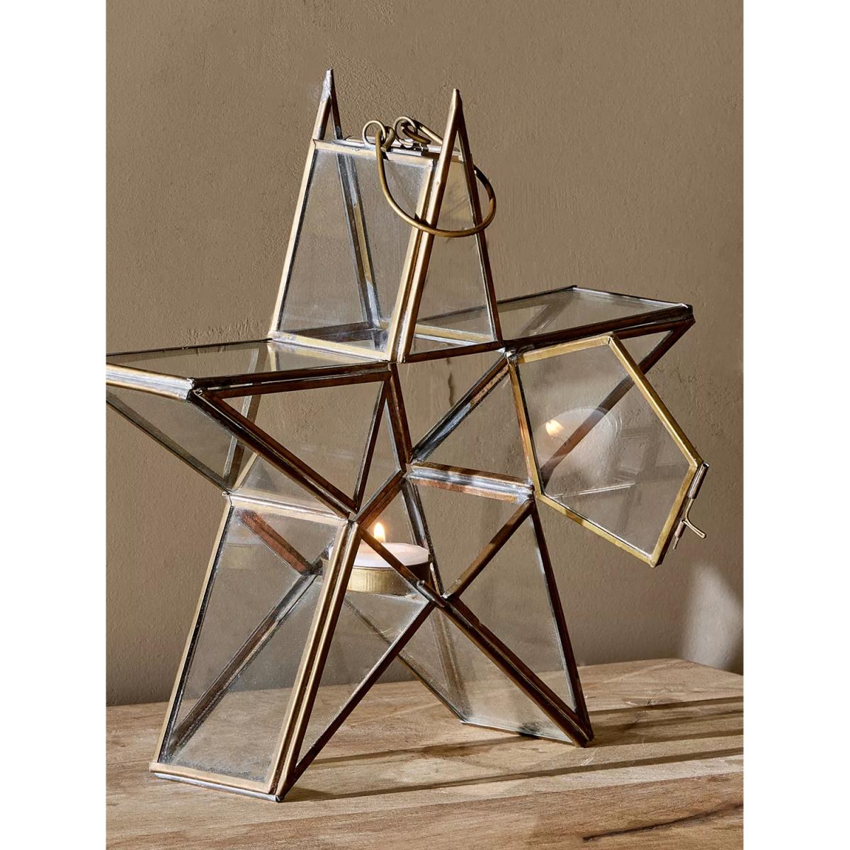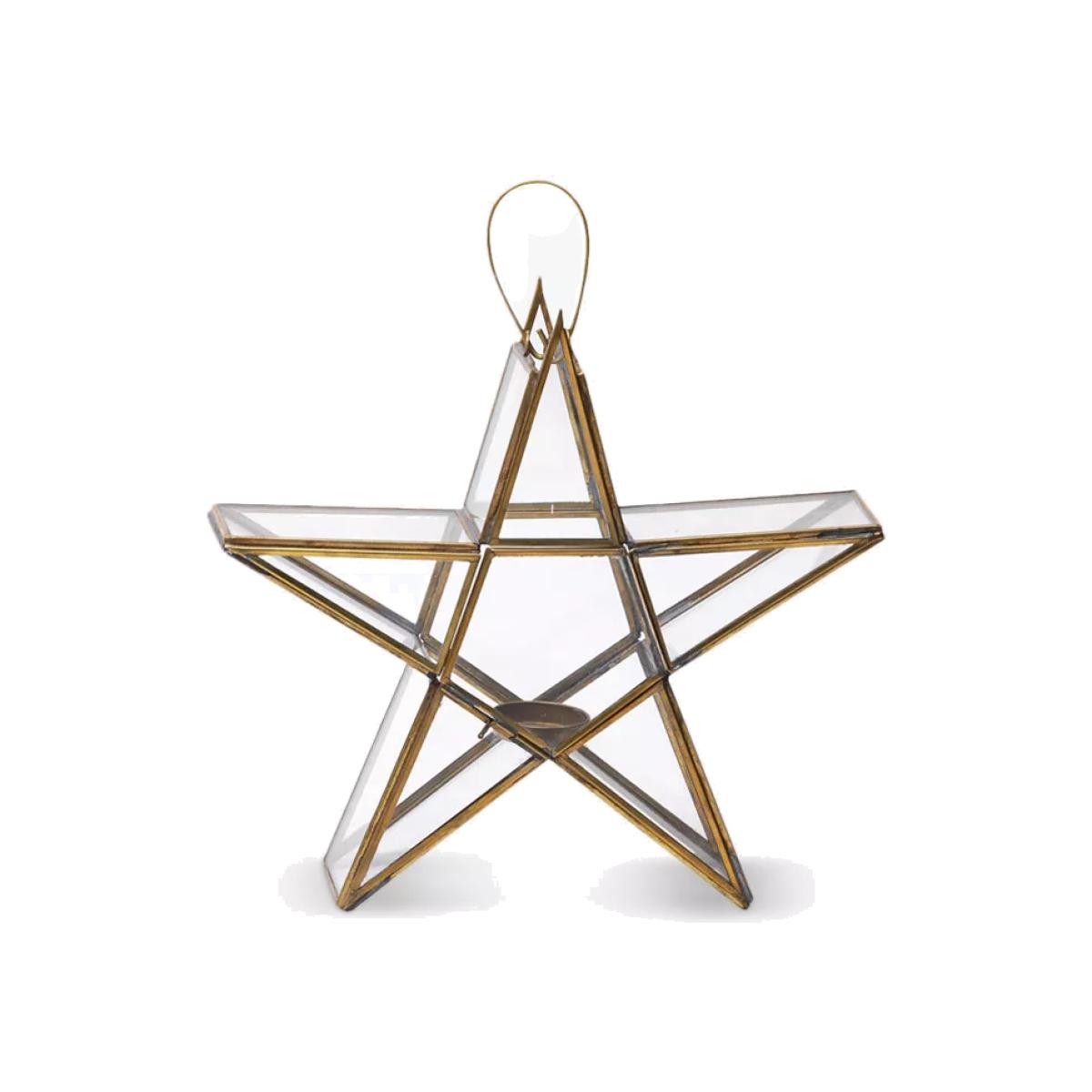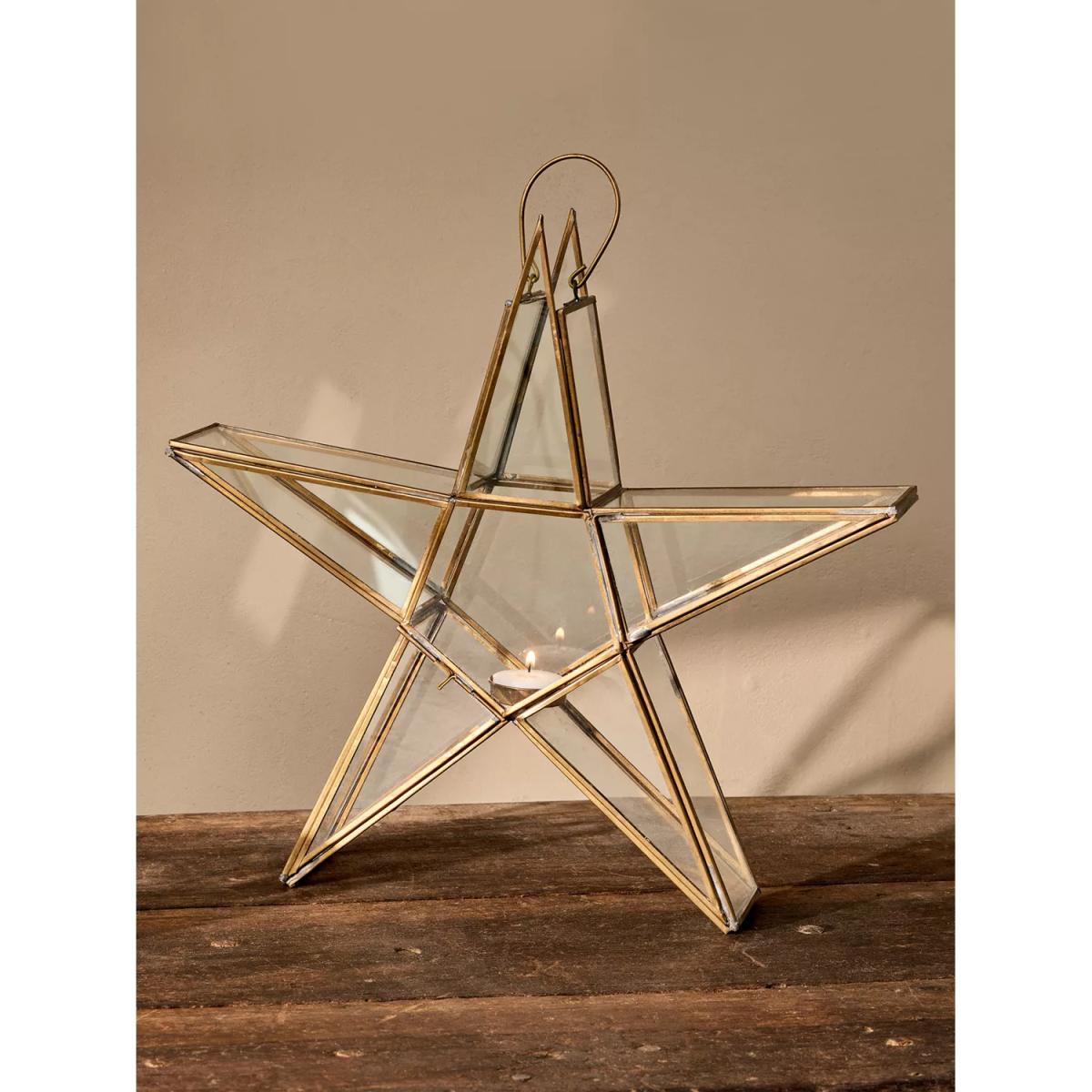 This standing star tealight holder looks gorgeous whether displayed alone or grouped with others and comes in an antique brass finish, which makes it particularly festive for Christmas or weddings. Tealight not included.