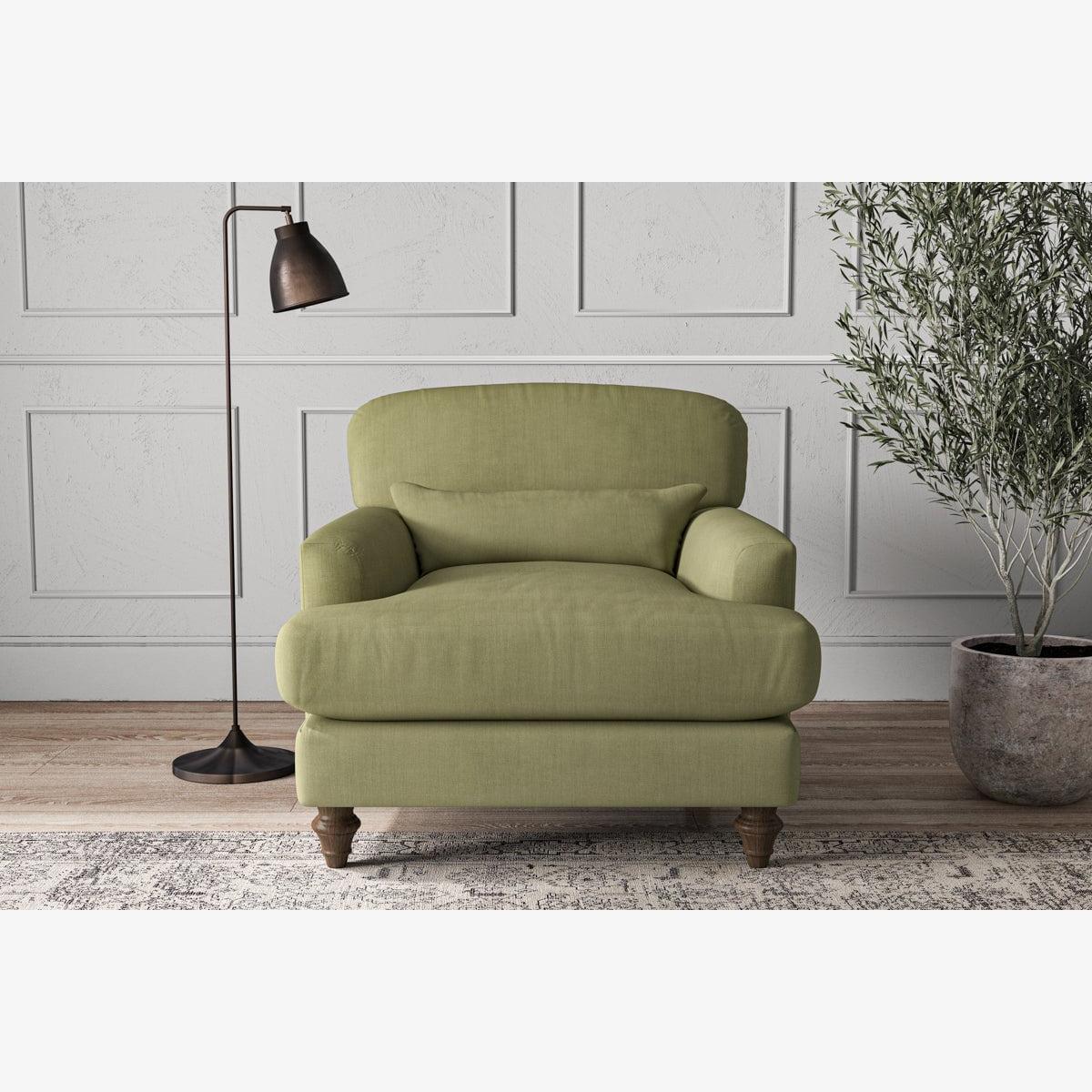 Our Deni armchair is generously proportioned with deep, sumptuous seat cushions for luxurious comfort. Handcrafted from a solid hardwood frame with high-grade steel serpentine springs and foam and fibre wrap filling, this timeless collection celebrates the best of British quality and design. Fine details include in-built back cushions, hand-turned hardwood feet and a separate lumbar cushion for added comfort. Our upholstery fabrics are sourced from Italy’s finest mills and are chosen for their style and quality. We have selected a beautiful heavyweight, soft washed linen with an outstanding texture. Our linen is perfectly suited to upholstery, with an appealing natural, and tactile feel. It is also heavy and durable. The linen is FR treated for domestic upholstery ensuring peace of mind as well as meeting specialist UK furniture requirements. Our curated colour palette offers a variety of 11 sophisticated muted shades. Please note, our white background cut-out photography is shown in Natural for shape and style reference. Fabric Swatch Ordering We recommend ordering fabric swatches before placing your order, giving you the chance to feel the fabric and see your colour choices within your own home. You can order up to 6 free fabric swatches by clicking here. Before placing your order, it's important to take the time to measure the space you intend to place your made-to-order furniture to ensure it fits properly. You can read more in our Sofa Buying Guide.