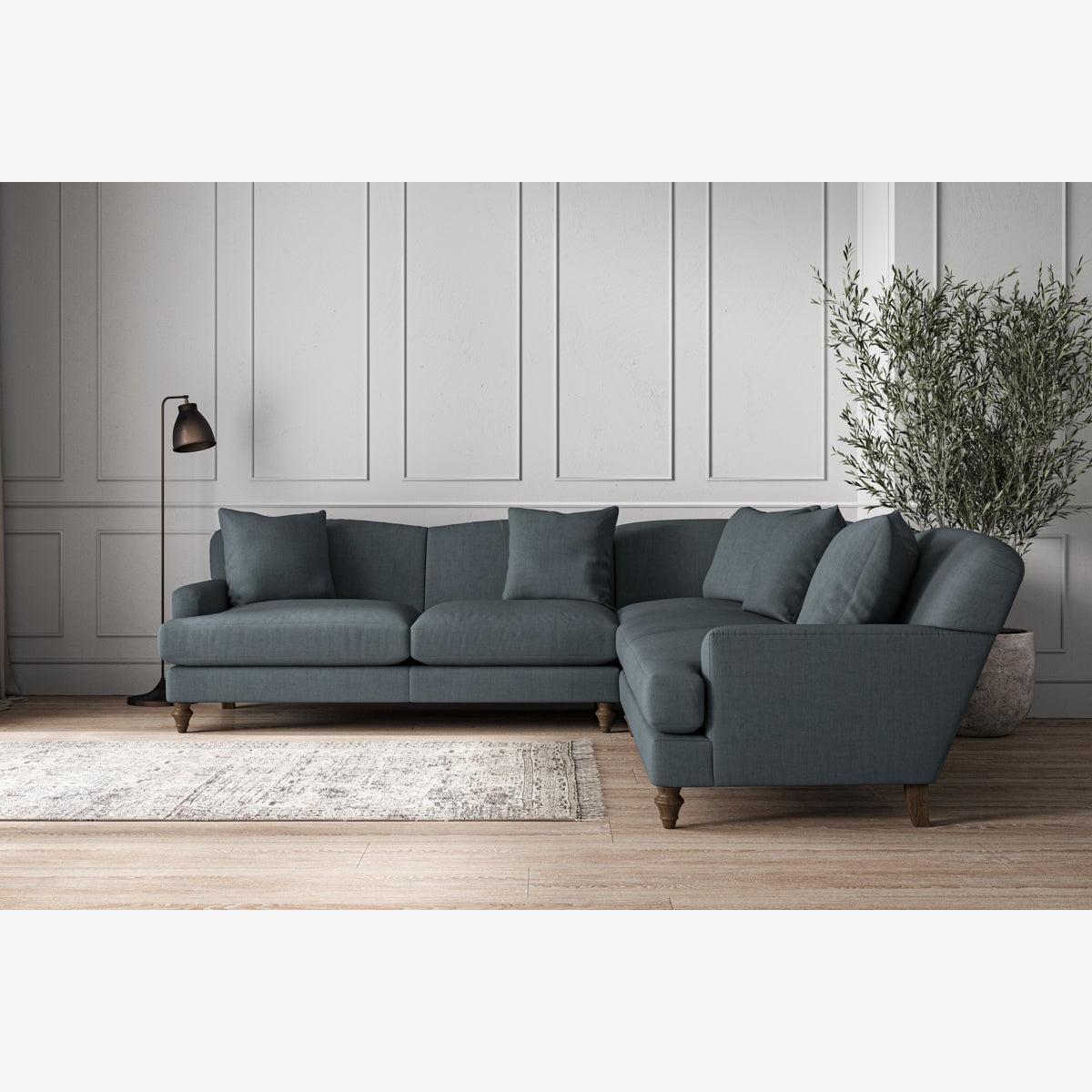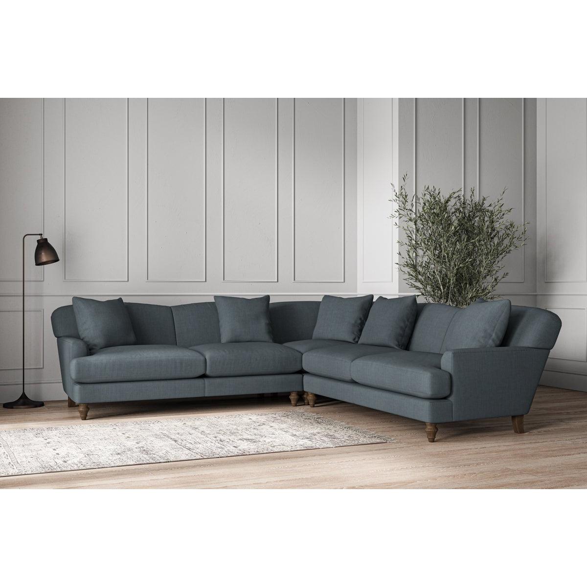 Our Deni large corner sofa is generously proportioned with deep, sumptuous seat cushions for luxurious comfort. Handcrafted from a solid hardwood frame with high-grade steel serpentine springs and foam and fibre wrap filling, this timeless collection celebrates the best of British quality and design. Fine details include in-built back cushions, hand-turned hardwood feet and a set of five scatter cushions for added comfort. Our upholstery fabrics are sourced from Italy’s finest mills and are chosen for their style and quality. We have selected a beautiful heavyweight, soft washed linen with an outstanding texture. Our linen is perfectly suited to upholstery, with an appealing natural, and tactile feel. It is also heavy and durable. The linen is FR treated for domestic upholstery ensuring peace of mind as well as meeting specialist UK furniture requirements. Our curated colour palette offers a variety of 11 sophisticated muted shades. Please note, our white background cut-out photography is shown in Natural for shape and style reference. Fabric Swatch Ordering We recommend ordering fabric swatches before placing your order, giving you the chance to feel the fabric and see your colour choices within your own home. You can order up to 6 free fabric swatches by clicking here. Before placing your order, it's important to take the time to measure the space you intend to place your made-to-order furniture to ensure it fits properly. You can read more in our Sofa Buying Guide.