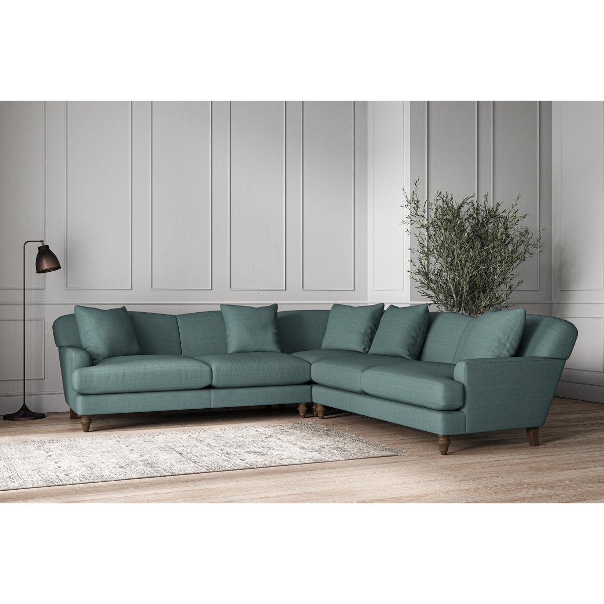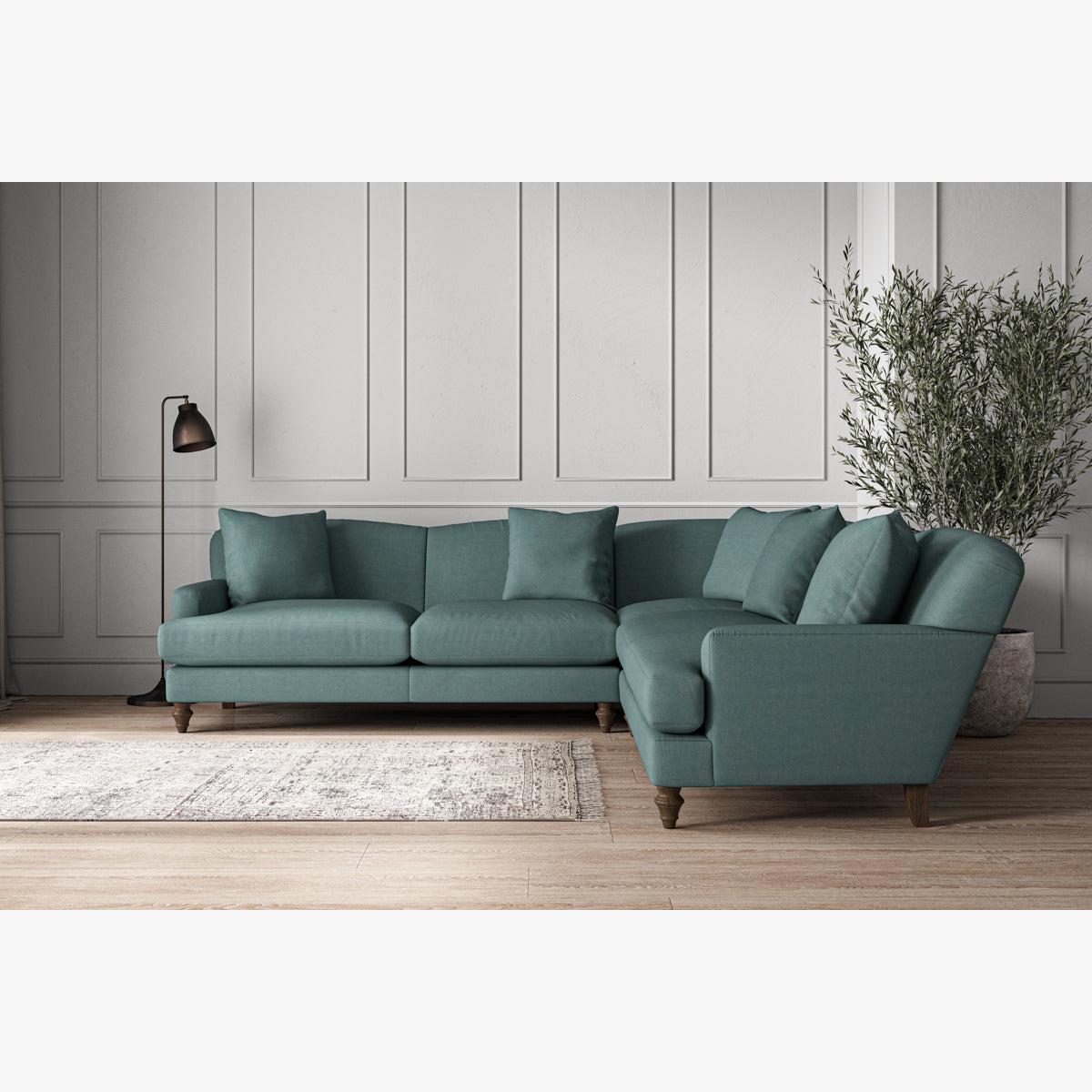 Our Deni large corner sofa is generously proportioned with deep, sumptuous seat cushions for luxurious comfort. Handcrafted from a solid hardwood frame with high-grade steel serpentine springs and foam and fibre wrap filling, this timeless collection celebrates the best of British quality and design. Fine details include in-built back cushions, hand-turned hardwood feet and a set of five scatter cushions for added comfort. Our upholstery fabrics are chosen for their style and quality, where all fabrics are FR treated for domestic upholstery ensuring peace of mind as well as meeting specialist UK furniture requirements. Our curated colour palette offers a variety of sophisticated muted shades. Please note, our white background cut-out photography is shown in Natural for shape and style reference. Fabric Swatch Ordering We recommend ordering fabric swatches before placing your order, giving you the chance to feel the fabric and see your colour choices within your own home. You can order up to 6 free fabric swatches by clicking here. Before placing your order, it's important to take the time to measure the space you intend to place your made-to-order furniture to ensure it fits properly. You can read more in our Sofa Buying Guide.