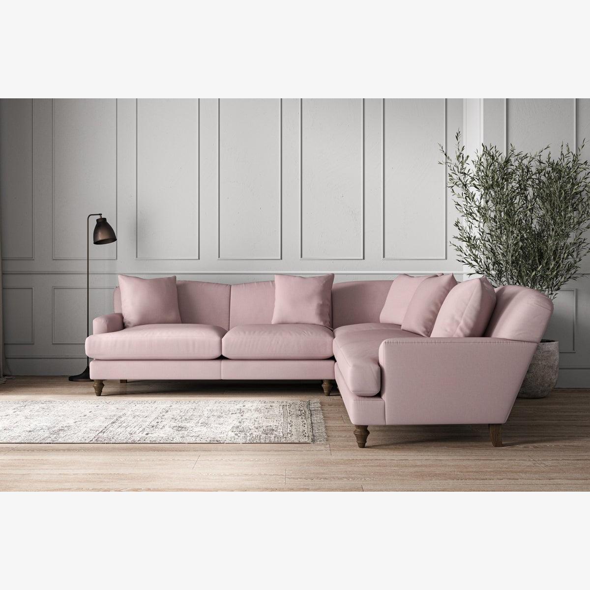 Our Deni large corner sofa is generously proportioned with deep, sumptuous seat cushions for luxurious comfort. Handcrafted from a solid hardwood frame with high-grade steel serpentine springs and foam and fibre wrap filling, this timeless collection celebrates the best of British quality and design. Fine details include in-built back cushions, hand-turned hardwood feet and a set of five scatter cushions for added comfort. Our upholstery fabrics are chosen for their style and quality, where all fabrics are FR treated for domestic upholstery ensuring peace of mind as well as meeting specialist UK furniture requirements. Our curated colour palette offers a variety of sophisticated muted shades. Please note, our white background cut-out photography is shown in Natural for shape and style reference. Fabric Swatch Ordering We recommend ordering fabric swatches before placing your order, giving you the chance to feel the fabric and see your colour choices within your own home. You can order up to 6 free fabric swatches by clicking here. Before placing your order, it's important to take the time to measure the space you intend to place your made-to-order furniture to ensure it fits properly. You can read more in our Sofa Buying Guide.