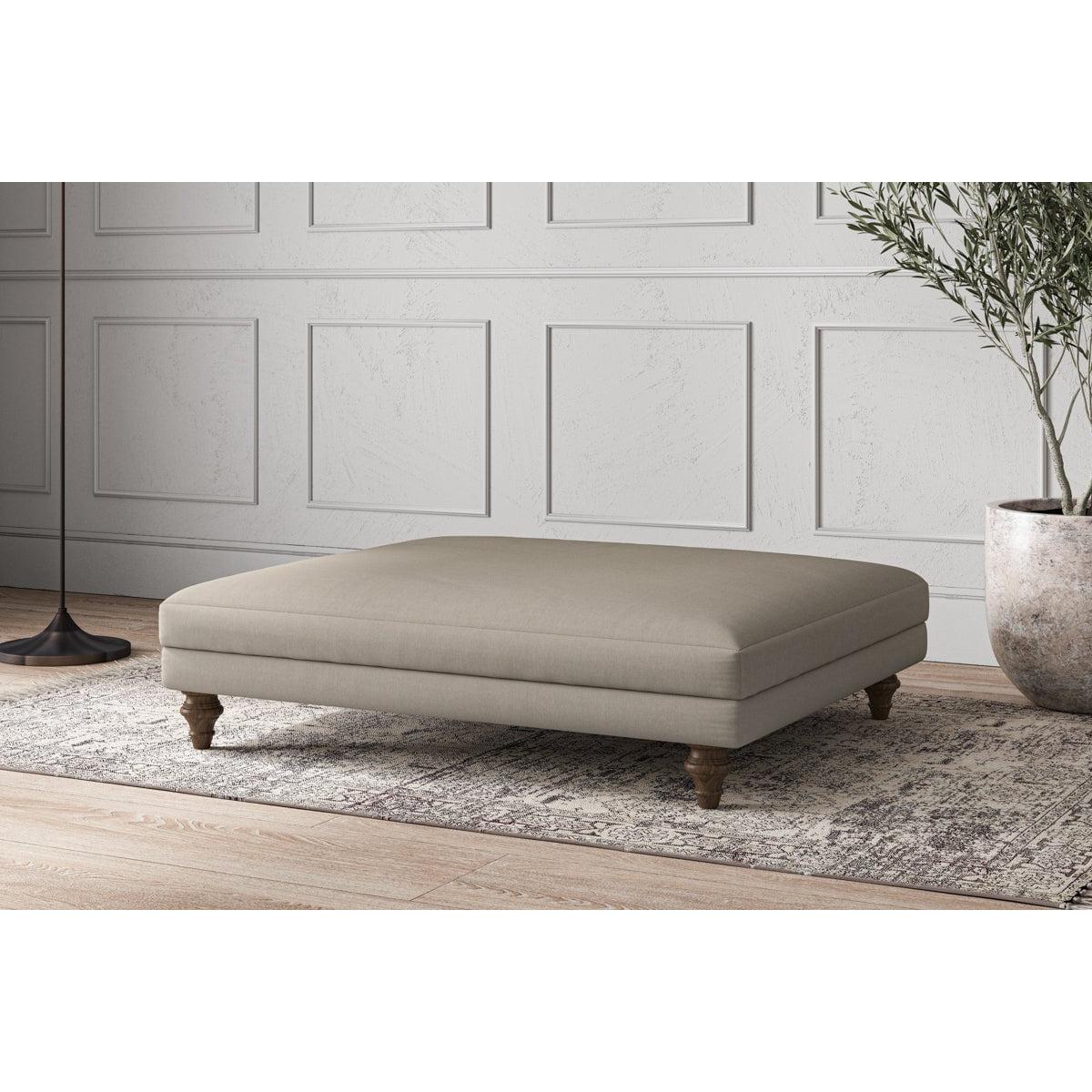 Our Deni grand footstool is generously proportioned with deep, sumptuous seat and a solid hardwood frame. Combine it with one of our Deni sofas for added comfort, where it also works perfectly as an upholstered coffee table. Our handmade sofa collections celebrate the best of British quality in timeless designs that bring effortless style to an interior. We’ve considered every detail to ensure your made to order furniture provides comfort, longevity, and style. Handcrafted by specialists in our Nottinghamshire workshop, each piece is handmade to order using traditional techniques with exceptional craftmanship. Our upholstery fabrics are chosen for their style and quality, where all fabrics are FR treated for domestic upholstery ensuring peace of mind as well as meeting specialist UK furniture requirements. Our curated colour palette offers a variety of sophisticated muted shades. Please note, our white background cut-out photography is shown in Natural for shape and style reference. Fabric Swatch OrderingWe recommend ordering fabric swatches before placing your order, giving you the chance to feel the fabric and see your colour choices within your own home. You can order up to 6 free fabric swatches by clicking here. it fit?Before placing your order, it's important to take the time to measure the space you intend to place your made-to-order furniture to ensure it fits properly. You can read more in our Sofa Buying Guide.