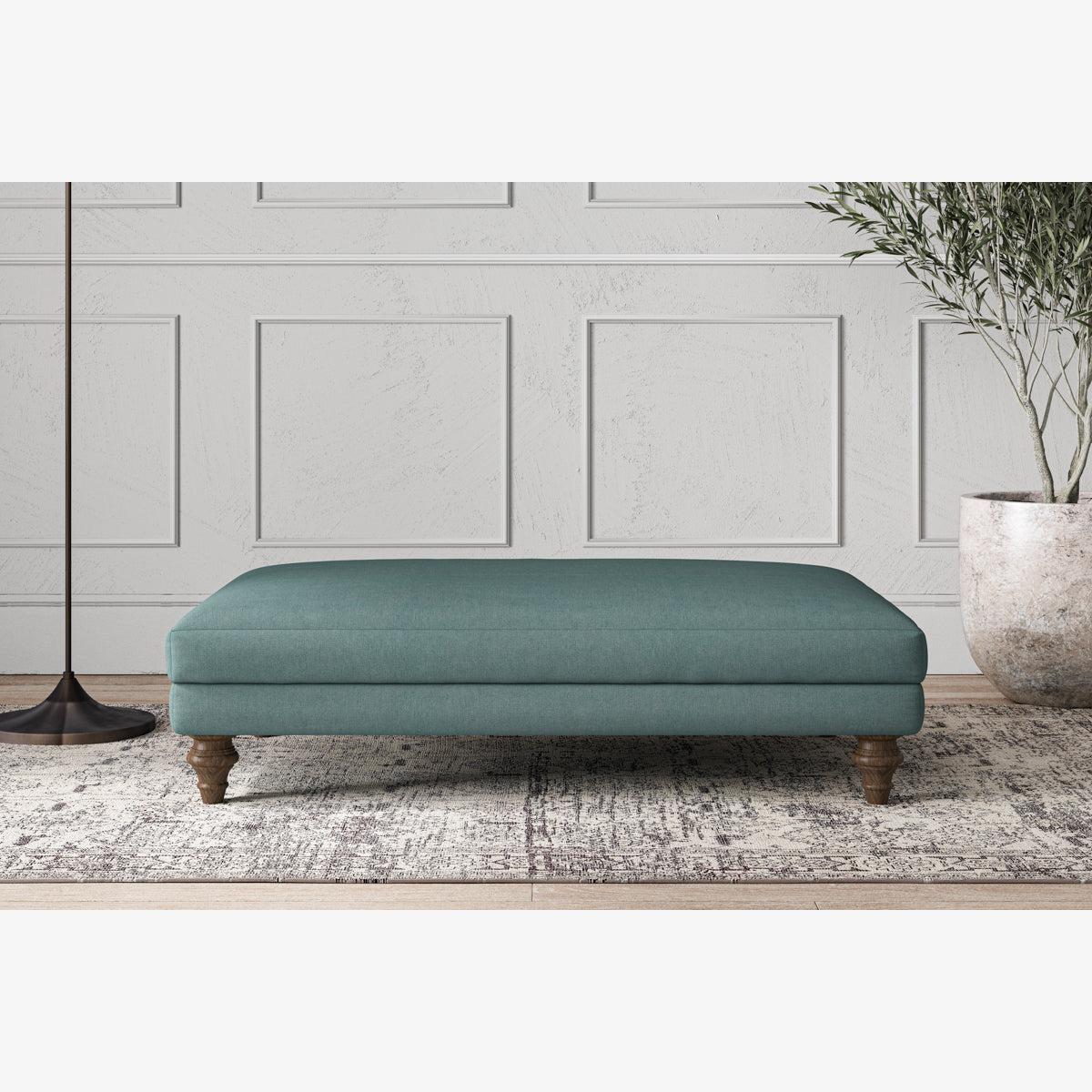 Our Deni large footstool is generously proportioned with deep, sumptuous seat and a solid hardwood frame. Combine it with one of our Deni sofas for added comfort, where it also works perfectly as an upholstered coffee table. Our handmade sofa collections celebrate the best of British quality in timeless designs that bring effortless style to an interior. We’ve considered every detail to ensure your made to order furniture provides comfort, longevity, and style. Handcrafted by specialists in our Nottinghamshire workshop, each piece is handmade to order using traditional techniques with exceptional craftmanship. Our upholstery fabrics are chosen for their style and quality, where all fabrics are FR treated for domestic upholstery ensuring peace of mind as well as meeting specialist UK furniture requirements. Our curated colour palette offers a variety of sophisticated muted shades. Please note, our white background cut-out photography is shown in Natural for shape and style reference. Fabric Swatch Ordering We recommend ordering fabric swatches before placing your order, giving you the chance to feel the fabric and see your colour choices within your own home. You can order up to 6 free fabric swatches by clicking here. Before placing your order, it's important to take the time to measure the space you intend to place your made-to-order furniture to ensure it fits properly. You can read more in our Sofa Buying Guide.