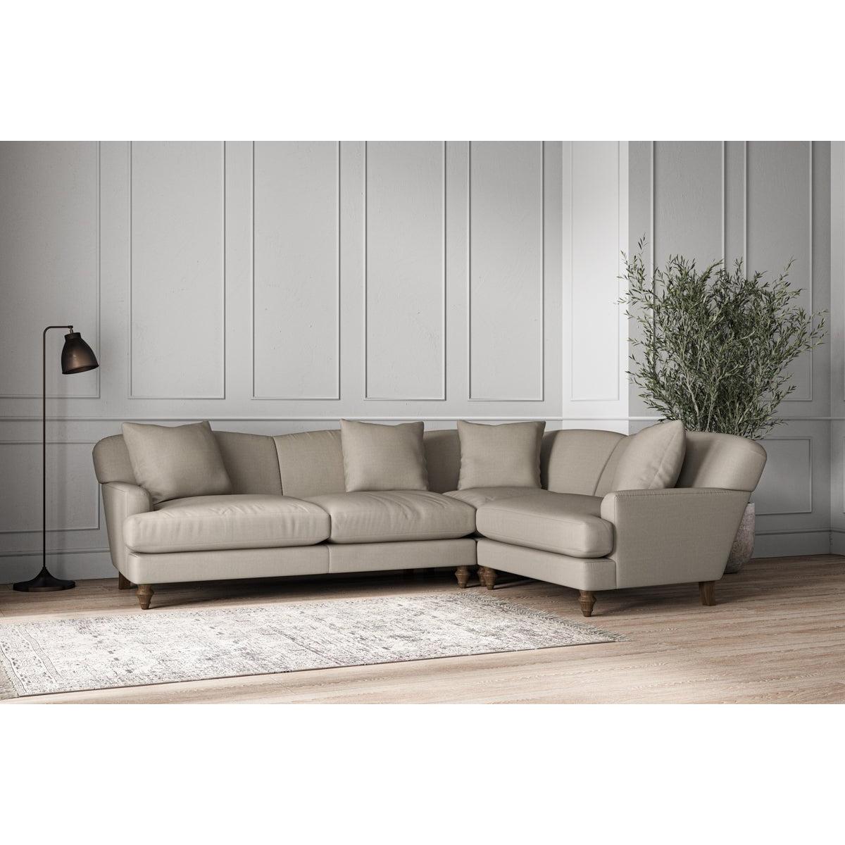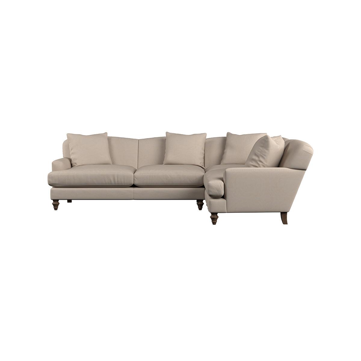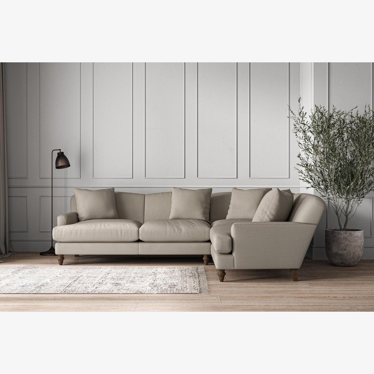 Our Deni large right hand corner sofa is generously proportioned with deep, sumptuous seat cushions for luxurious comfort. Handcrafted from a solid hardwood frame with high-grade steel serpentine springs and foam and fibre wrap filling, this timeless collection celebrates the best of British quality and design. Fine details include in-built back cushions, hand-turned hardwood feet and a set of four scatter cushions for added comfort. Our upholstery fabrics are chosen for their style and quality, where all fabrics are FR treated for domestic upholstery ensuring peace of mind as well as meeting specialist UK furniture requirements. Our curated colour palette offers a variety of sophisticated muted shades. Please note, our white background cut-out photography is shown in Natural for shape and style reference. Fabric Swatch OrderingWe recommend ordering fabric swatches before placing your order, giving you the chance to feel the fabric and see your colour choices within your own home. You can order up to 6 free fabric swatches by clicking here. it fit?Before placing your order, it's important to take the time to measure the space you intend to place your made-to-order furniture to ensure it fits properly. You can read more in our You can read more in our Sofa Buying Guide.