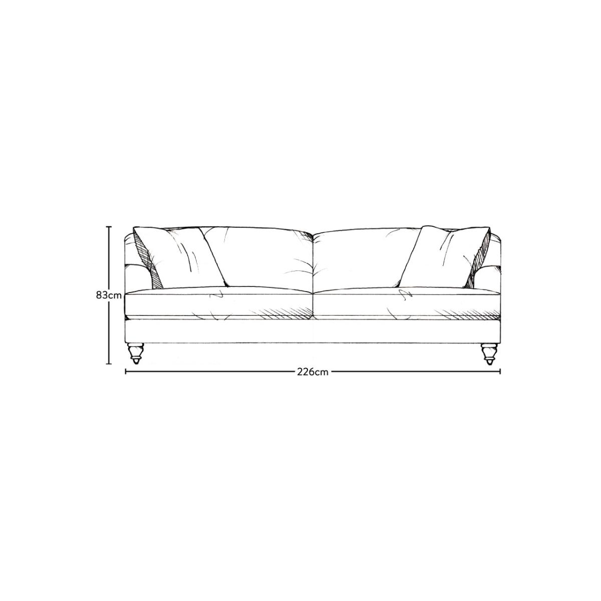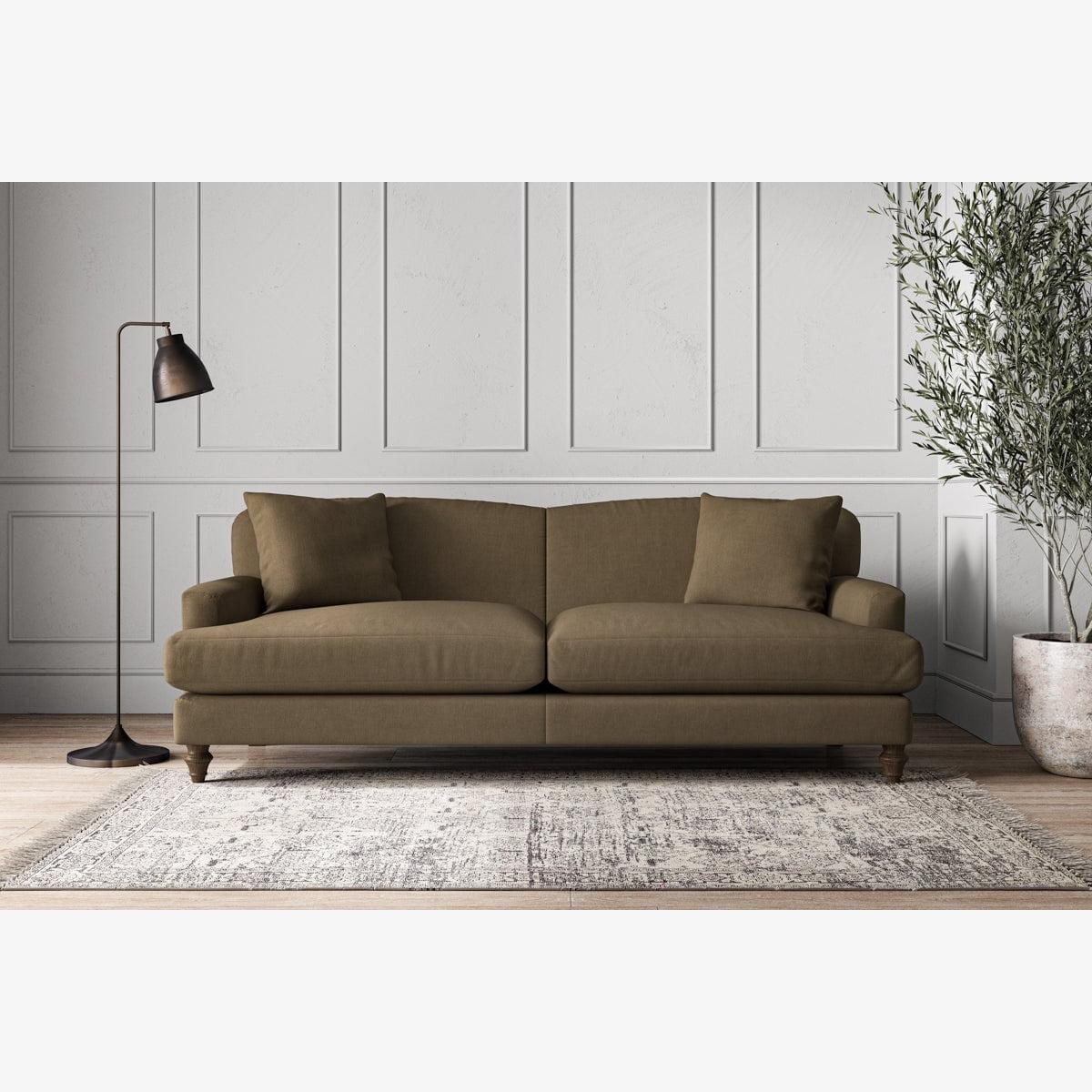 Our Deni grand sofa is generously proportioned with deep, sumptuous seat cushions for luxurious comfort. Handcrafted from a solid hardwood frame with high-grade steel serpentine springs and foam and fibre wrap filling, this timeless collection celebrates the best of British quality and design. Fine details include in-built back cushions, hand-turned hardwood feet and a set of two scatter cushions for added comfort. Our upholstery fabrics are sourced from Italy’s finest mills and are chosen for their style and quality. We have selected a beautiful heavyweight, soft washed linen with an outstanding texture. Our linen is perfectly suited to upholstery, with an appealing natural, and tactile feel. It is also heavy and durable. The linen is FR treated for domestic upholstery ensuring peace of mind as well as meeting specialist UK furniture requirements. Our curated colour palette offers a variety of 11 sophisticated muted shades. Please note, our white background cut-out photography is shown in Natural for shape and style reference. Fabric Swatch Ordering We recommend ordering fabric swatches before placing your order, giving you the chance to feel the fabric and see your colour choices within your own home. You can order up to 6 free fabric swatches by clicking here. Before placing your order, it's important to take the time to measure the space you intend to place your made-to-order furniture to ensure it fits properly. You can read more in our Sofa Buying Guide.