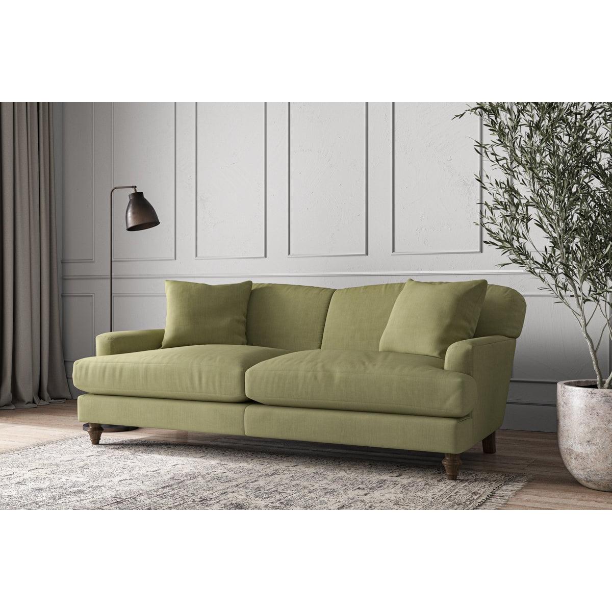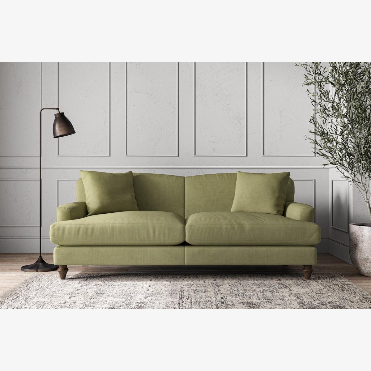 Our Deni large sofa is generously proportioned with deep, sumptuous seat cushions for luxurious comfort. Handcrafted from a solid hardwood frame with high-grade steel serpentine springs and foam and fibre wrap filling, this timeless collection celebrates the best of British quality and design. Fine details include in-built back cushions, hand-turned hardwood feet and two scatter cushions for added comfort. Our upholstery fabrics are sourced from Italy’s finest mills and are chosen for their style and quality. We have selected a beautiful heavyweight, soft washed linen with an outstanding texture. Our linen is perfectly suited to upholstery, with an appealing natural, and tactile feel. It is also heavy and durable. The linen is FR treated for domestic upholstery ensuring peace of mind as well as meeting specialist UK furniture requirements. Our curated colour palette offers a variety of 11 sophisticated muted shades. Please note, our white background cut-out photography is shown in Natural for shape and style reference. Fabric Swatch Ordering We recommend ordering fabric swatches before placing your order, giving you the chance to feel the fabric and see your colour choices within your own home. You can order up to 6 free fabric swatches by clicking here. Before placing your order, it's important to take the time to measure the space you intend to place your made-to-order furniture to ensure it fits properly. You can read more in our Sofa Buying Guide.