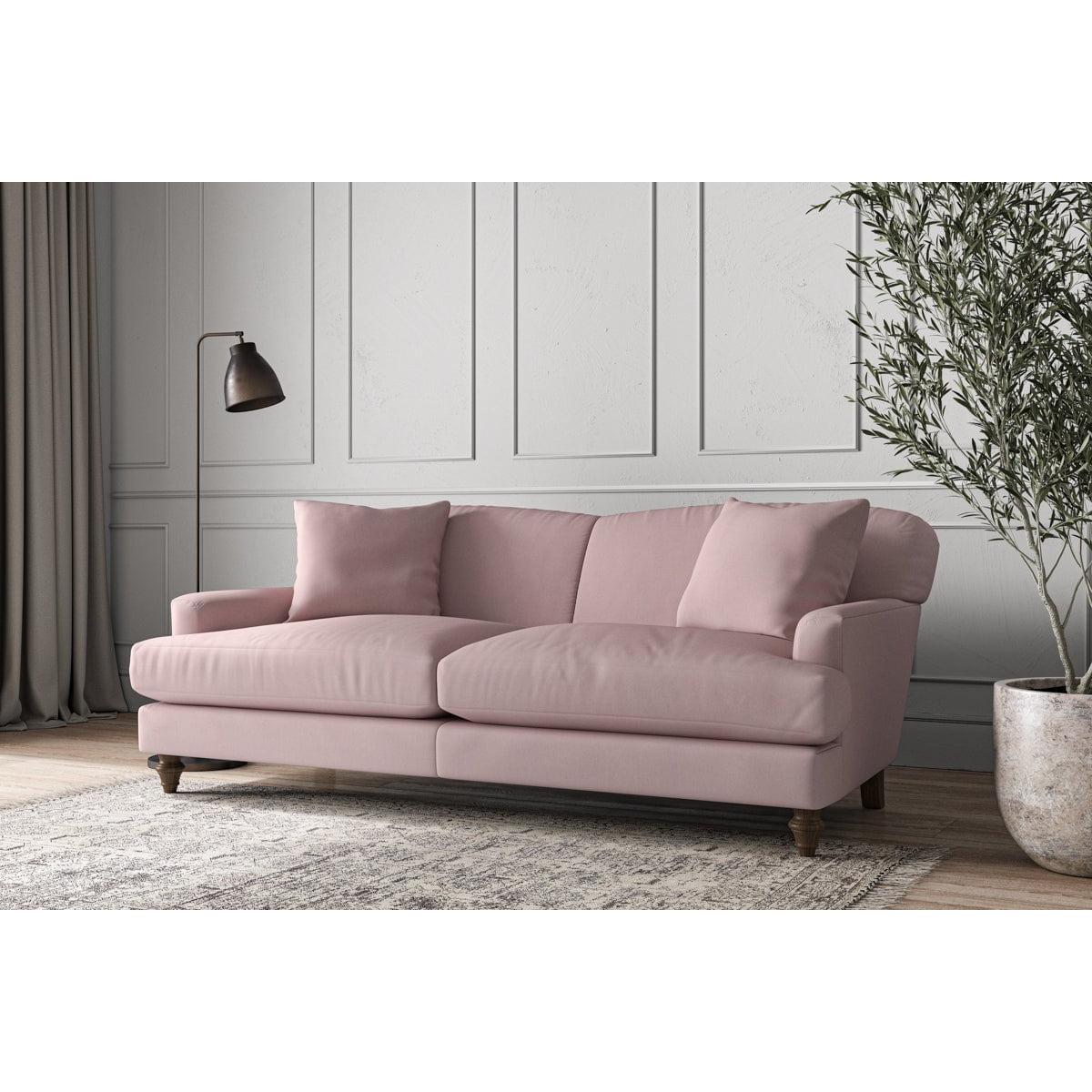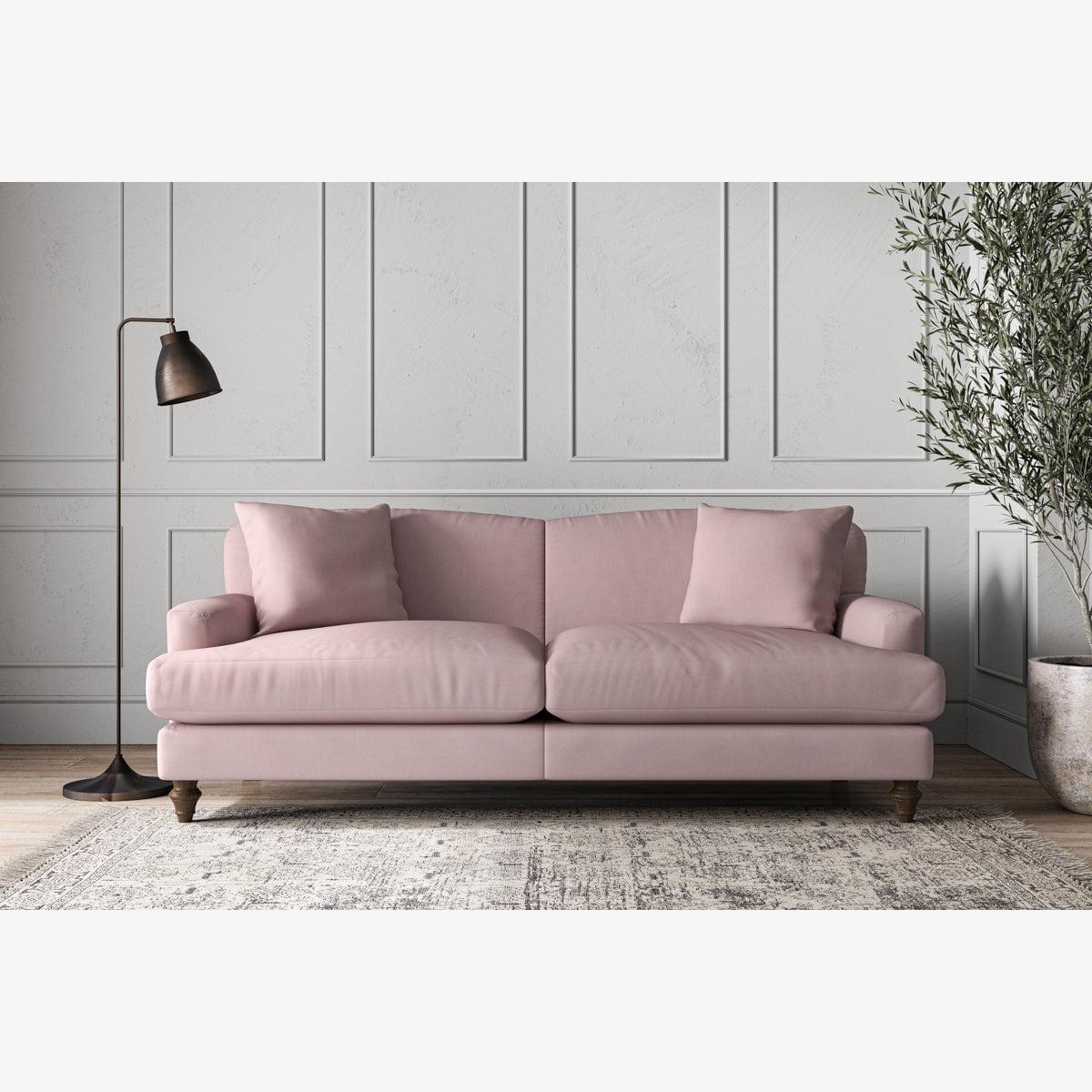 Our Deni large sofa is generously proportioned with deep, sumptuous seat cushions for luxurious comfort. Handcrafted from a solid hardwood frame with high-grade steel serpentine springs and foam and fibre wrap filling, this timeless collection celebrates the best of British quality and design. Fine details include in-built back cushions, hand-turned hardwood feet and two scatter cushions for added comfort. Our upholstery fabrics are chosen for their style and quality, where all fabrics are FR treated for domestic upholstery ensuring peace of mind as well as meeting specialist UK furniture requirements. Our curated colour palette offers a variety of sophisticated muted shades. Please note, our white background cut-out photography is shown in Natural for shape and style reference. Fabric Swatch Ordering We recommend ordering fabric swatches before placing your order, giving you the chance to feel the fabric and see your colour choices within your own home. You can order up to 6 free fabric swatches by clicking here. Will it fit? Before placing your order, it's important to take the time to measure the space you intend to place your made-to-order furniture to ensure it fits properly. You can read more in our You can read more in our Sofa Buying Guide.