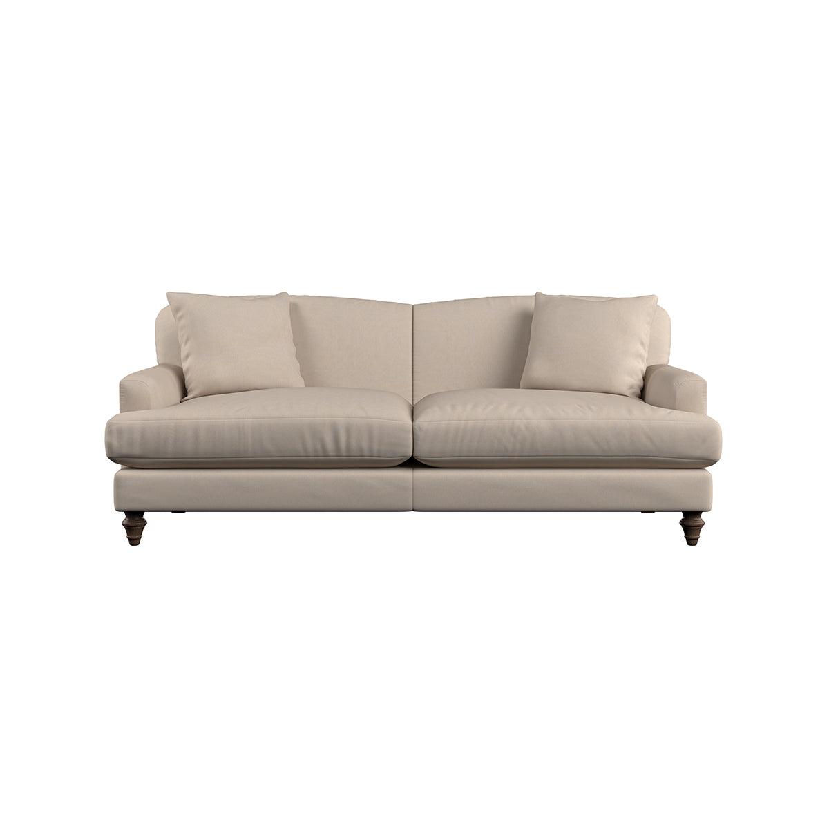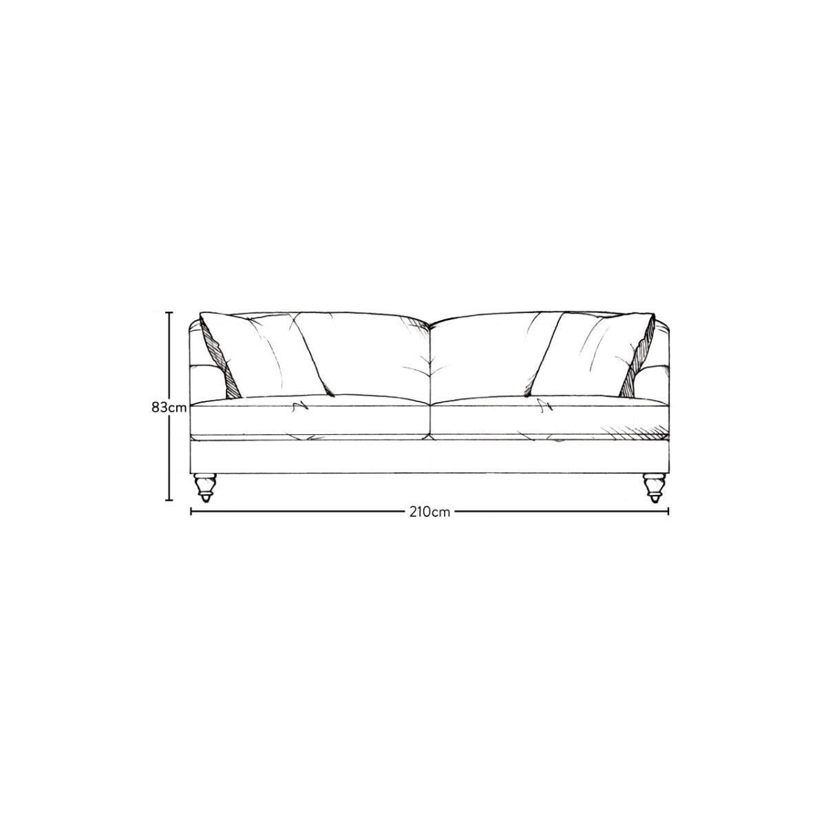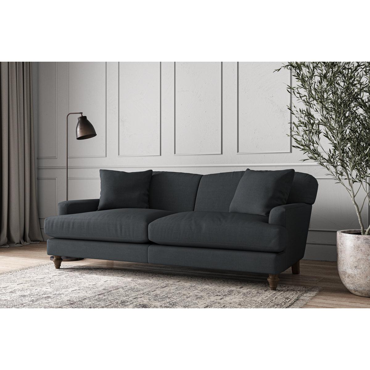 Our Deni large sofa is generously proportioned with deep, sumptuous seat cushions for luxurious comfort. Handcrafted from a solid hardwood frame with high-grade steel serpentine springs and foam and fibre wrap filling, this timeless collection celebrates the best of British quality and design. Fine details include in-built back cushions, hand-turned hardwood feet and two scatter cushions for added comfort. Our upholstery fabrics are chosen for their style and quality, where all fabrics are FR treated for domestic upholstery ensuring peace of mind as well as meeting specialist UK furniture requirements. Our curated colour palette offers a variety of sophisticated muted shades. Please note, our white background cut-out photography is shown in Natural for shape and style reference. Fabric Swatch Ordering We recommend ordering fabric swatches before placing your order, giving you the chance to feel the fabric and see your colour choices within your own home. You can order up to 6 free fabric swatches by clicking here. Will it fit? Before placing your order, it's important to take the time to measure the space you intend to place your made-to-order furniture to ensure it fits properly. You can read more in our You can read more in our Sofa Buying Guide.