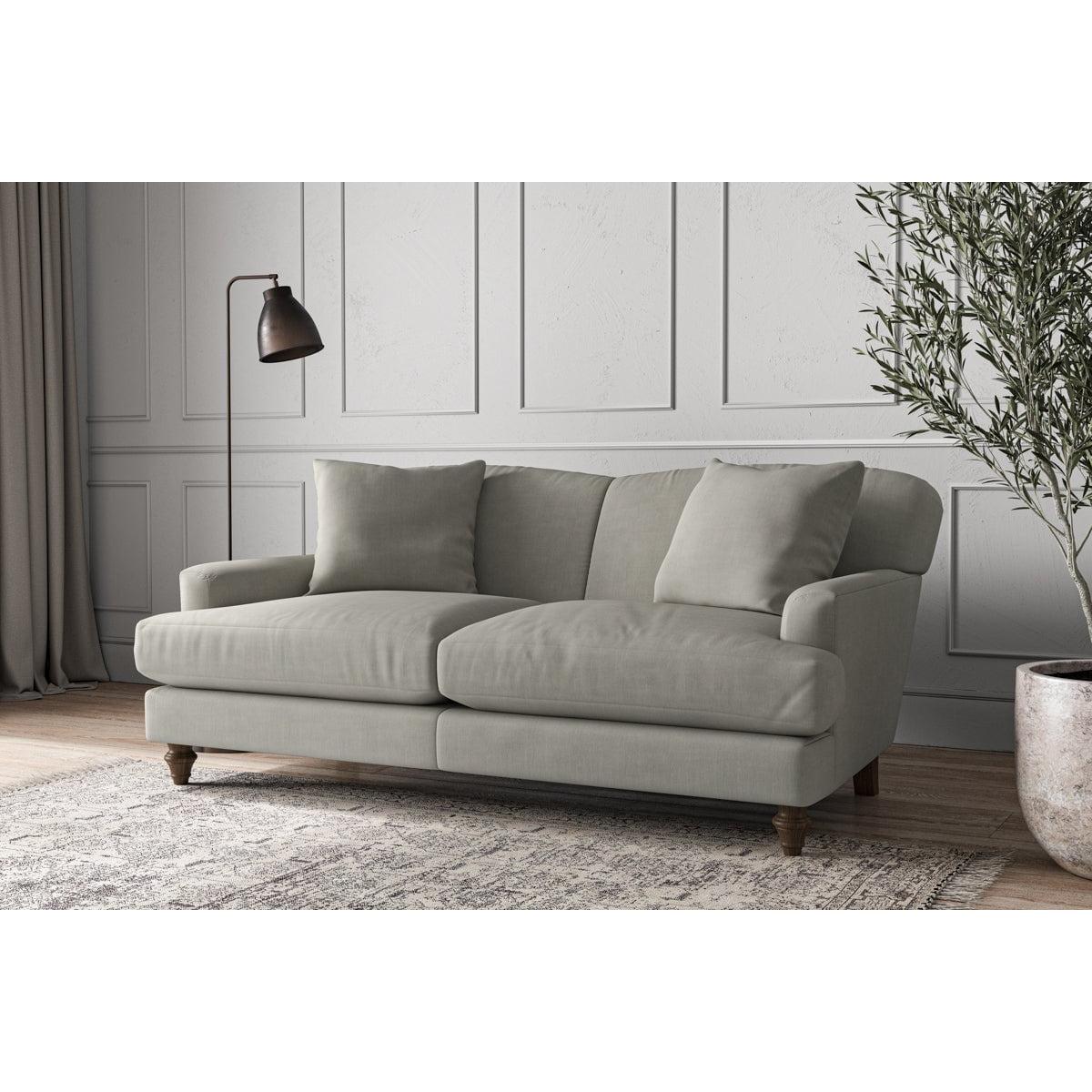 Our Deni medium sofa is generously proportioned with deep, sumptuous seat cushions for luxurious comfort. Handcrafted from a solid hardwood frame with high-grade steel serpentine springs and foam and fibre wrap filling, this timeless collection celebrates the best of British quality and design. Fine details include in-built back cushions, hand-turned hardwood feet and two scatter cushions for added comfort. Our upholstery fabrics are sourced from Italy’s finest mills and are chosen for their style and quality. We have selected a beautiful heavyweight, soft washed linen with an outstanding texture. Our linen is perfectly suited to upholstery, with an appealing natural, and tactile feel. It is also heavy and durable. The linen is FR treated for domestic upholstery ensuring peace of mind as well as meeting specialist UK furniture requirements. Our curated colour palette offers a variety of 11 sophisticated muted shades. Please note, our white background cut-out photography is shown in Natural for shape and style reference. Fabric Swatch Ordering We recommend ordering fabric swatches before placing your order, giving you the chance to feel the fabric and see your colour choices within your own home. You can order up to 6 free fabric swatches by clicking here. Before placing your order, it's important to take the time to measure the space you intend to place your made-to-order furniture to ensure it fits properly. You can read more in our Sofa Buying Guide.