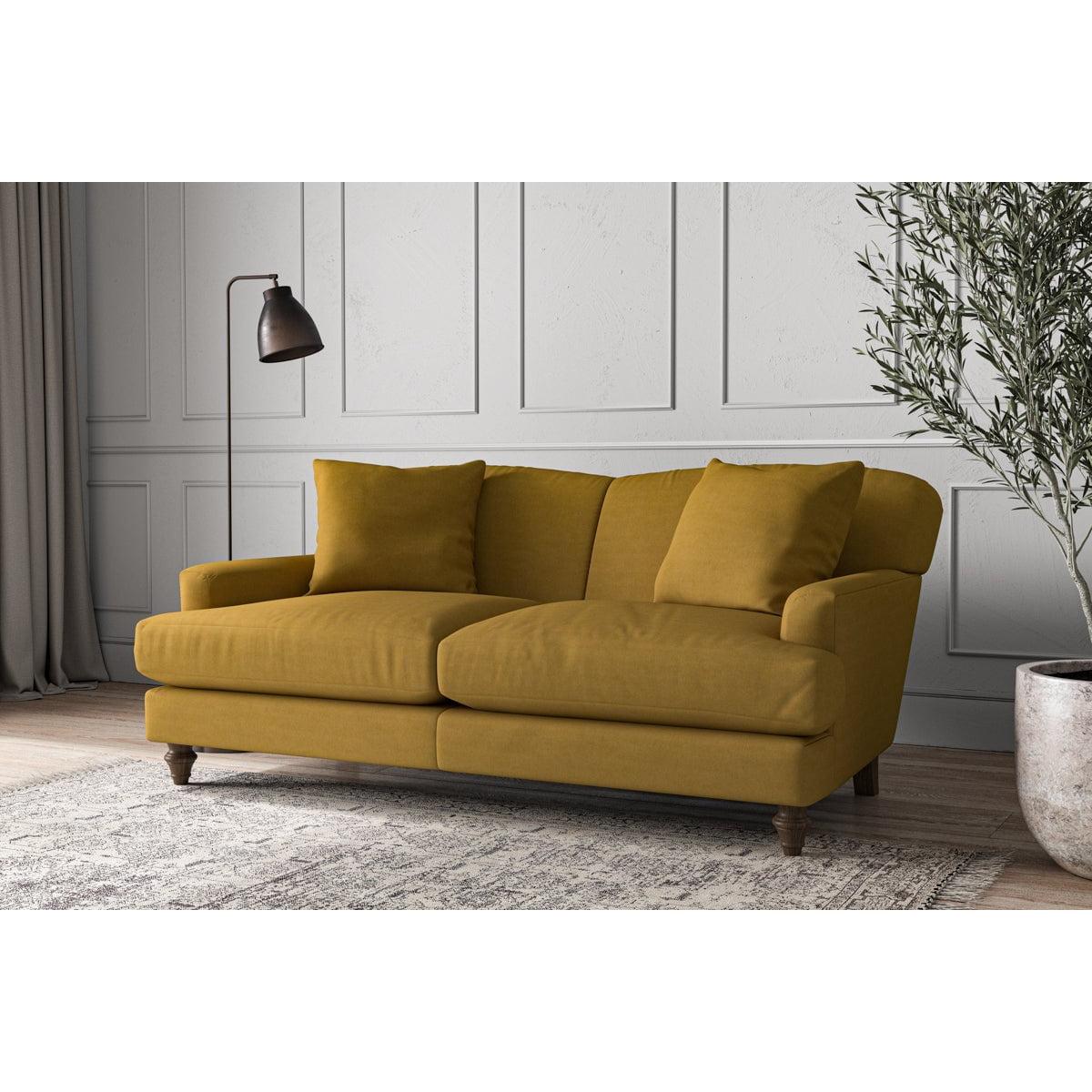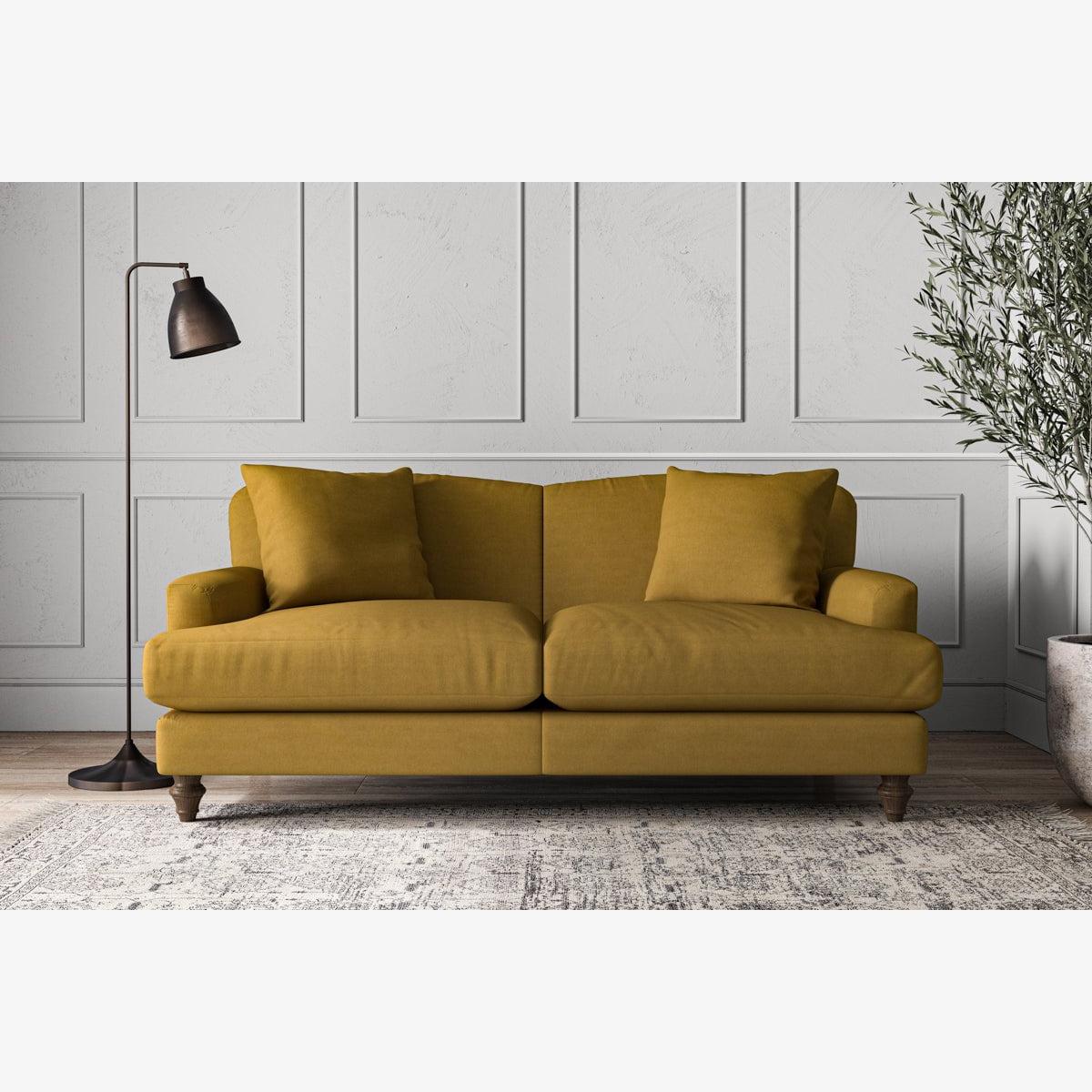 Our Deni medium sofa is generously proportioned with deep, sumptuous seat cushions for luxurious comfort. Handcrafted from a solid hardwood frame with high-grade steel serpentine springs and foam and fibre wrap filling, this timeless collection celebrates the best of British quality and design. Fine details include in-built back cushions, hand-turned hardwood feet and two scatter cushions for added comfort. Our upholstery fabrics are chosen for their style and quality, where all fabrics are FR treated for domestic upholstery ensuring peace of mind as well as meeting specialist UK furniture requirements. Our curated colour palette offers a variety of sophisticated muted shades. Please note, our white background cut-out photography is shown in Natural for shape and style reference. Fabric Swatch Ordering We recommend ordering fabric swatches before placing your order, giving you the chance to feel the fabric and see your colour choices within your own home. You can order up to 6 free fabric swatches by clicking here. Before placing your order, it's important to take the time to measure the space you intend to place your made-to-order furniture to ensure it fits properly. You can read more in our Sofa Buying Guide.