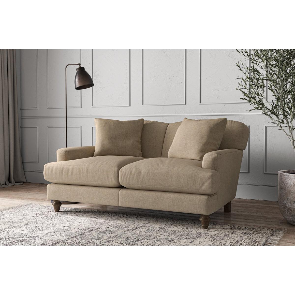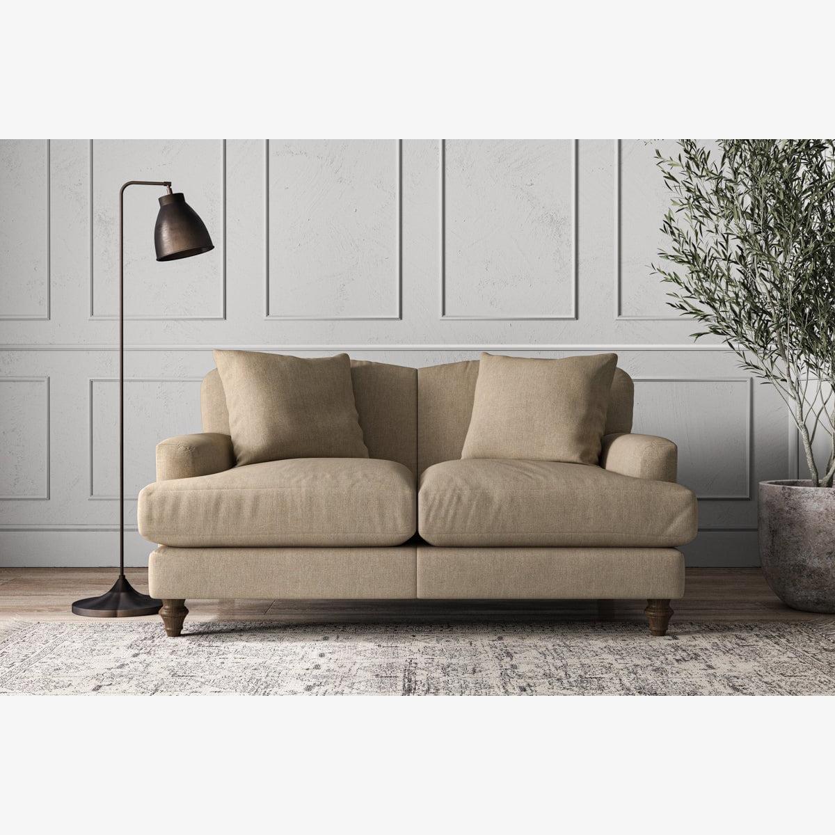 Our Deni small sofa is generously proportioned with deep, sumptuous seat cushions for luxurious comfort. Handcrafted from a solid hardwood frame with high-grade steel serpentine springs and foam and fibre wrap filling, this timeless collection celebrates the best of British quality and design. Fine details include in-built back cushions, hand-turned hardwood feet and two scatter cushions for added comfort. Our upholstery fabrics are sourced from Italy’s finest mills and are chosen for their style and quality. We have selected a beautiful heavyweight, soft washed linen with an outstanding texture. Our linen is perfectly suited to upholstery, with an appealing natural, and tactile feel. It is also heavy and durable. The linen is FR treated for domestic upholstery ensuring peace of mind as well as meeting specialist UK furniture requirements. Our curated colour palette offers a variety of 11 sophisticated muted shades. Please note, our white background cut-out photography is shown in Natural for shape and style reference. Fabric Swatch Ordering We recommend ordering fabric swatches before placing your order, giving you the chance to feel the fabric and see your colour choices within your own home. You can order up to 6 free fabric swatches by clicking here. Before placing your order, it's important to take the time to measure the space you intend to place your made-to-order furniture to ensure it fits properly. You can read more in our Sofa Buying Guide.