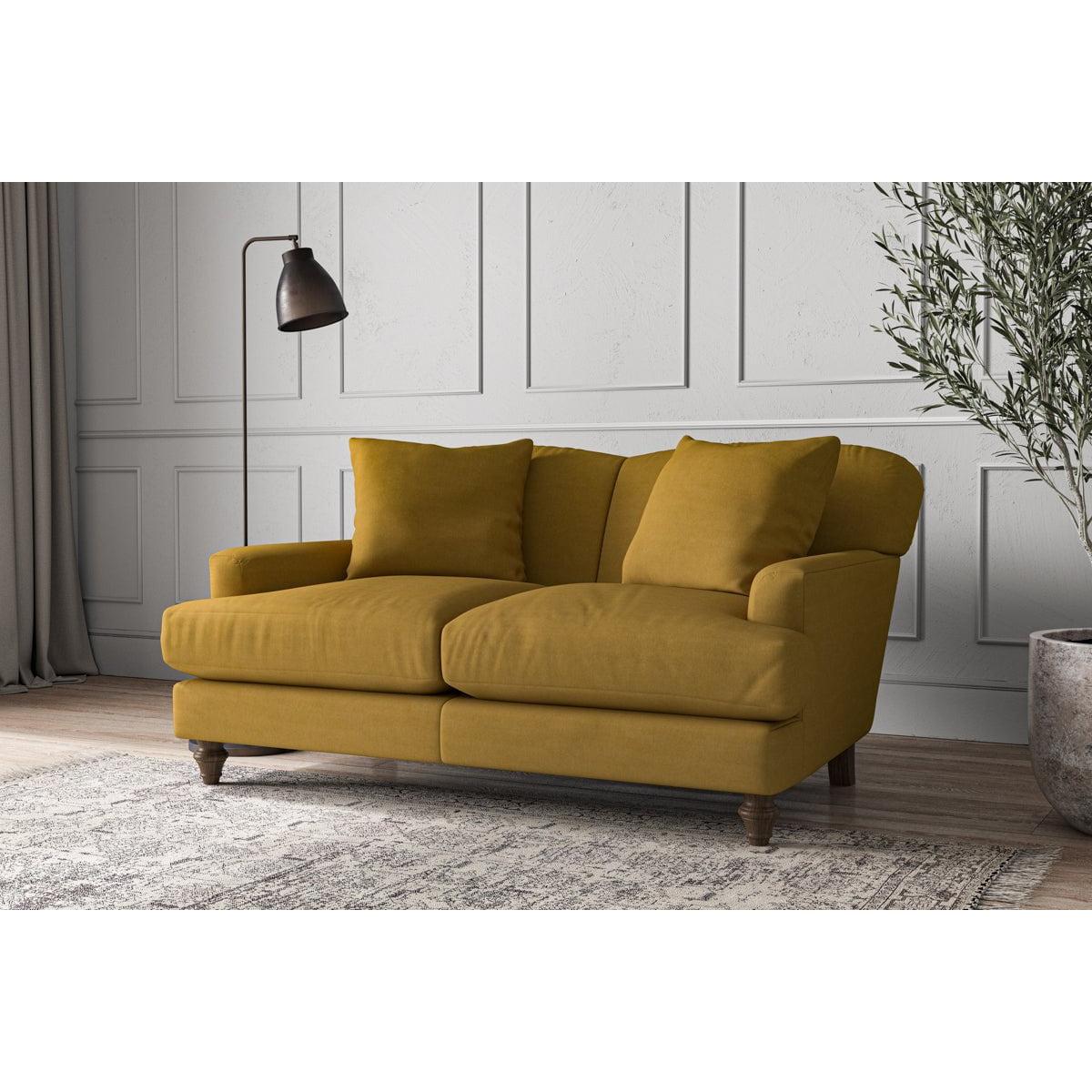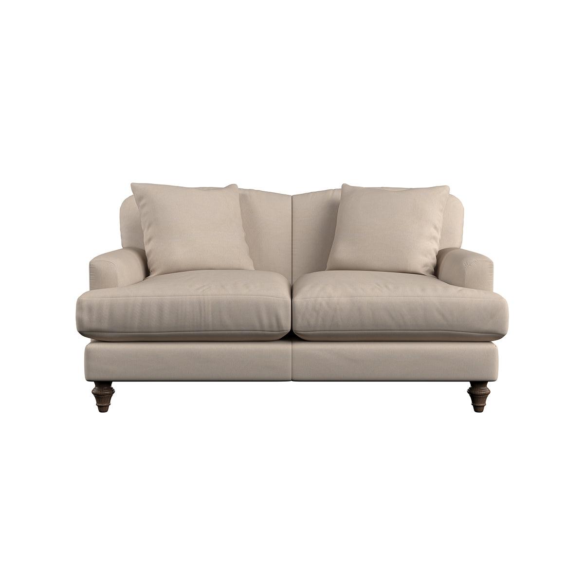 Our Deni small sofa is generously proportioned with deep, sumptuous seat cushions for luxurious comfort. Handcrafted from a solid hardwood frame with high-grade steel serpentine springs and foam and fibre wrap filling, this timeless collection celebrates the best of British quality and design. Fine details include in-built back cushions, hand-turned hardwood feet and two scatter cushions for added comfort. Our upholstery fabrics are chosen for their style and quality, where all fabrics are FR treated for domestic upholstery ensuring peace of mind as well as meeting specialist UK furniture requirements. Our curated colour palette offers a variety of sophisticated muted shades. Please note, our white background cut-out photography is shown in Natural for shape and style reference. Fabric Swatch Ordering We recommend ordering fabric swatches before placing your order, giving you the chance to feel the fabric and see your colour choices within your own home. You can order up to 6 free fabric swatches by clicking here. Before placing your order, it's important to take the time to measure the space you intend to place your made-to-order furniture to ensure it fits properly. You can read more in our Sofa Buying Guide.