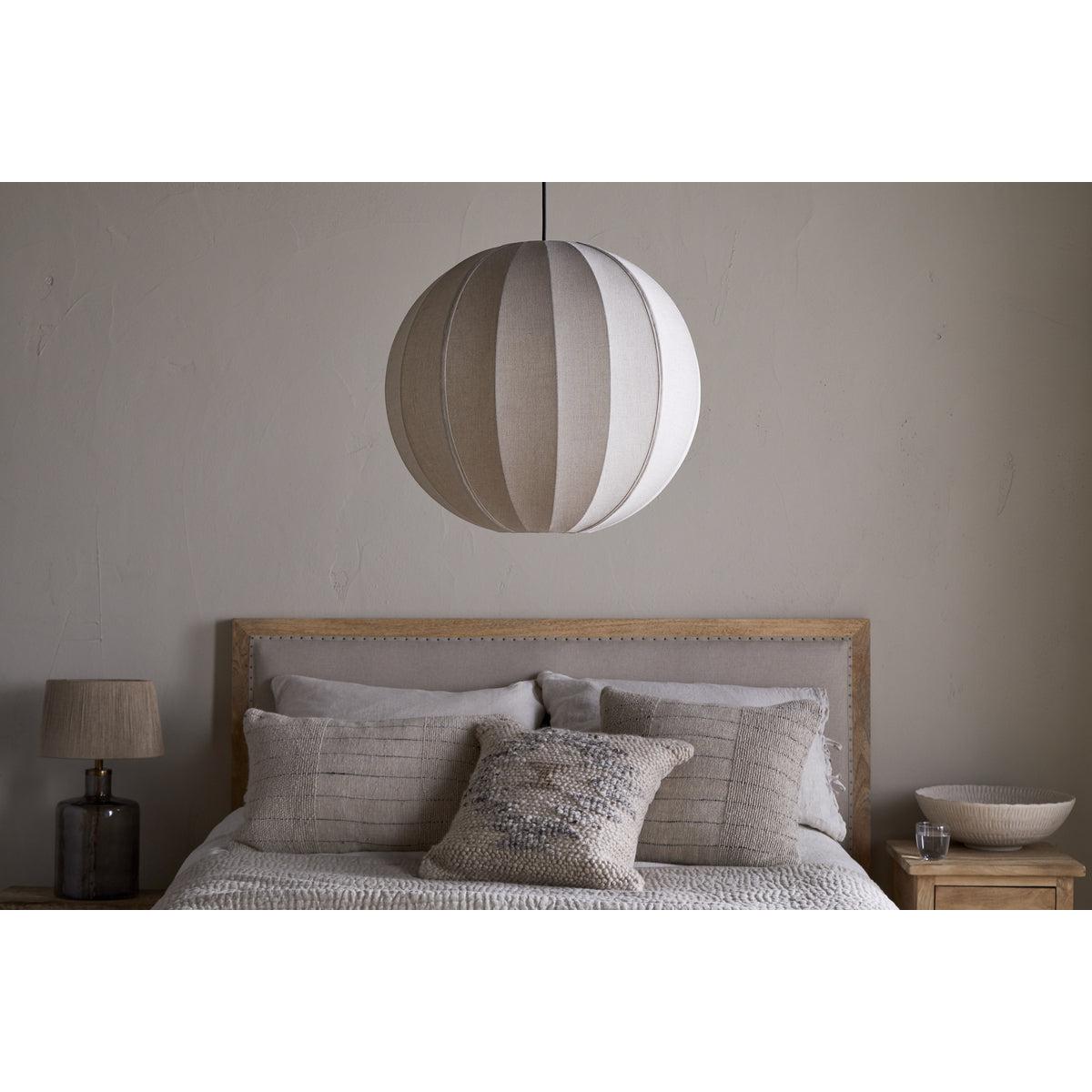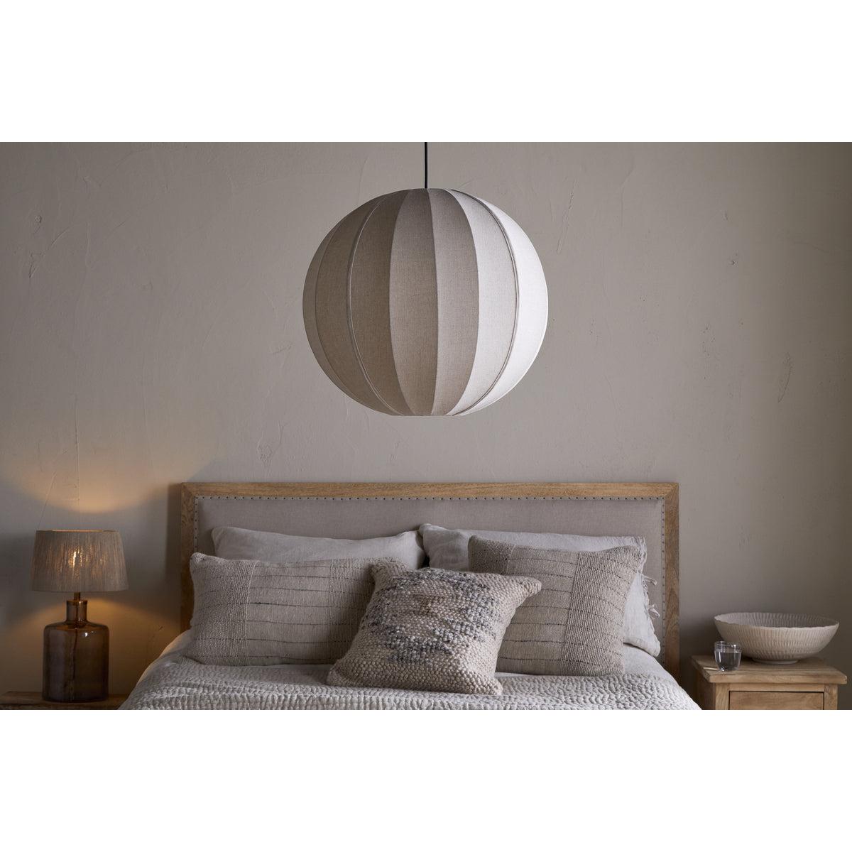 Our Dharini Linen lampshade is the epitome of softness, making it the perfect addition to your bedroom or cosy space. Designed for easy installation, it can be fitted to an existing pendant or used with our Otti pendant fitting, no electrician required. The textured linen beautifully diffuses light, creating a warm and inviting glow. This understated yet stunning shade makes an ideal bedroom light.