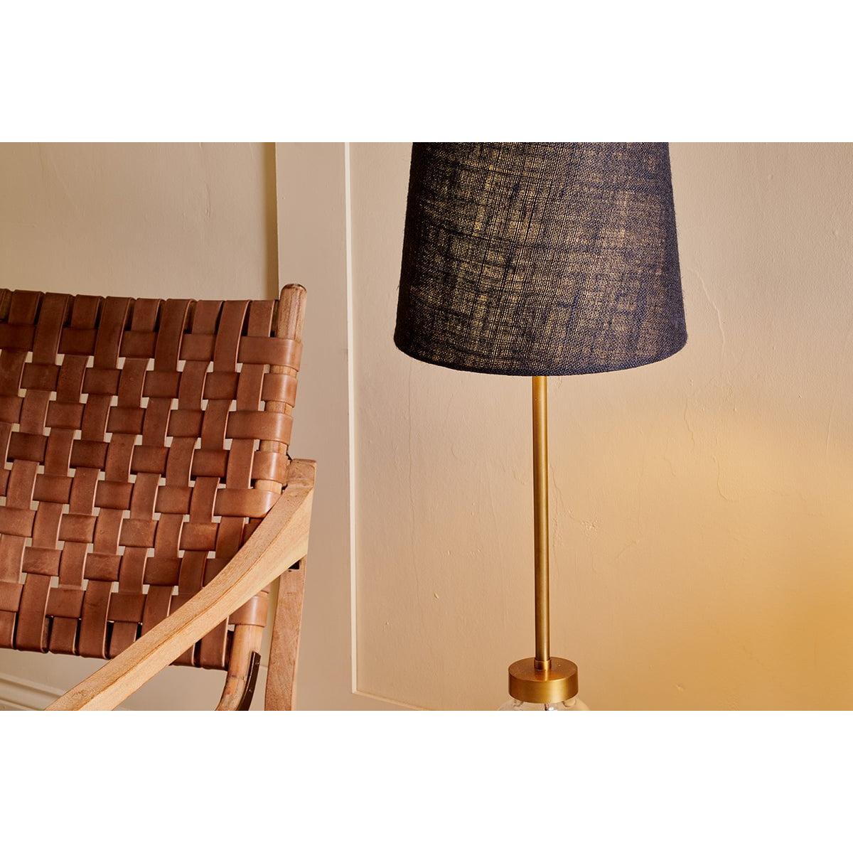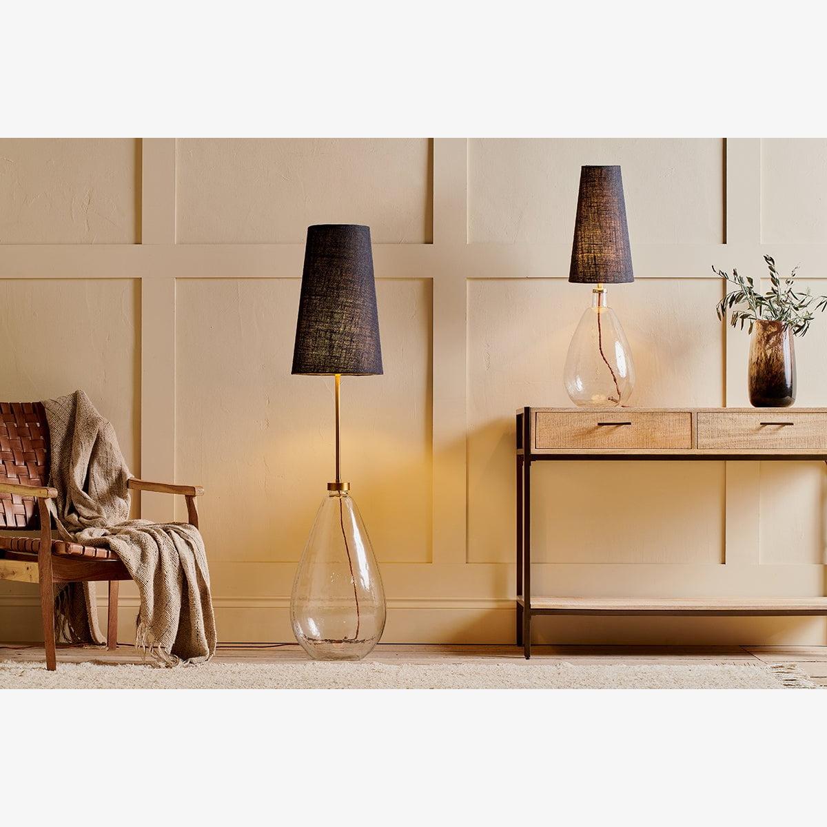The Dia jute tall lampshade promises to elevate any table lamp. Its stylish exagerrated profile feels striking and standout and the ink colour tone feels sophisticated. The elongated shape of the shade has a striking and contemporary feel and it offers an easy way to refresh the look of a room and bring new life to an existing lamp base. The medium Dia jute also displays beautifully with our Chameli and Baba floor lamps.