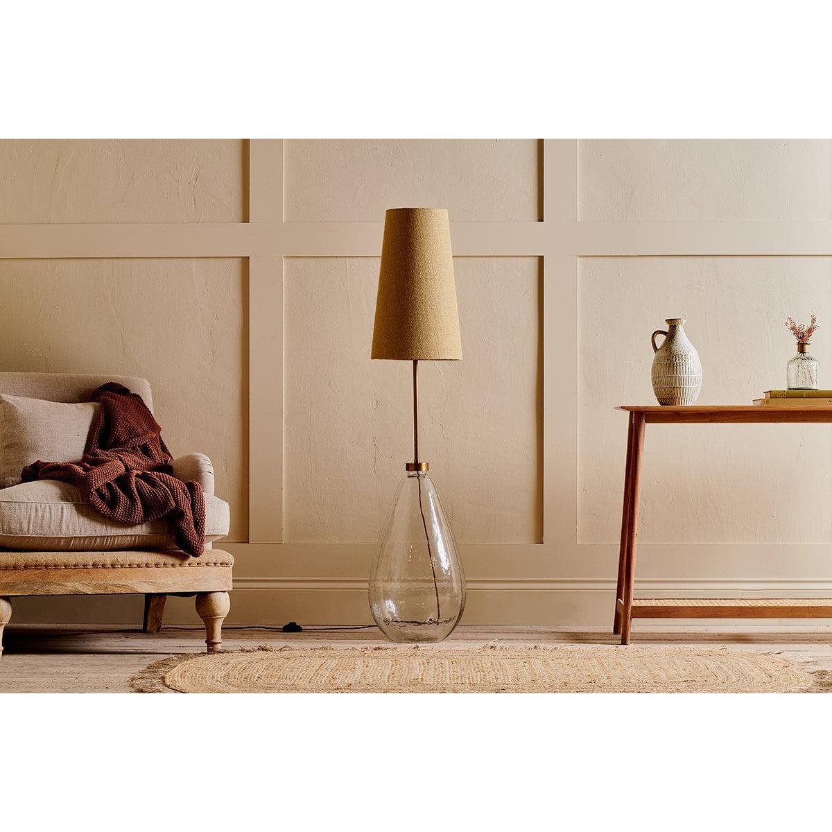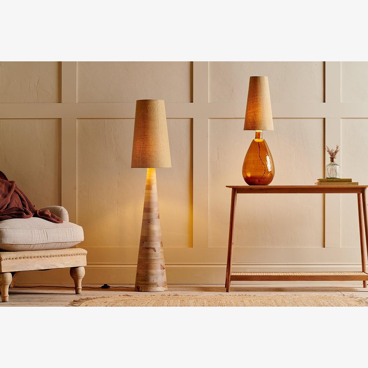 The striking tall shape of the Dia tall shade has a neutral tone. The extra tall conical style lampshade is a stylish and easy way to reinvigorate a current table or floor lamp. The interesting shape feels modern and fresh and is surprisingly versatile. The jute fabric has a 'slubby' texture that diffuses light softly, creating a ambiant setting.