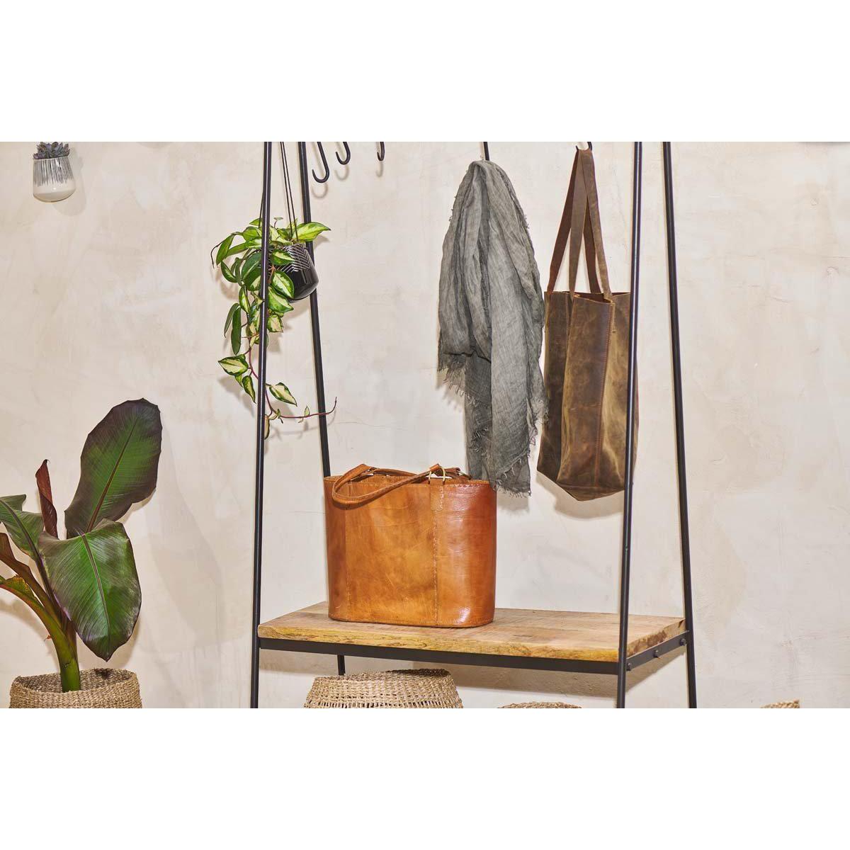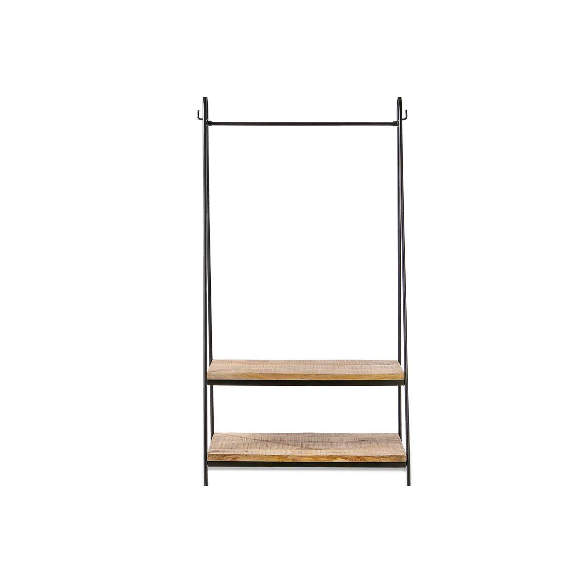 Versatile and stylish, our Edda hanging rail includes two practical mango wood shelves and a single hanging rail. A practical addition to a bedroom or guest room. | nkuku Edda Hanging Rail Shelf | Storage Furniture | Brown | 163 x 90 x 43 cm