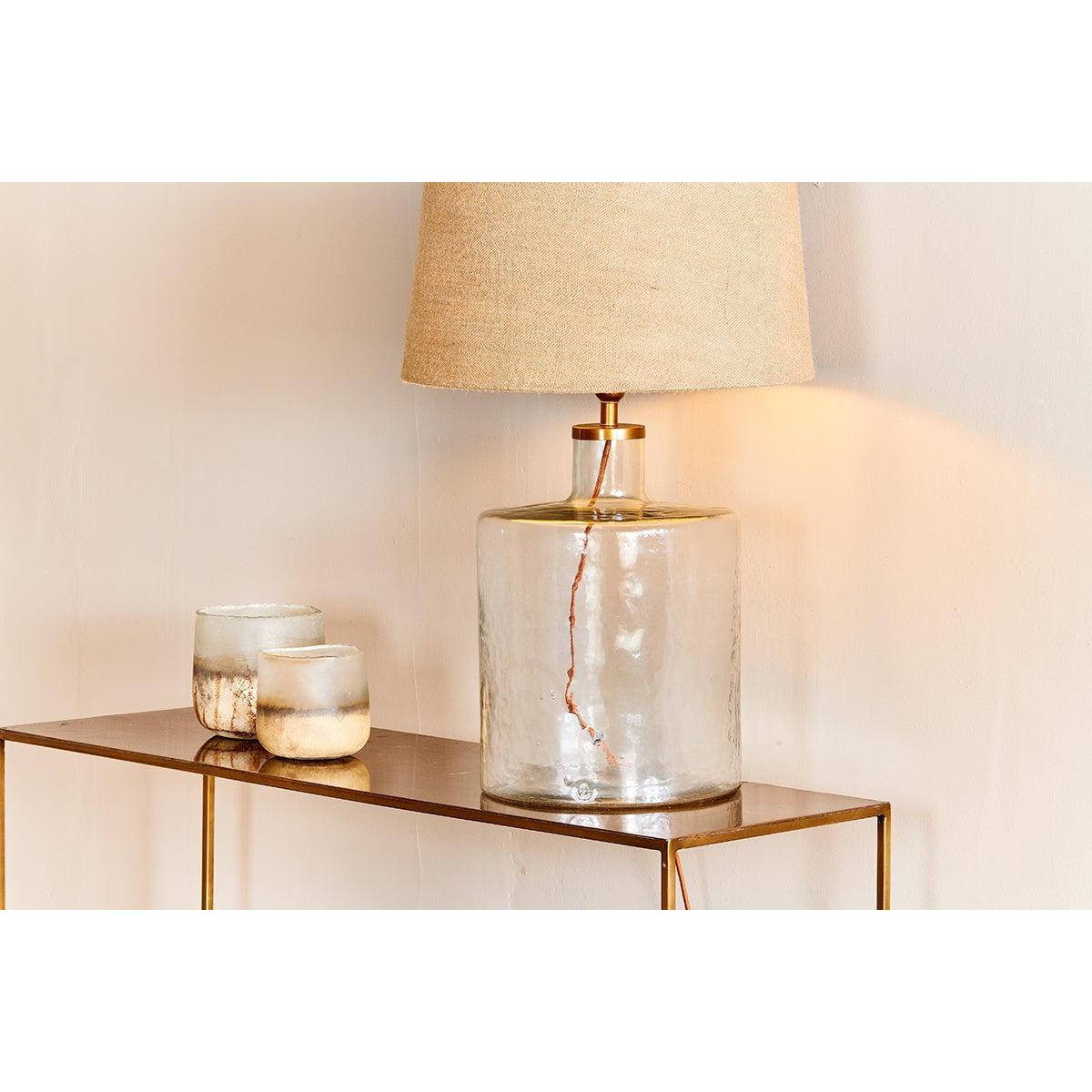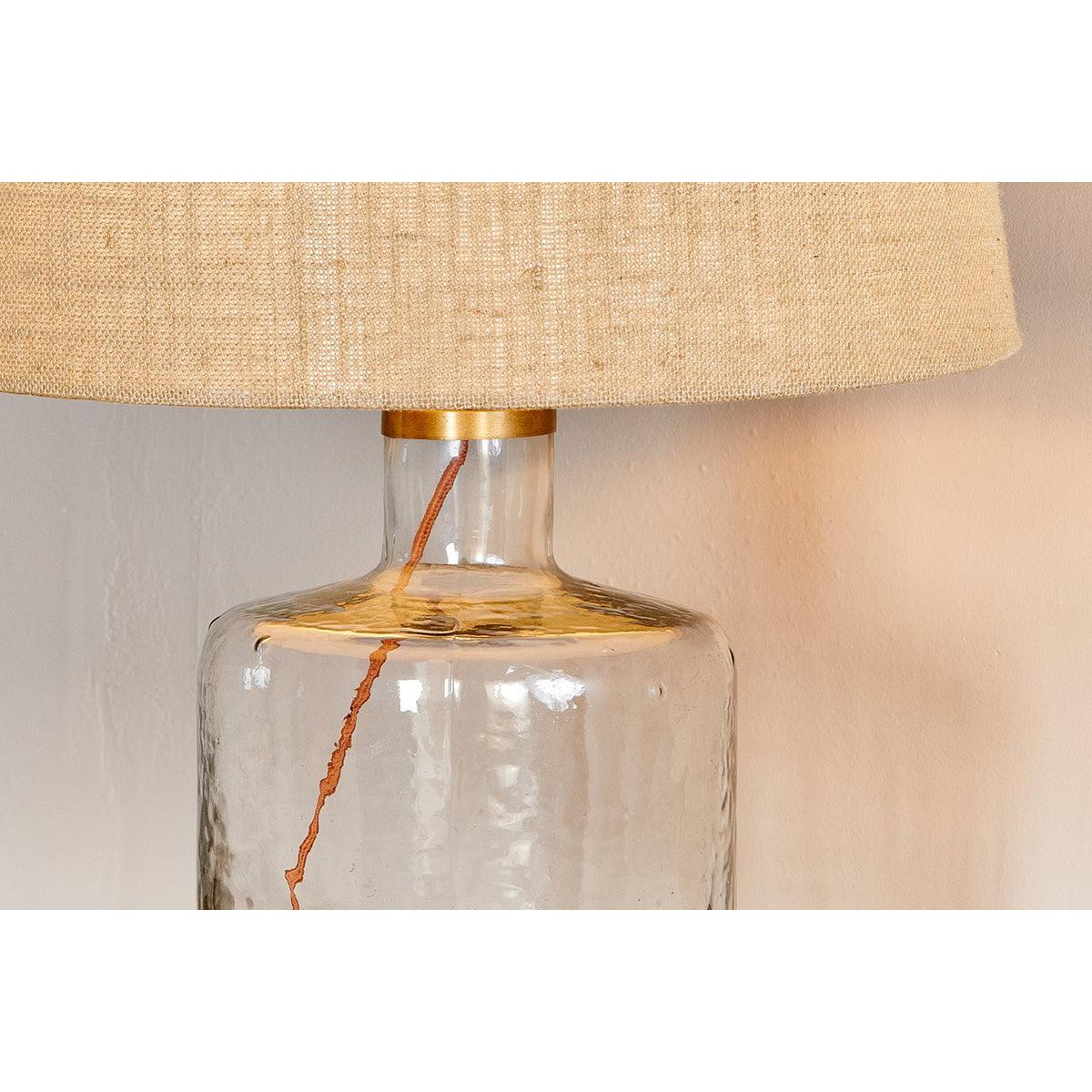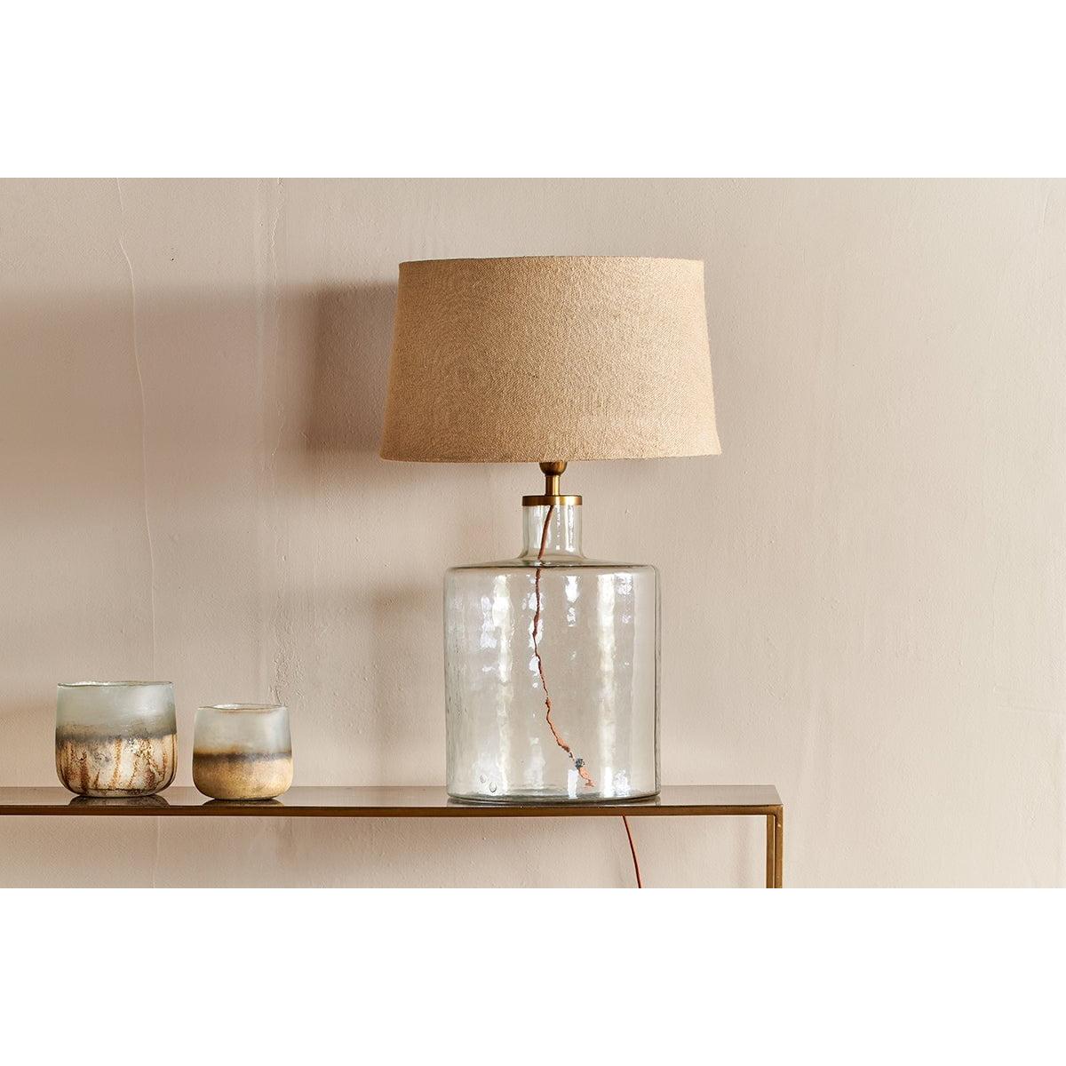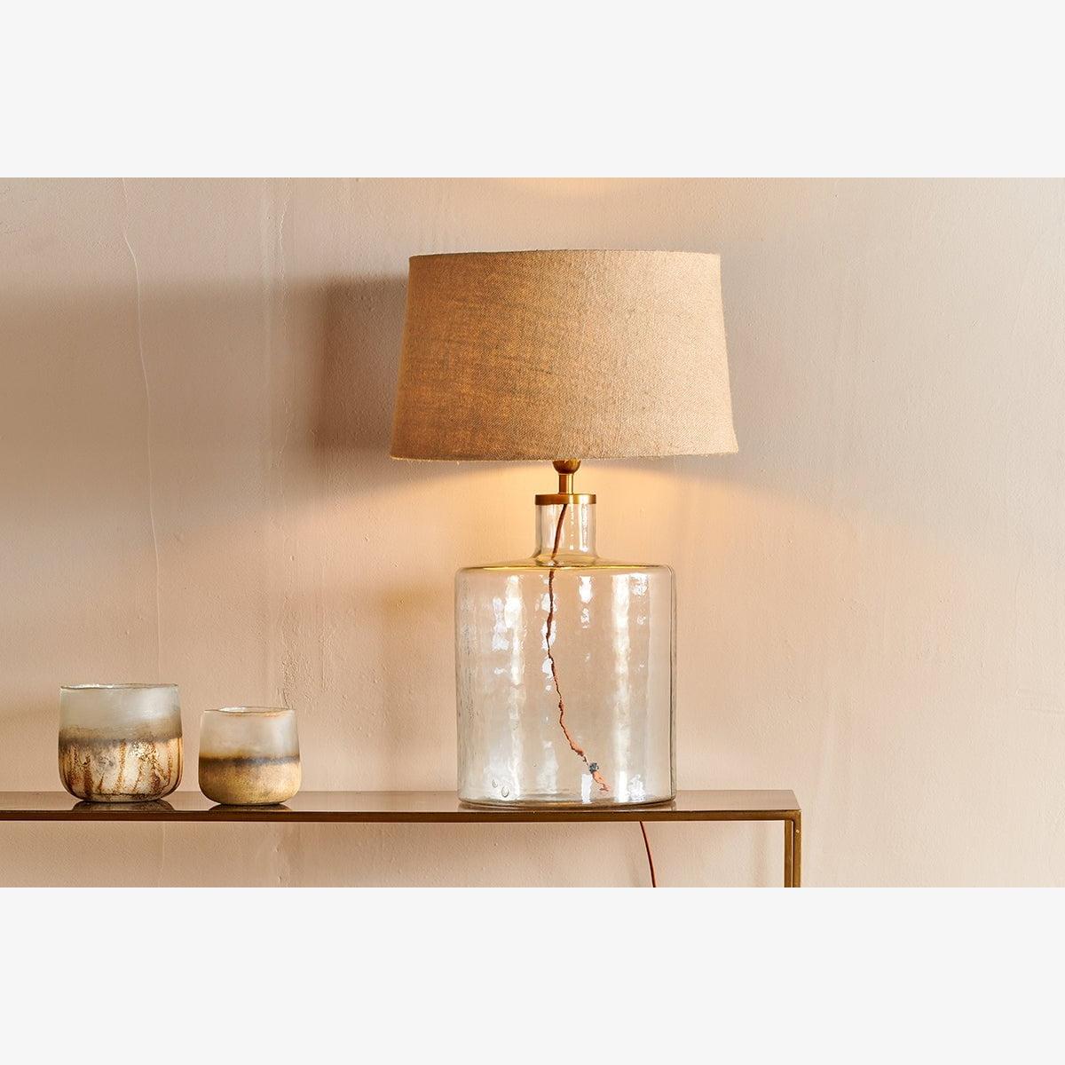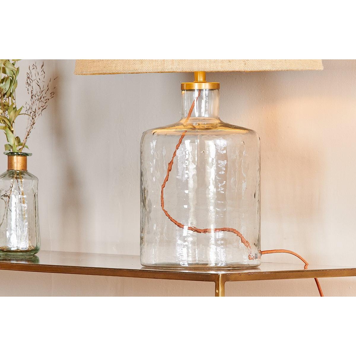 The bottle shape of the Edina clear glass table lamp provides an elegant shaped lamp that is easy to style. The lamp has a timeless quality. We love the simplicity of its design and its tactile hammered finish, skilfully created using hand tools. A table lamp is perfect for adding layers of light to a room, as well as helping to create a softer, lower lighting scheme and the Edina seamlessly blends into a variety of room styles. Its generous proportions give it a statement feel that brings an interesting texture, shape and tone to an interior.