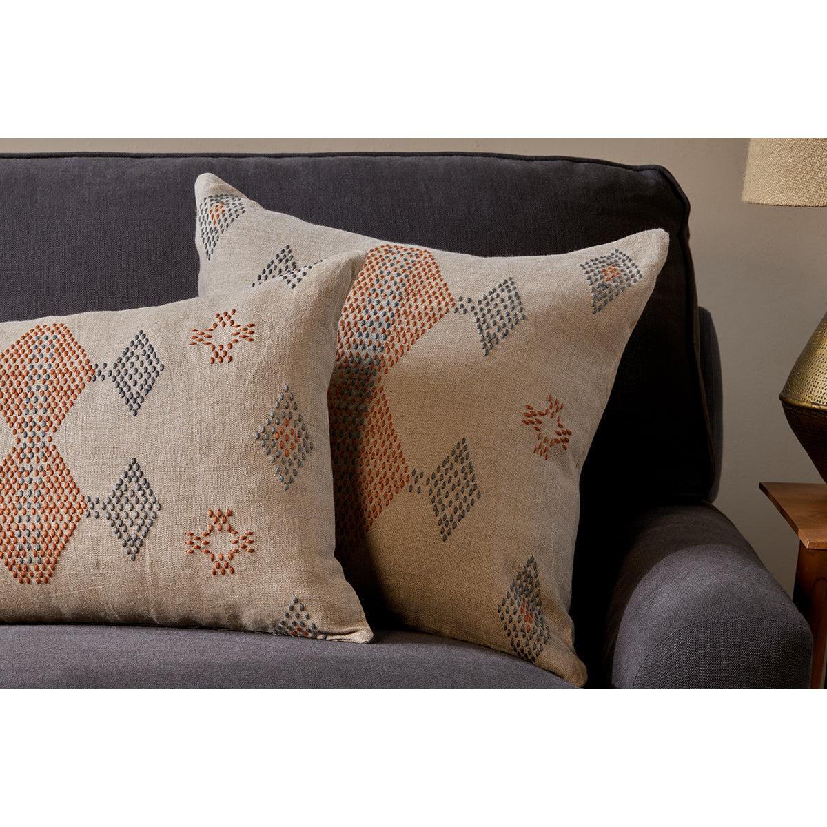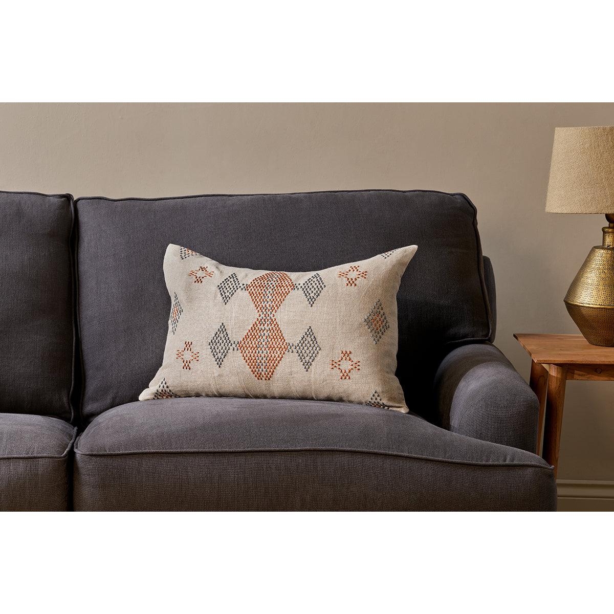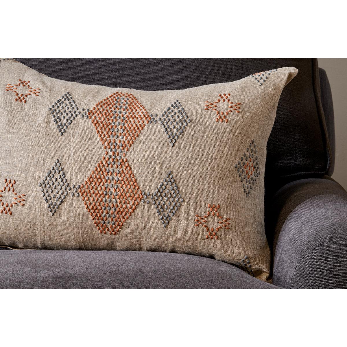 Nkuku Ekta Embroidered Linen Cushion Cover | Textiles | Natural | 60 x 40 cm