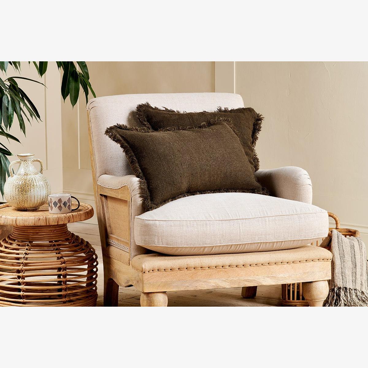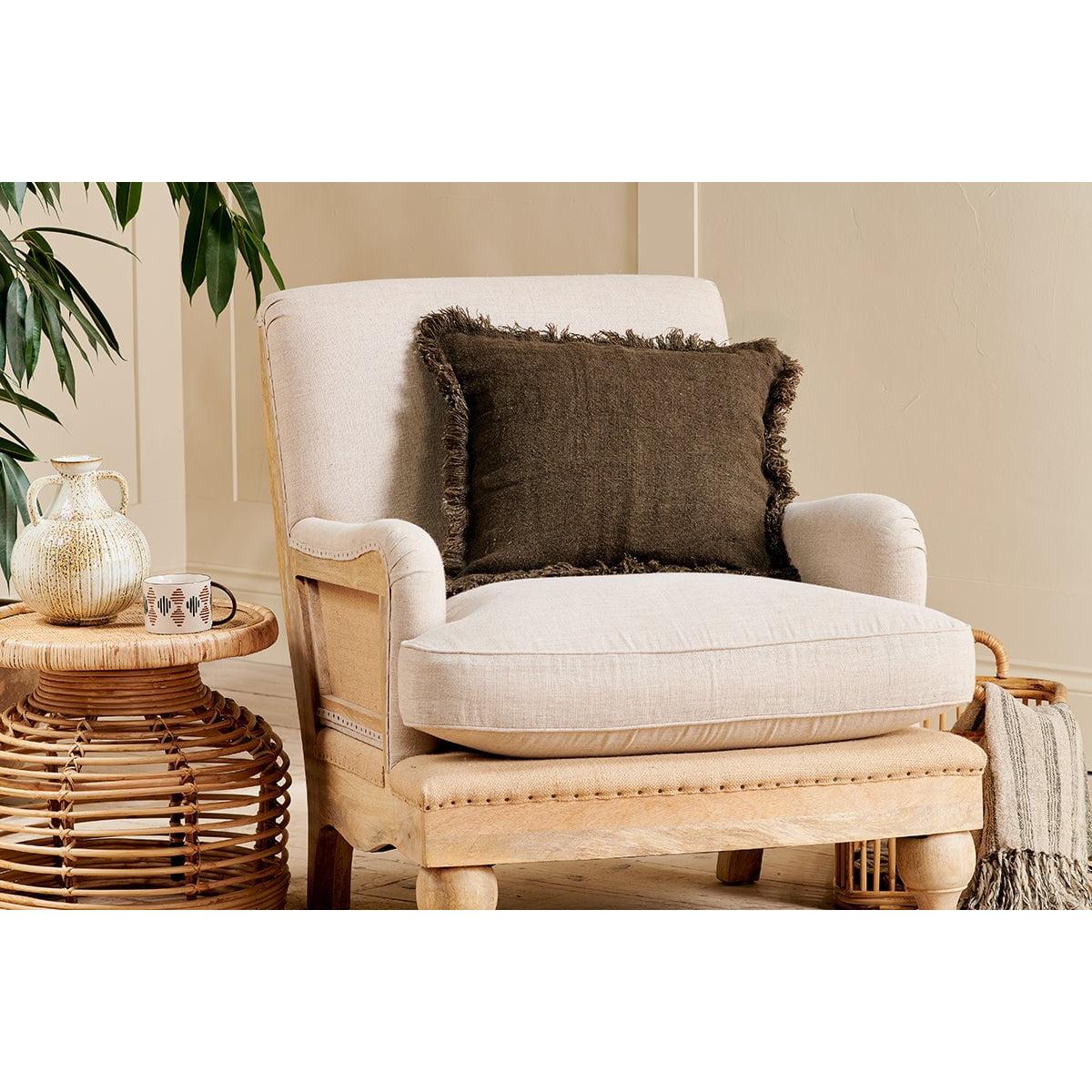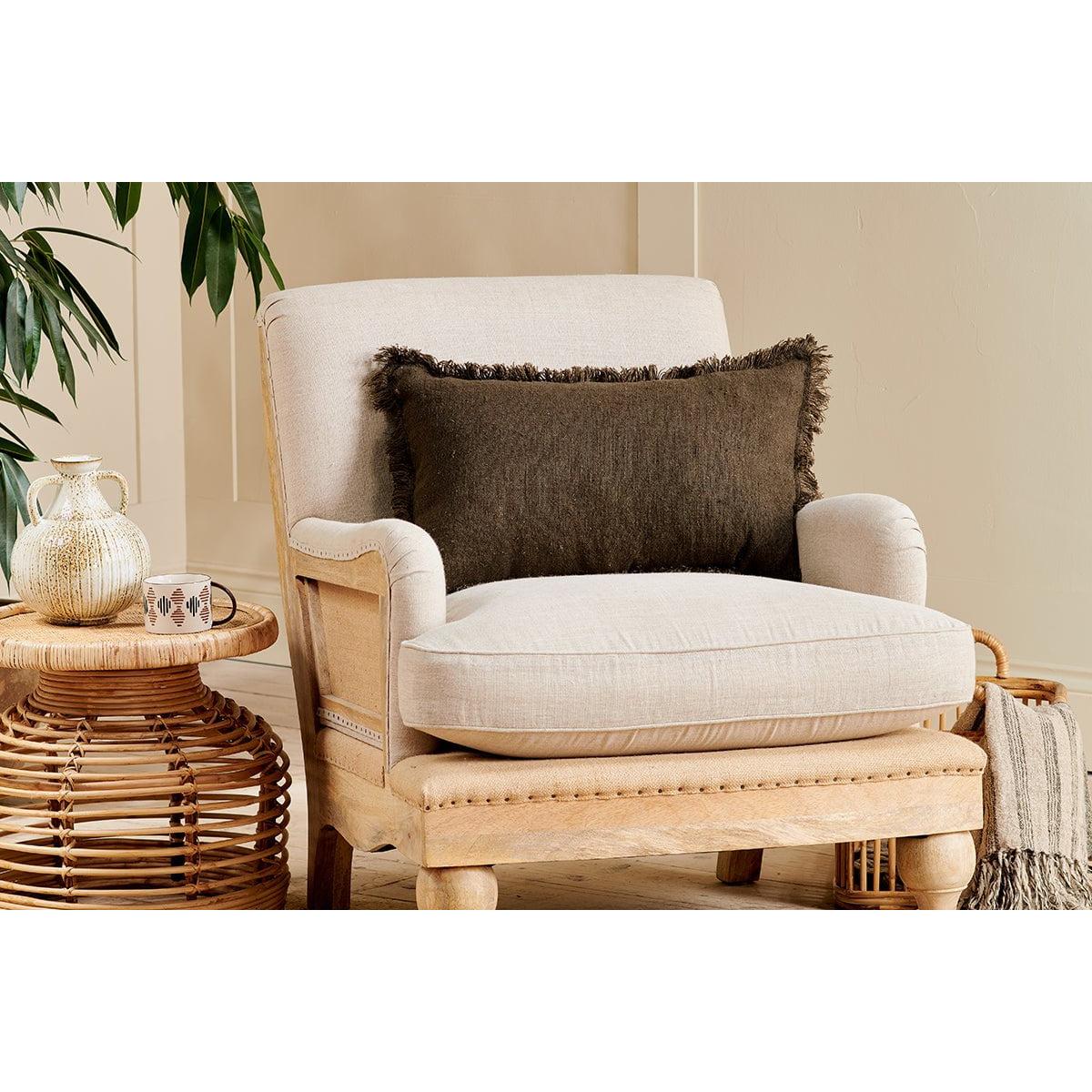The dark charcoal tones of the Feo linen cushion cover sit well on the slubby, relaxed, handwoven linen. The addition of fringing adds character and interest to this eye - catching cushion cover. The Feo are designed to scatter in a mix of colours and the charcoal contrasts perfectly against a variety of backdrops. Style with our natural linen Feo linen cushion cover.