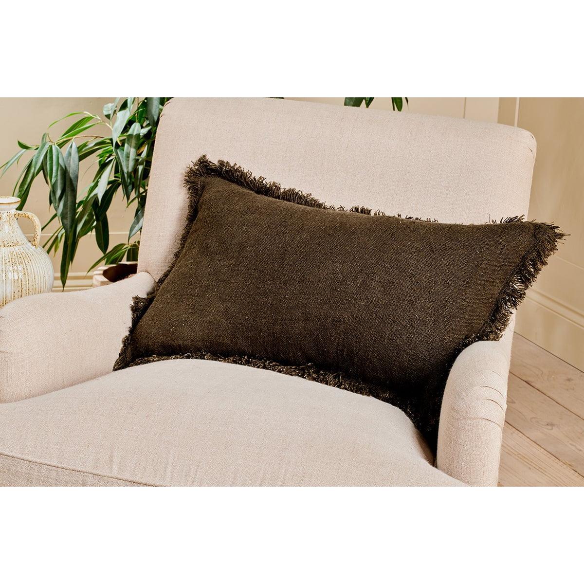 Nkuku Feo Linen Cushion Cover | Textiles | Charcoal | 60 x 40 cm
