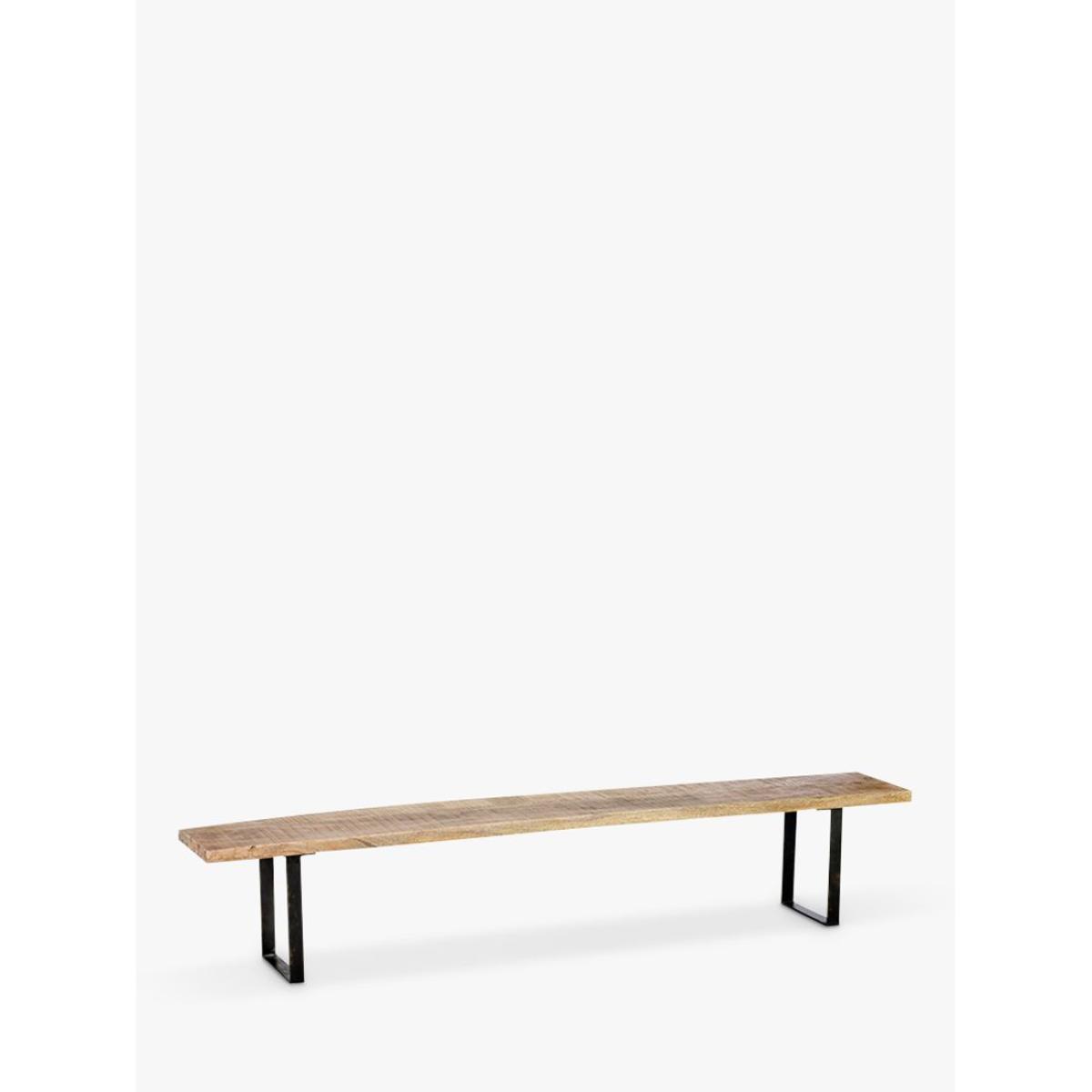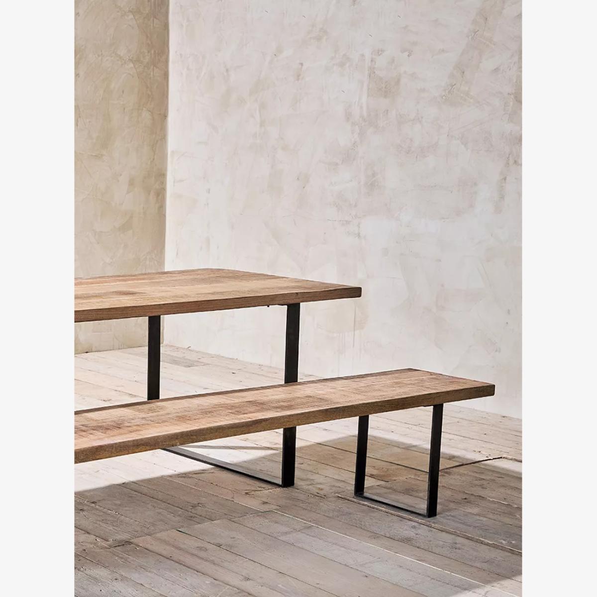 I love this bench for its clean, minimalist design, which makes it incredibly versatile across different interiors. It works particularly well in rustic, Scandinavian, or industrial styles, where its natural wood tones and simple black frame add warmth and modernity. Practical styling tips include pairing it with a matching dining table or using it as a statement piece in a relaxed open-plan kitchen or dining area. Its sturdy construction makes it ideal for both everyday use and entertaining, and you can enhance its appearance with a cosy cushion or cozy throw for a more inviting feel. This piece is perfect for creating an understated yet stylish look that balances functionality with aesthetic simplicity.