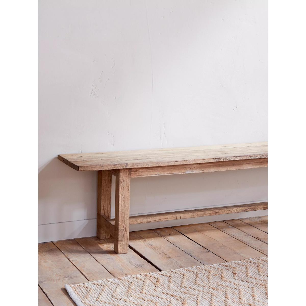 The Fioni design uses reclaimed wooden ceiling beams from India where they are repurposed and handcrafted to create unique and timeless pieces that offer the perfect foundation for an understated dining area.  Sanded and lightly finished with a white wash, the mixed woods are harmonised in appearance yet still allow for subtle variations in tone and grain to shine through, lending a laidback farmhouse aesthetic to the overall look of this well proportioned bench.