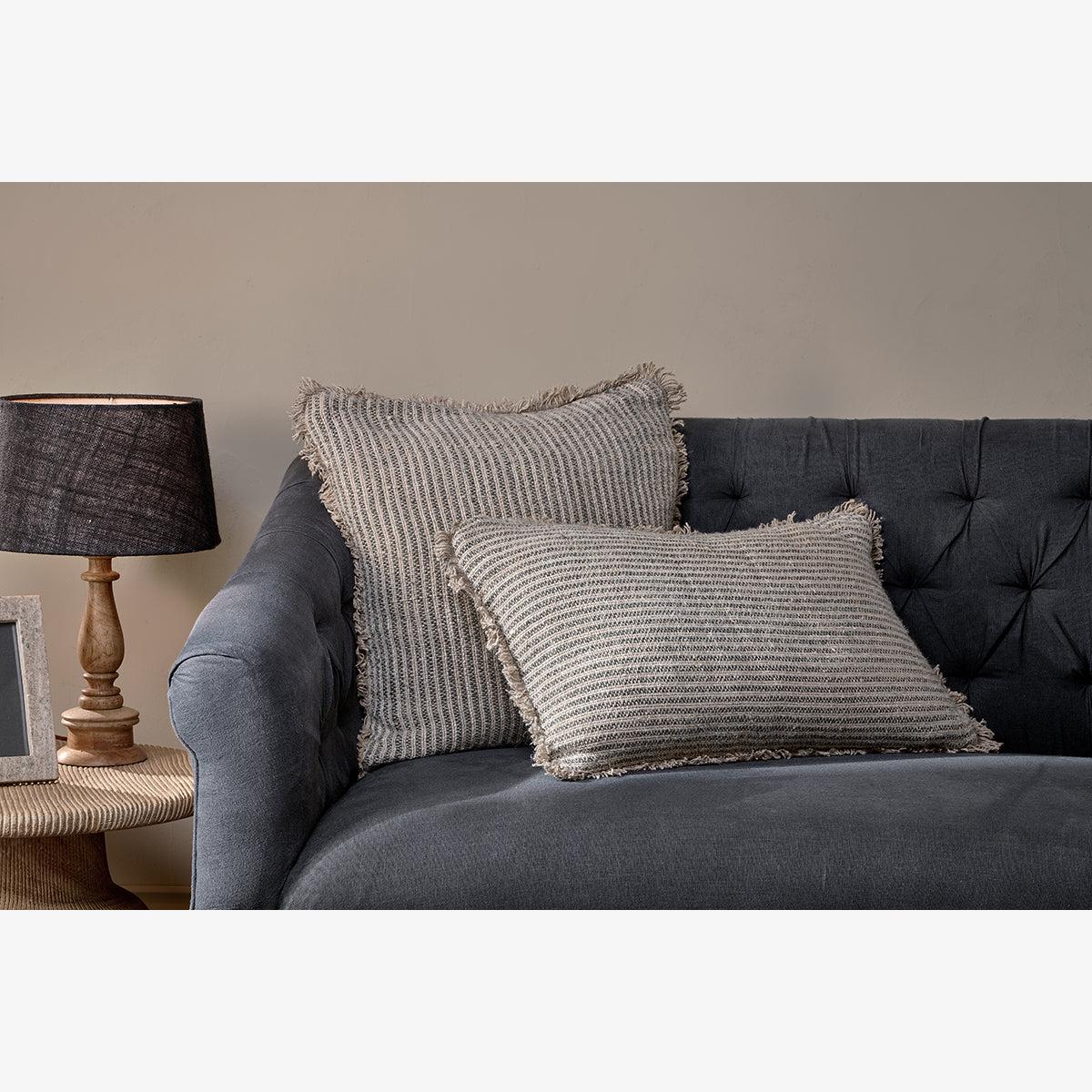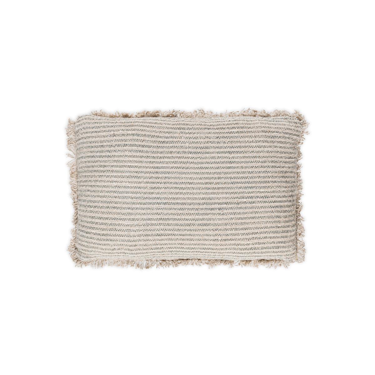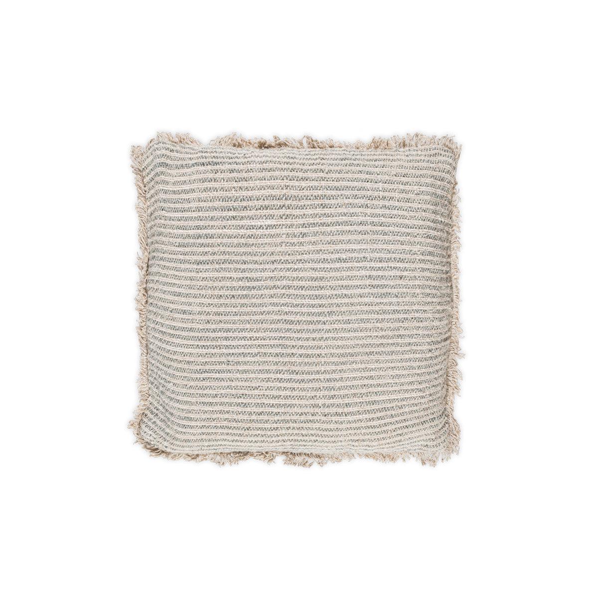 The linen Gili cushion blends a subtle, soft green stripe design with a softly textured finish for a laidback, understated look. Woven on traditional looms from pure linen for an organic and tactile feel, the lines blur softly between the colours for a muted natural effect. The fringed edges add to the relaxed aesthetic that will beautifully complement a natural scheme or highlight a darker sofa or armchair. Please note, this is the outer cover only. Available in two sizes.