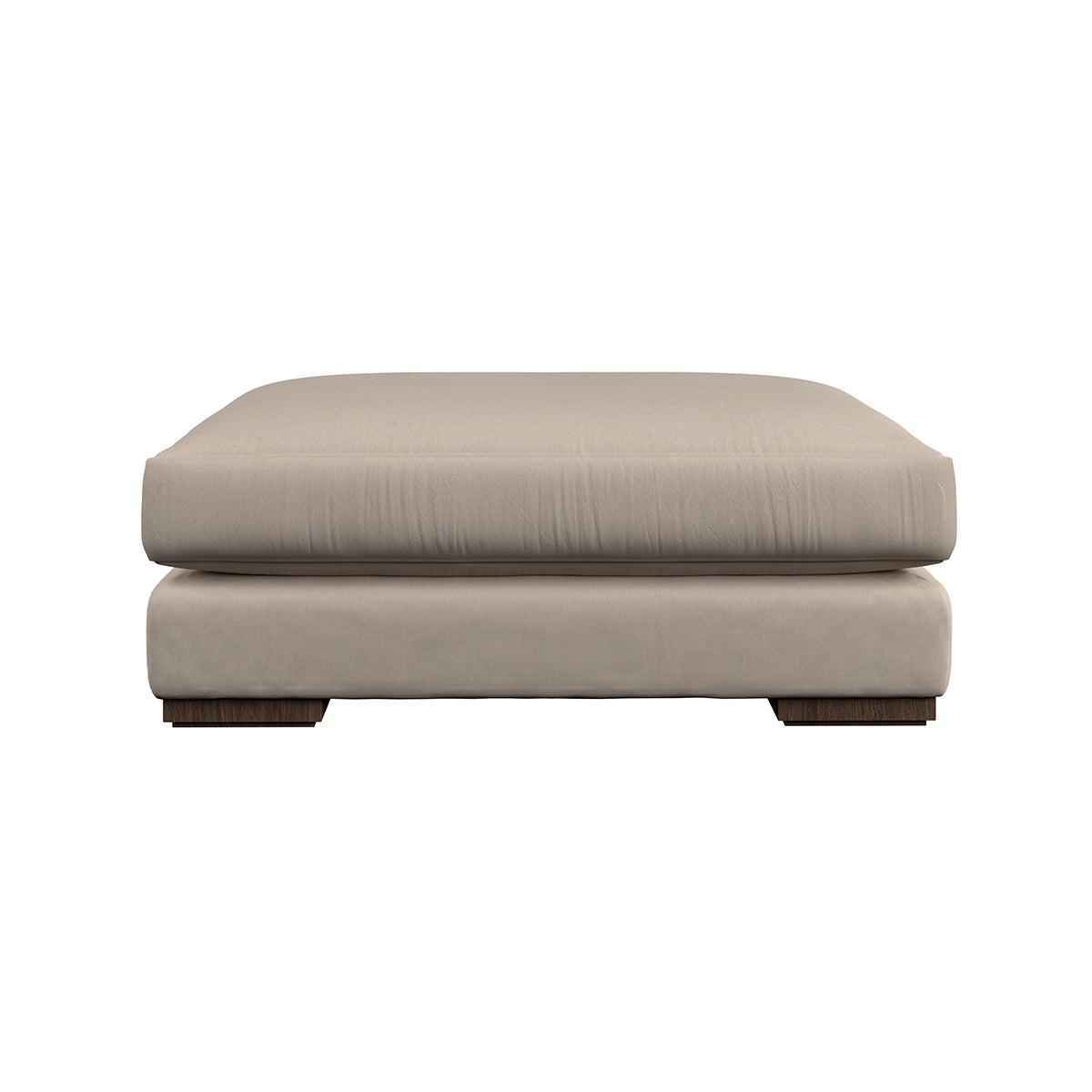 The laid-back sculptural shape of the Guddu grand footstool makes the perfect accompaniment to our Guddu sofa collection. Crafted in the UK from a solid wood frame, it has a foam seat with fibre wrap with solid wood block feet that provide just the right amount of elevation. Each piece is handcrafted by experts using traditional techniques for a quality finish that celebrates the best of British craftmanship. Our upholstery fabrics are chosen for their style and quality, where all fabrics are FR treated for domestic upholstery ensuring peace of mind as well as meeting specialist UK furniture requirements. Our curated colour palette offers a variety of sophisticated muted shades. Please note, our white background cut-out photography is shown in Natural for shape and style reference. Fabric Swatch Ordering We recommend ordering fabric swatches before placing your order, giving you the chance to feel the fabric and see your colour choices within your own home. You can order up to 6 free fabric swatches by clicking here. Before placing your order, it's important to take the time to measure the space you intend to place your made-to-order furniture to ensure it fits properly. You can read more in our Sofa Buying Guide.