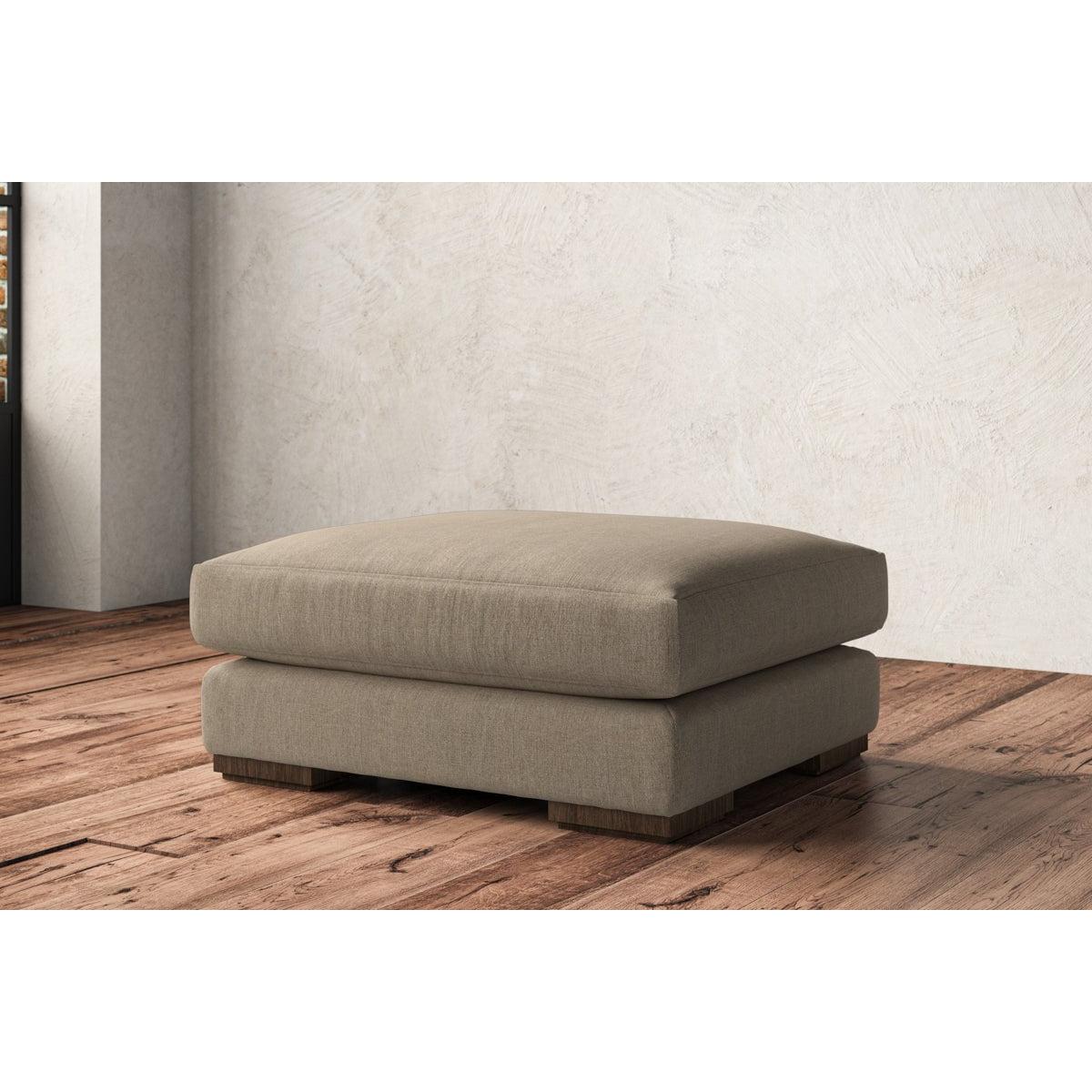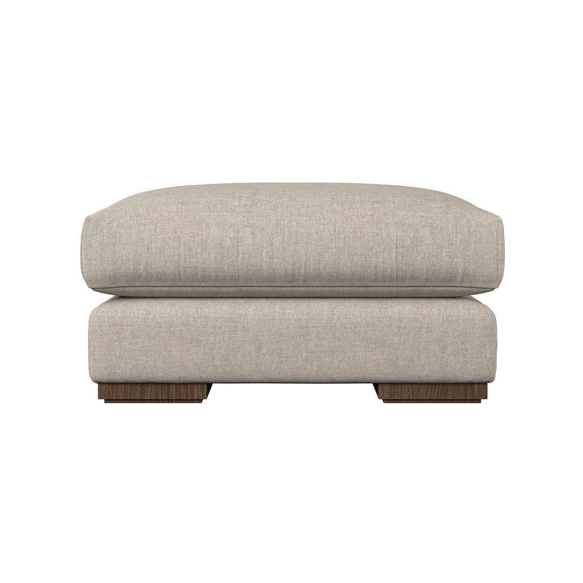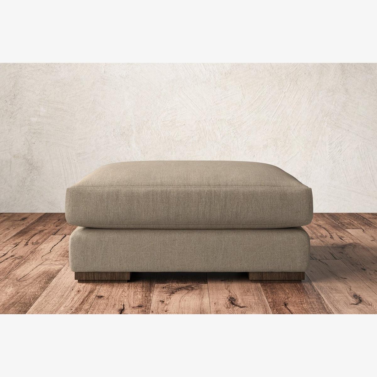 The laid-back sculptural shape of the Guddu large footstool makes the perfect accompaniment to our Guddu sofa collection. Crafted in the UK from a solid wood frame, it has a foam seat with fibre wrap with solid wood block feet that provide just the right amount of elevation. Each piece is handcrafted by experts using traditional techniques for a quality finish that celebrates the best of British craftmanship. Our upholstery fabrics are sourced from Italy’s finest mills and are chosen for their style and quality. We have selected a beautiful heavyweight, soft washed linen with an outstanding texture. Our linen is perfectly suited to upholstery, with an appealing natural, and tactile feel. It is also heavy and durable. The linen is FR treated for domestic upholstery ensuring peace of mind as well as meeting specialist UK furniture requirements. Our curated colour palette offers a variety of 11 sophisticated muted shades. Please note, our white background cut-out photography is shown in Natural for shape and style reference. Fabric Swatch Ordering We recommend ordering fabric swatches before placing your order, giving you the chance to feel the fabric and see your colour choices within your own home. You can order up to 6 free fabric swatches by clicking here. Before placing your order, it's important to take the time to measure the space you intend to place your made-to-order furniture to ensure it fits properly. You can read more in our Sofa Buying Guide.
