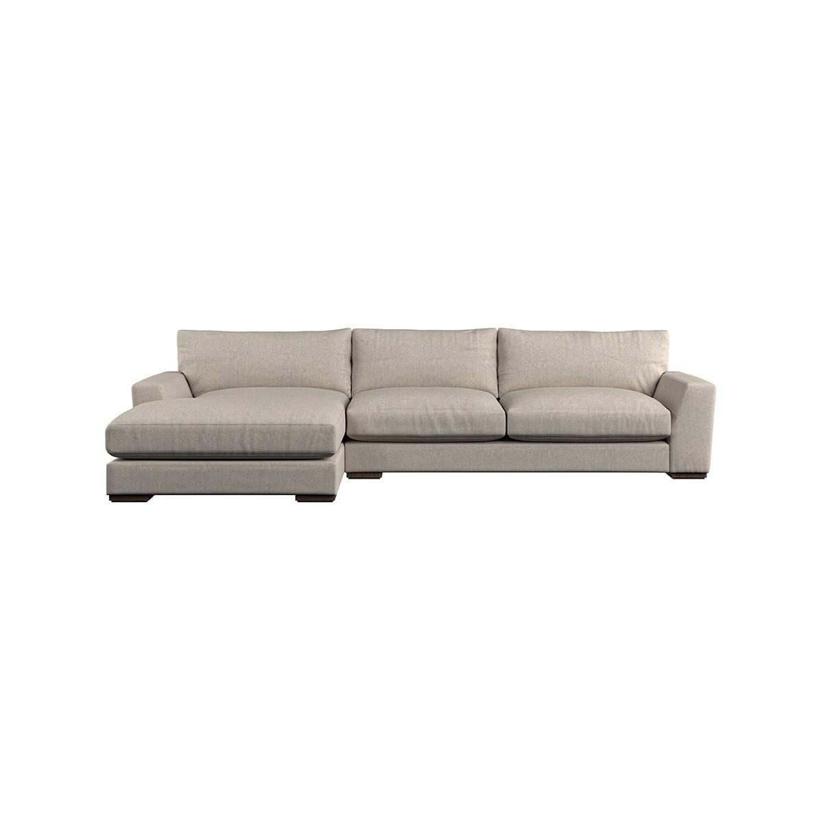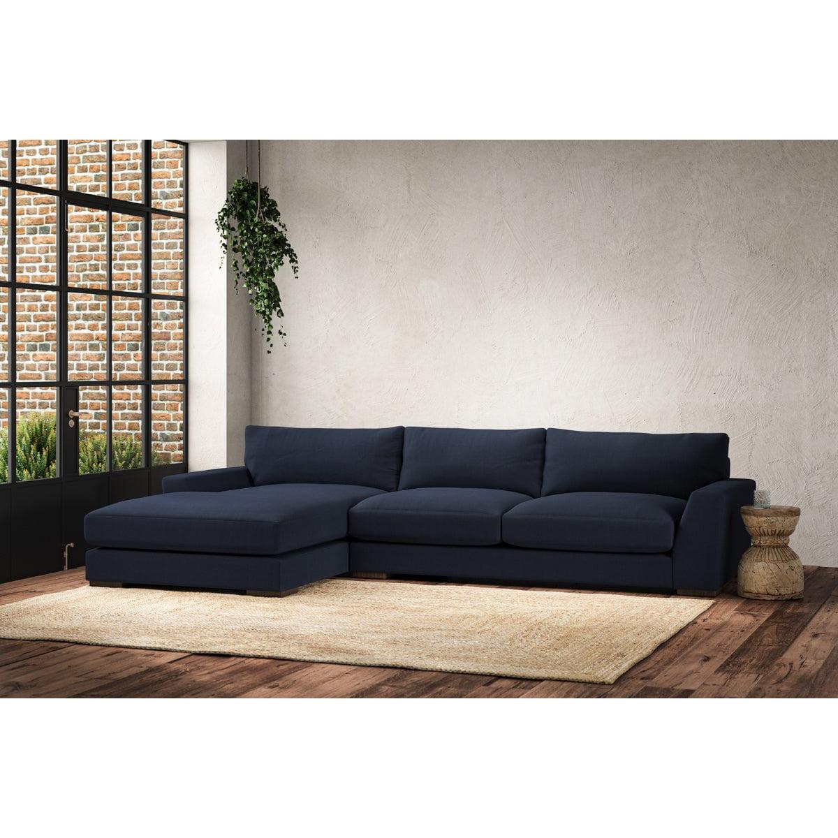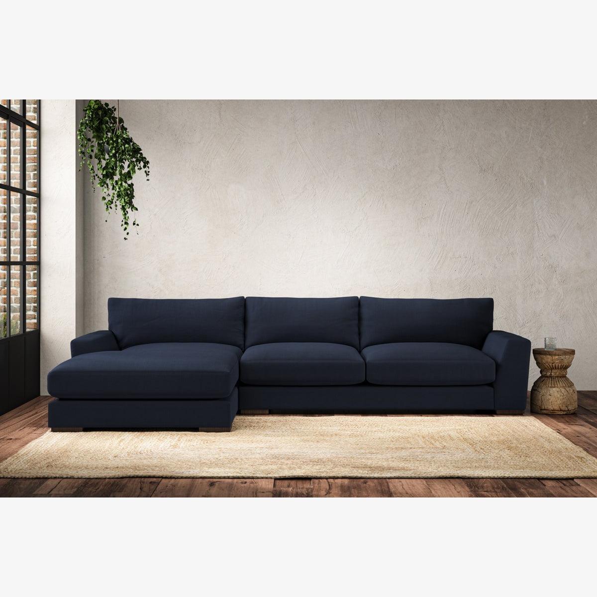 The laid-back sculptural shape of the Guddu large left hand chaise sofa brings effortless style to an interior. The generous arms and deep seat cushions make this collection the perfect choice for families or those that like a bit of extra space to stretch out. Details include separate back cushions, exceptional quality fabrics and solid wood block feet. Each piece is handcrafted by experts using traditional techniques for a quality finish that celebrates the best of British craftmanship. The hardwood frame and high-grade steel serpentine springs are selected for enduring quality, and the cushions are made from foam with a fibre wrap for added comfort. The fabric is hand cut to size, playing close attention to the characteristics of the material, and the sculpted hardwood feet provides the finishing detail. Our upholstery fabrics are sourced from Italy’s finest mills and are chosen for their style and quality. We have selected a beautiful heavyweight, soft washed linen with an outstanding texture. Our linen is perfectly suited to upholstery, with an appealing natural, and tactile feel. It is also heavy and durable. The linen is FR treated for domestic upholstery ensuring peace of mind as well as meeting specialist UK furniture requirements. Our curated colour palette offers a variety of 11 sophisticated muted shades. Please note, our white background cut-out photography is shown in Natural for shape and style reference. Fabric Swatch Ordering We recommend ordering fabric swatches before placing your order, giving you the chance to feel the fabric and see your colour choices within your own home. You can order up to 6 free fabric swatches by clicking here. Before placing your order, it's important to take the time to measure the space you intend to place your made-to-order furniture to ensure it fits properly. You can read more in our Sofa Buying Guide.