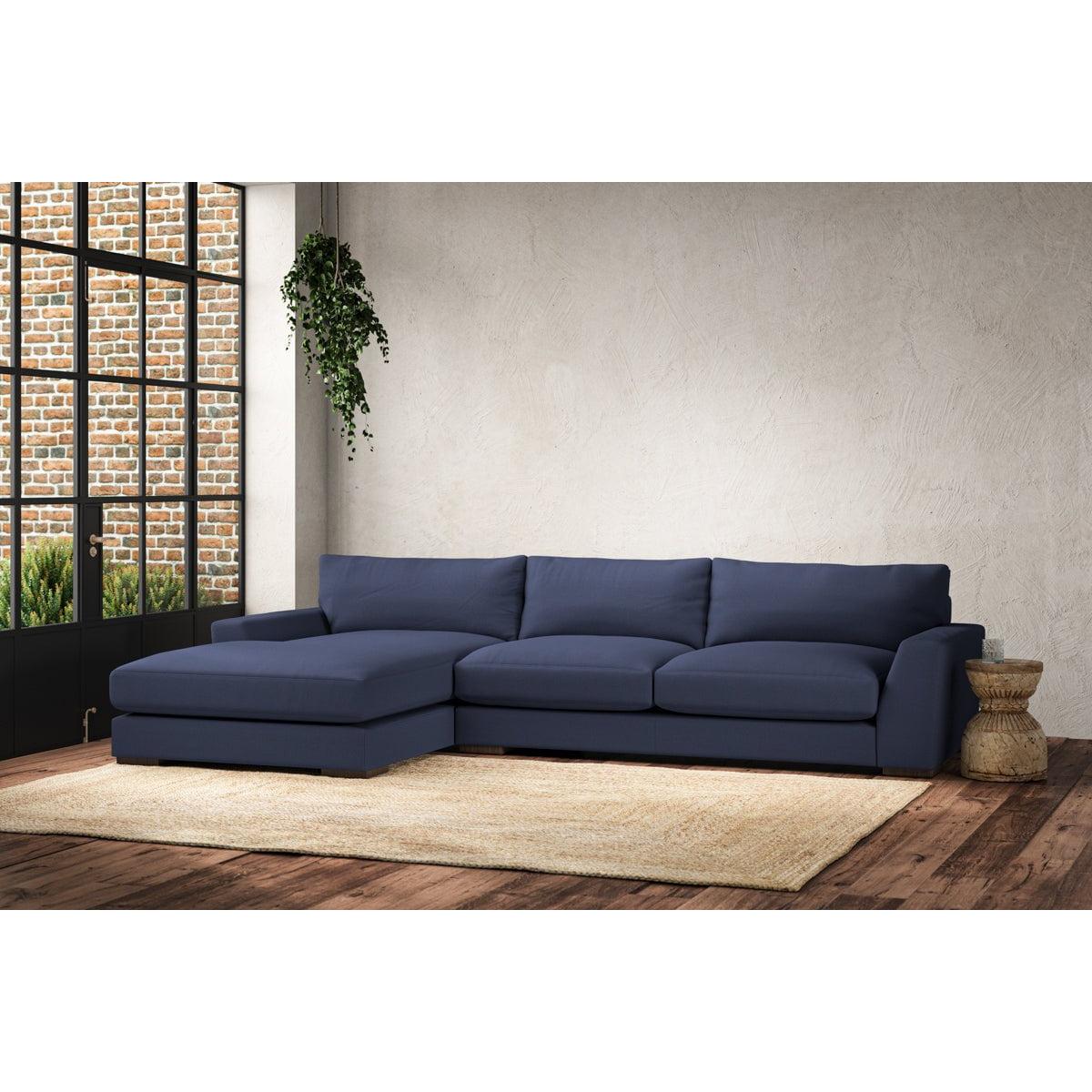 The laid-back sculptural shape of the Guddu large left hand chaise sofa brings effortless style to an interior. The generous arms and deep seat cushions make this collection the perfect choice for families or those that like a bit of extra space to stretch out. Details include separate back cushions, exceptional quality fabrics and solid wood block feet. Each piece is handcrafted by experts using traditional techniques for a quality finish that celebrates the best of British craftmanship. The hardwood frame and high-grade steel serpentine springs are selected for enduring quality, and the cushions are made from foam with a fibre wrap for added comfort. The fabric is hand cut to size, playing close attention to the characteristics of the material, and the sculpted hardwood feet provides the finishing detail. Our upholstery fabrics are chosen for their style and quality, where all fabrics are FR treated for domestic upholstery ensuring peace of mind as well as meeting specialist UK furniture requirements. Our curated colour palette offers a variety of sophisticated muted shades. Please note, our white background cut-out photography is shown in Natural for shape and style reference. Fabric Swatch Ordering We recommend ordering fabric swatches before placing your order, giving you the chance to feel the fabric and see your colour choices within your own home. You can order up to 6 free fabric swatches by clicking here. Before placing your order, it's important to take the time to measure the space you intend to place your made-to-order furniture to ensure it fits properly. You can read more in our Sofa Buying Guide.