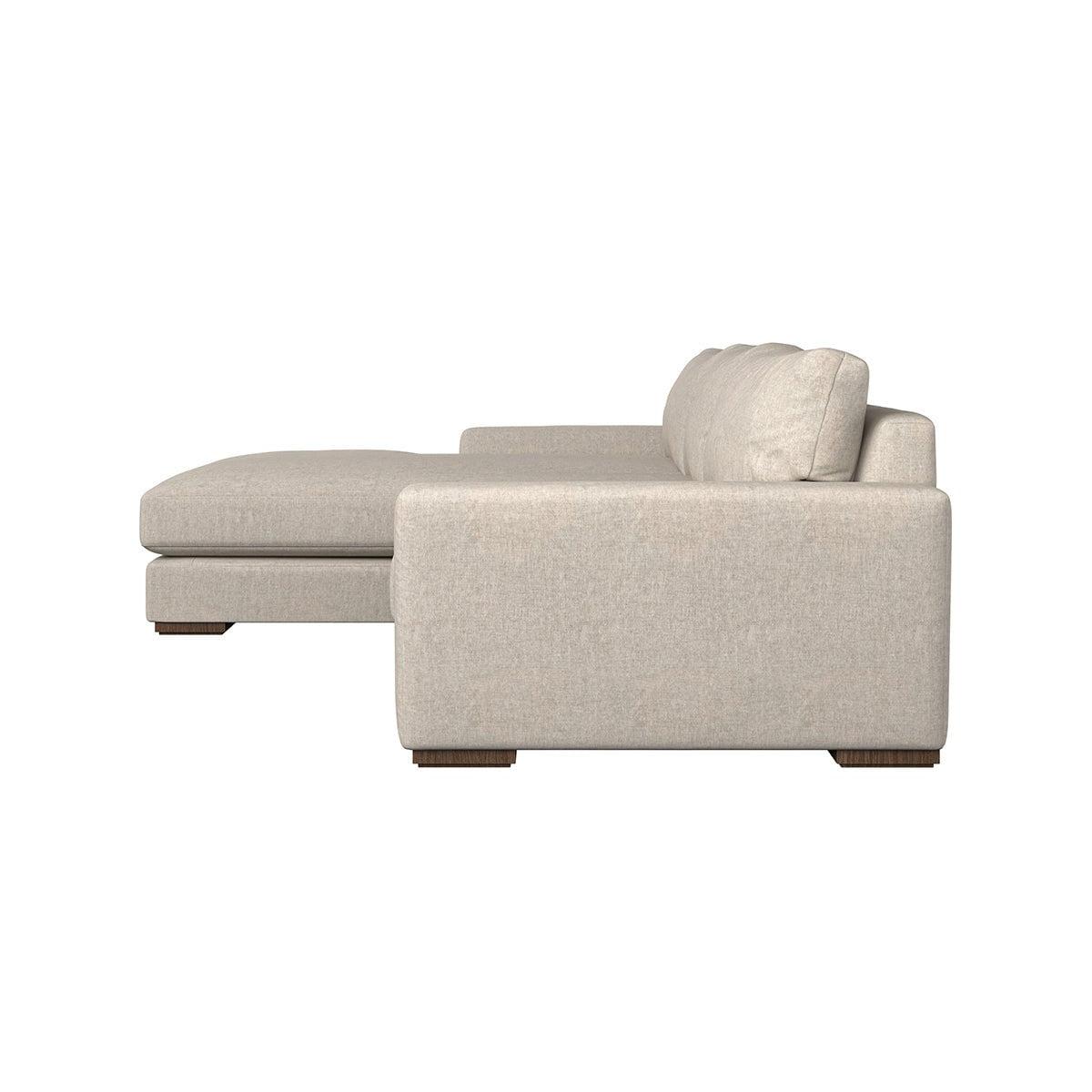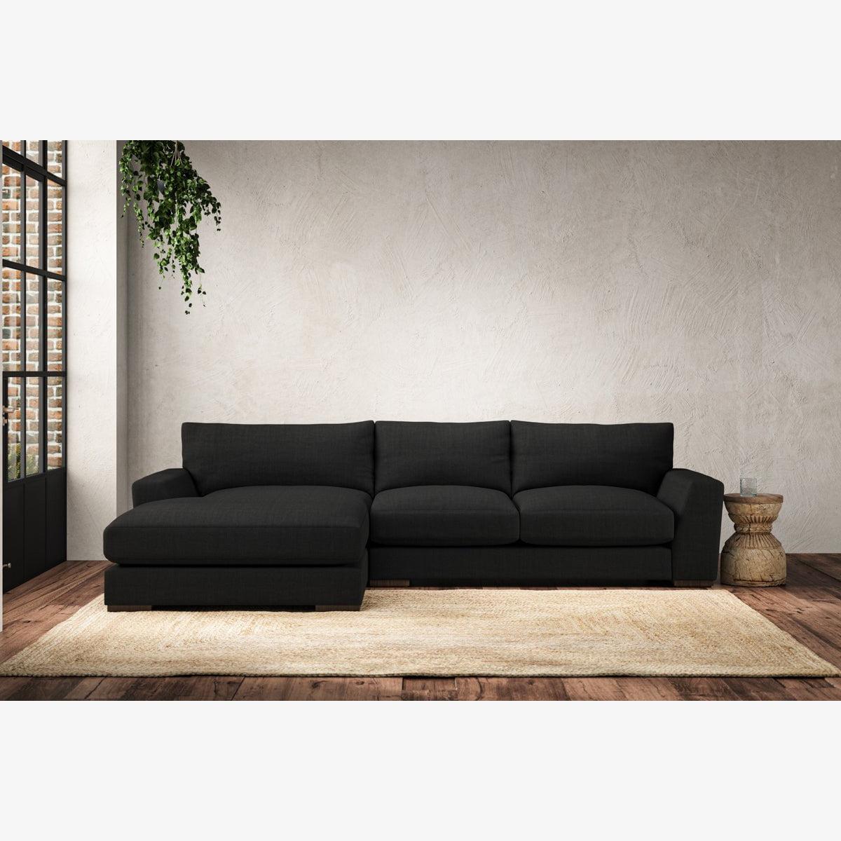 The laid-back sculptural shape of the Guddu medium left hand chaise sofa brings effortless style to an interior. The generous arms and deep seat cushions make this collection the perfect choice for families or those that like a bit of extra space to stretch out. Details include separate back cushions, exceptional quality fabrics and solid wood block feet. Each piece is handcrafted by experts using traditional techniques for a quality finish that celebrates the best of British craftmanship. The hardwood frame and high-grade steel serpentine springs are selected for enduring quality, and the cushions are made from foam with a fibre wrap for added comfort. The fabric is hand cut to size, playing close attention to the characteristics of the material, and the sculpted hardwood feet provides the finishing detail. Our upholstery fabrics are sourced from Italy’s finest mills and are chosen for their style and quality. We have selected a beautiful heavyweight, soft washed linen with an outstanding texture. Our linen is perfectly suited to upholstery, with an appealing natural, and tactile feel. It is also heavy and durable. The linen is FR treated for domestic upholstery ensuring peace of mind as well as meeting specialist UK furniture requirements. Our curated colour palette offers a variety of 11 sophisticated muted shades. Please note, our white background cut-out photography is shown in Natural for shape and style reference. Fabric Swatch Ordering We recommend ordering fabric swatches before placing your order, giving you the chance to feel the fabric and see your colour choices within your own home. You can order up to 6 free fabric swatches by clicking here. Before placing your order, it's important to take the time to measure the space you intend to place your made-to-order furniture to ensure it fits properly. You can read more in our Sofa Buying Guide.