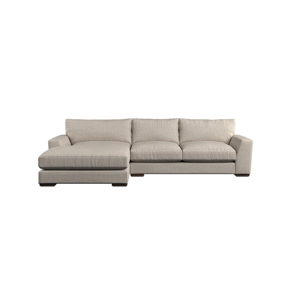 The laid-back sculptural shape of the Guddu medium left hand chaise sofa brings effortless style to an interior. The generous arms and deep seat cushions make this collection the perfect choice for families or those that like a bit of extra space to stretch out. Details include separate back cushions, exceptional quality fabrics and solid wood block feet. Each piece is handcrafted by experts using traditional techniques for a quality finish that celebrates the best of British craftmanship. The hardwood frame and high-grade steel serpentine springs are selected for enduring quality, and the cushions are made from foam with a fibre wrap for added comfort. The fabric is hand cut to size, playing close attention to the characteristics of the material, and the sculpted hardwood feet provides the finishing detail. Our upholstery fabrics are sourced from Italy’s finest mills and are chosen for their style and quality. We have selected a beautiful heavyweight, soft washed linen with an outstanding texture. Our linen is perfectly suited to upholstery, with an appealing natural, and tactile feel. It is also heavy and durable. The linen is FR treated for domestic upholstery ensuring peace of mind as well as meeting specialist UK furniture requirements. Our curated colour palette offers a variety of 11 sophisticated muted shades. Please note, our white background cut-out photography is shown in Natural for shape and style reference. Fabric Swatch Ordering We recommend ordering fabric swatches before placing your order, giving you the chance to feel the fabric and see your colour choices within your own home. You can order up to 6 free fabric swatches by clicking here. Before placing your order, it's important to take the time to measure the space you intend to place your made-to-order furniture to ensure it fits properly. You can read more in our Sofa Buying Guide.