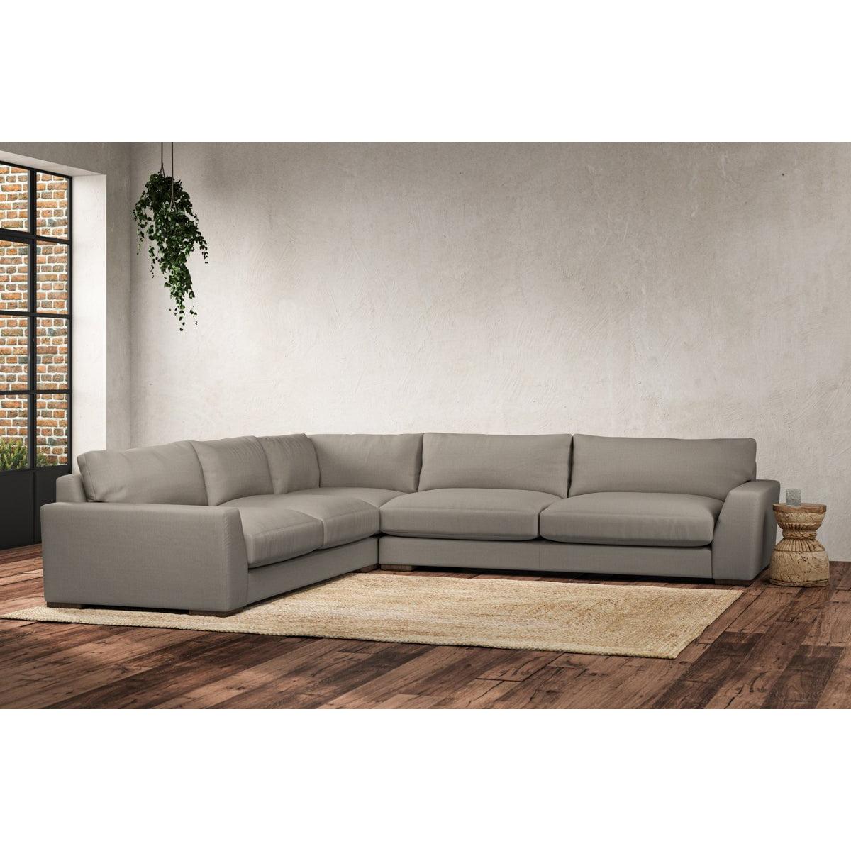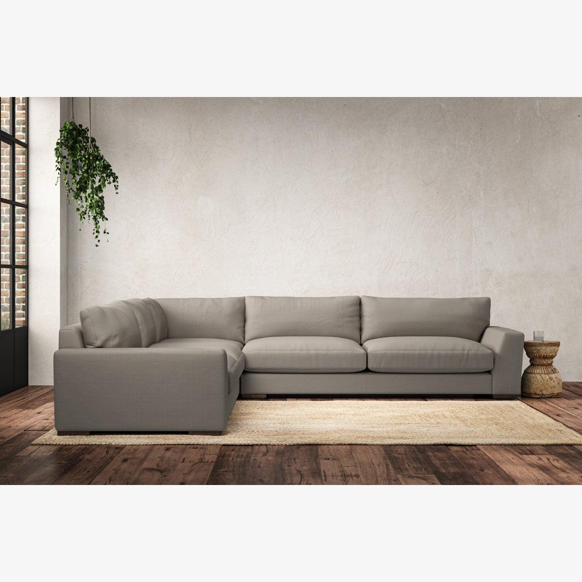 The laid-back sculptural shape of the Guddu grand left hand corner sofa brings effortless style to an interior. The generous arms and deep seat cushions make this collection the perfect choice for families or those that like a bit of extra space to stretch out. Details include separate back cushions, exceptional quality fabrics and solid wood block feet. Each piece is handcrafted by experts using traditional techniques for a quality finish that celebrates the best of British craftmanship. The hardwood frame and high-grade steel serpentine springs are selected for enduring quality, and the cushions are made from foam with a fibre wrap for added comfort. The fabric is hand cut to size, playing close attention to the characteristics of the material, and the sculpted hardwood feet provides the finishing detail. Our upholstery fabrics are chosen for their style and quality, where all fabrics are FR treated for domestic upholstery ensuring peace of mind as well as meeting specialist UK furniture requirements. Our curated colour palette offers a variety of sophisticated muted shades. Please note, our white background cut-out photography is shown in Natural for shape and style reference. Fabric Swatch OrderingWe recommend ordering fabric swatches before placing your order, giving you the chance to feel the fabric and see your colour choices within your own home. You can order up to 6 free fabric swatches by clicking here. it fit?Before placing your order, it's important to take the time to measure the space you intend to place your made-to-order furniture to ensure it fits properly. You can read more in our Sofa Buying Guide.