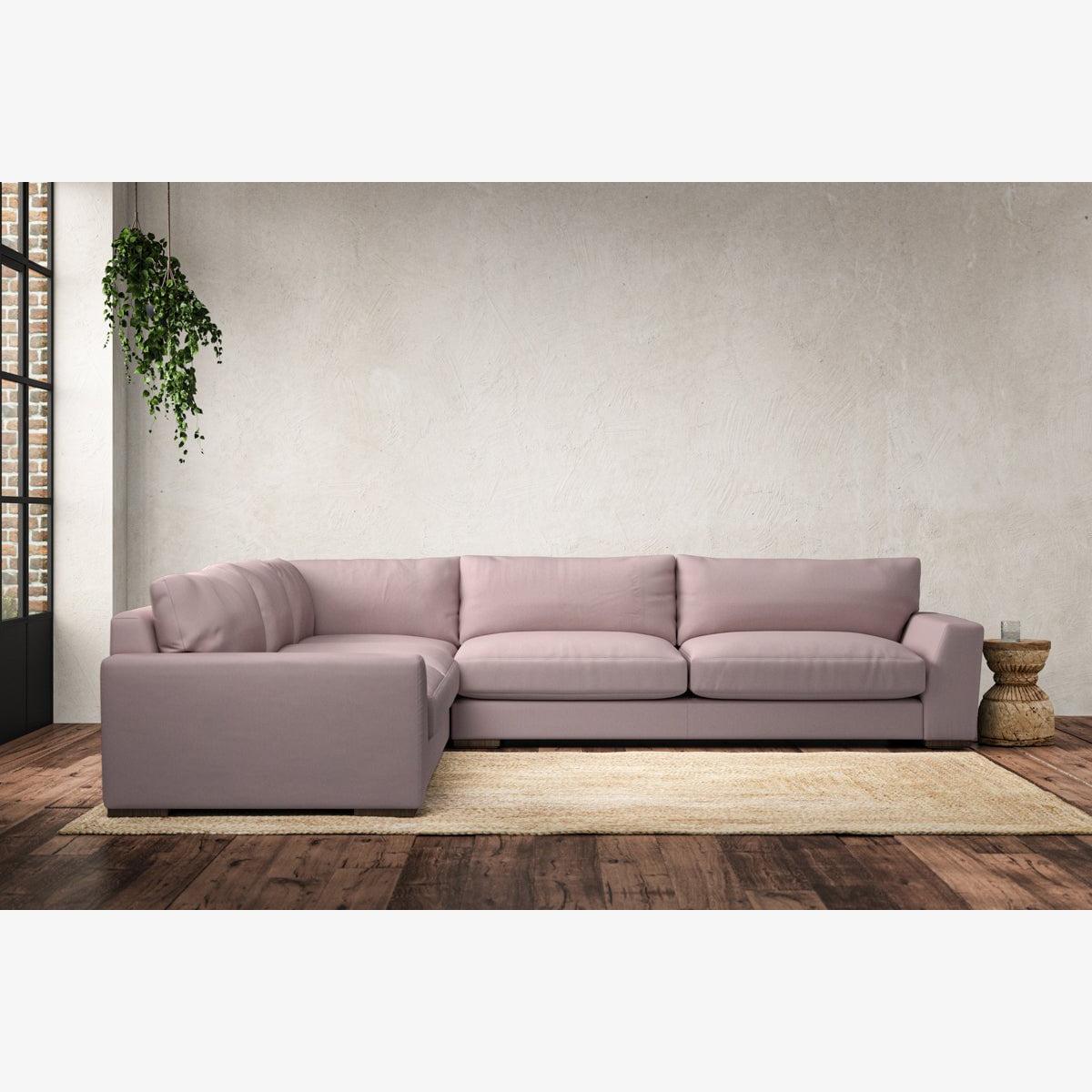 The laid-back sculptural shape of the Guddu grand left hand corner sofa brings effortless style to an interior. The generous arms and deep seat cushions make this collection the perfect choice for families or those that like a bit of extra space to stretch out. Details include separate back cushions, exceptional quality fabrics and solid wood block feet. Each piece is handcrafted by experts using traditional techniques for a quality finish that celebrates the best of British craftmanship. The hardwood frame and high-grade steel serpentine springs are selected for enduring quality, and the cushions are made from foam with a fibre wrap for added comfort. The fabric is hand cut to size, playing close attention to the characteristics of the material, and the sculpted hardwood feet provides the finishing detail. Our upholstery fabrics are chosen for their style and quality, where all fabrics are FR treated for domestic upholstery ensuring peace of mind as well as meeting specialist UK furniture requirements. Our curated colour palette offers a variety of sophisticated muted shades. Please note, our white background cut-out photography is shown in Natural for shape and style reference. Fabric Swatch Ordering We recommend ordering fabric swatches before placing your order, giving you the chance to feel the fabric and see your colour choices within your own home. You can order up to 6 free fabric swatches by clicking here. Before placing your order, it's important to take the time to measure the space you intend to place your made-to-order furniture to ensure it fits properly. You can read more in our Sofa Buying Guide.