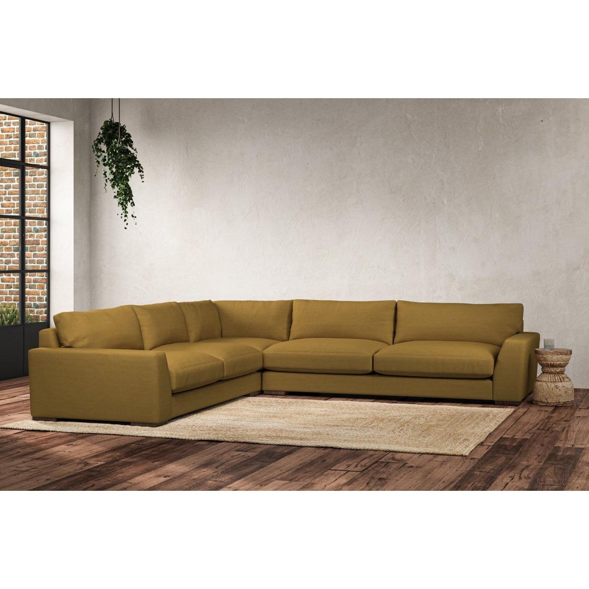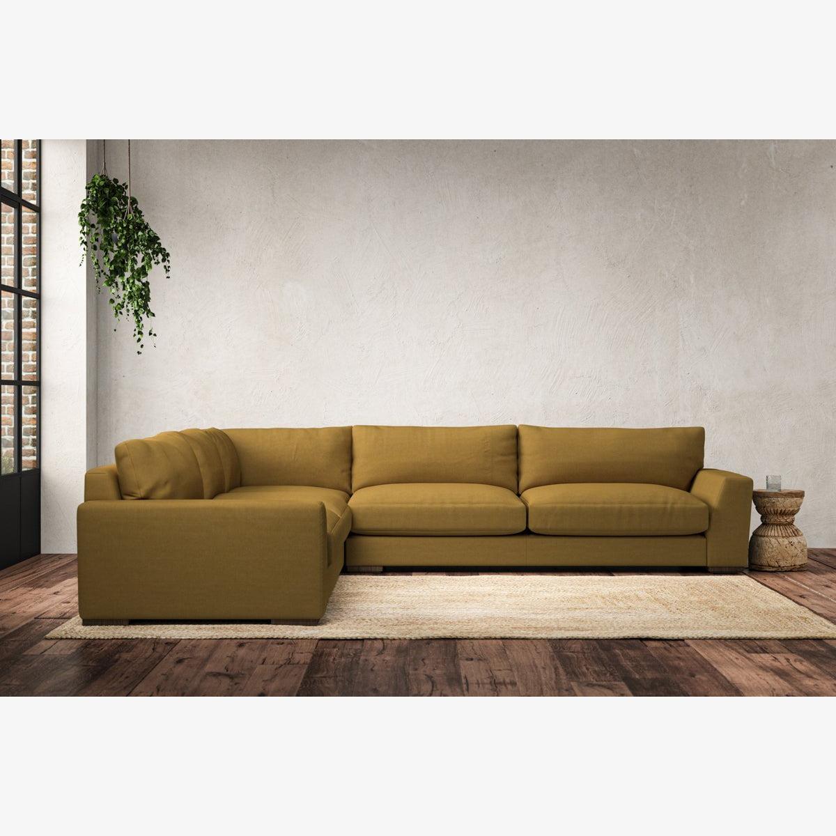 The laid-back sculptural shape of the Guddu grand left hand corner sofa brings effortless style to an interior. The generous arms and deep seat cushions make this collection the perfect choice for families or those that like a bit of extra space to stretch out. Details include separate back cushions, exceptional quality fabrics and solid wood block feet. Each piece is handcrafted by experts using traditional techniques for a quality finish that celebrates the best of British craftmanship. The hardwood frame and high-grade steel serpentine springs are selected for enduring quality, and the cushions are made from foam with a fibre wrap for added comfort. The fabric is hand cut to size, playing close attention to the characteristics of the material, and the sculpted hardwood feet provides the finishing detail. Our upholstery fabrics are chosen for their style and quality, where all fabrics are FR treated for domestic upholstery ensuring peace of mind as well as meeting specialist UK furniture requirements. Our curated colour palette offers a variety of sophisticated muted shades. Please note, our white background cut-out photography is shown in Natural for shape and style reference. Fabric Swatch Ordering We recommend ordering fabric swatches before placing your order, giving you the chance to feel the fabric and see your colour choices within your own home. You can order up to 6 free fabric swatches by clicking here. Before placing your order, it's important to take the time to measure the space you intend to place your made-to-order furniture to ensure it fits properly. You can read more in our Sofa Buying Guide.