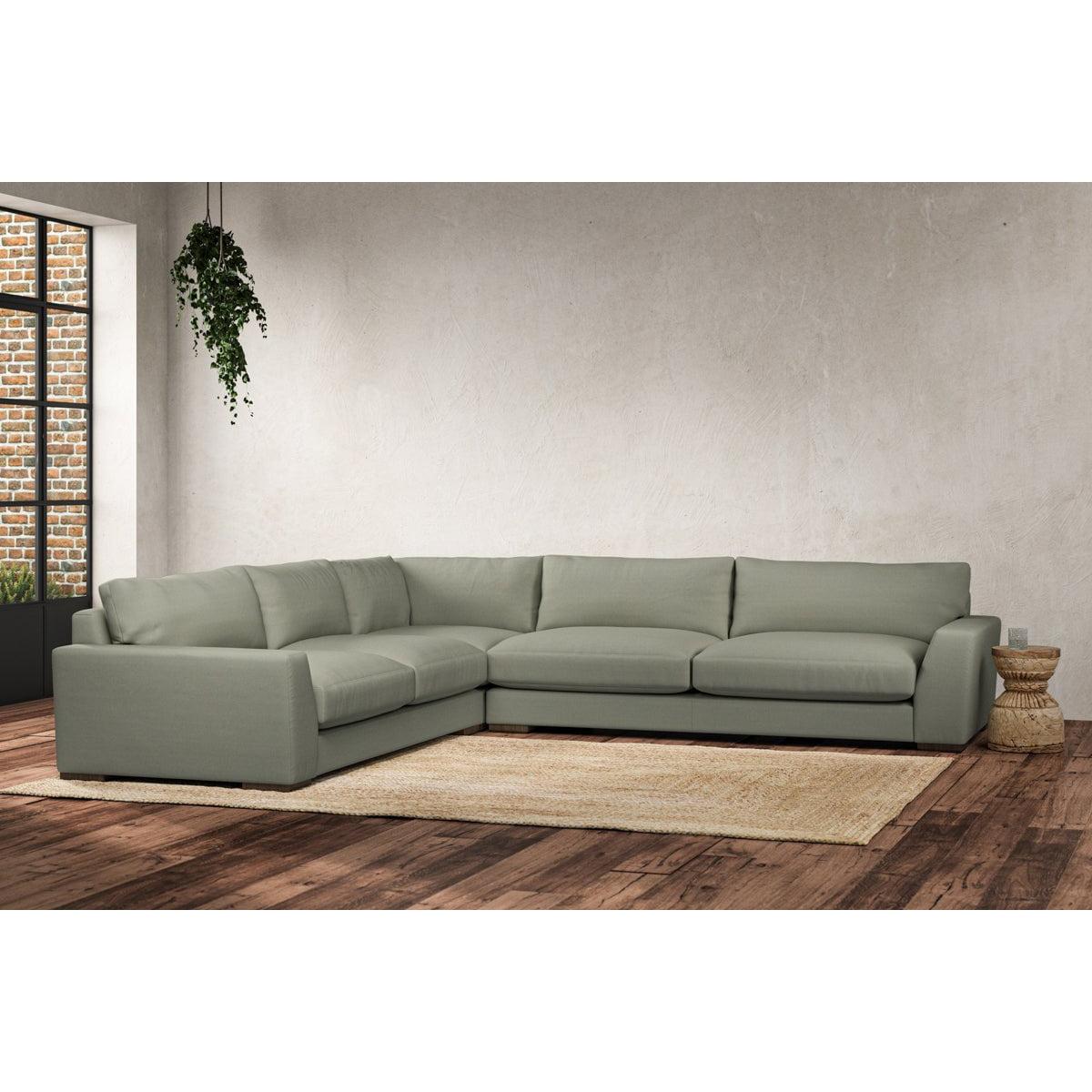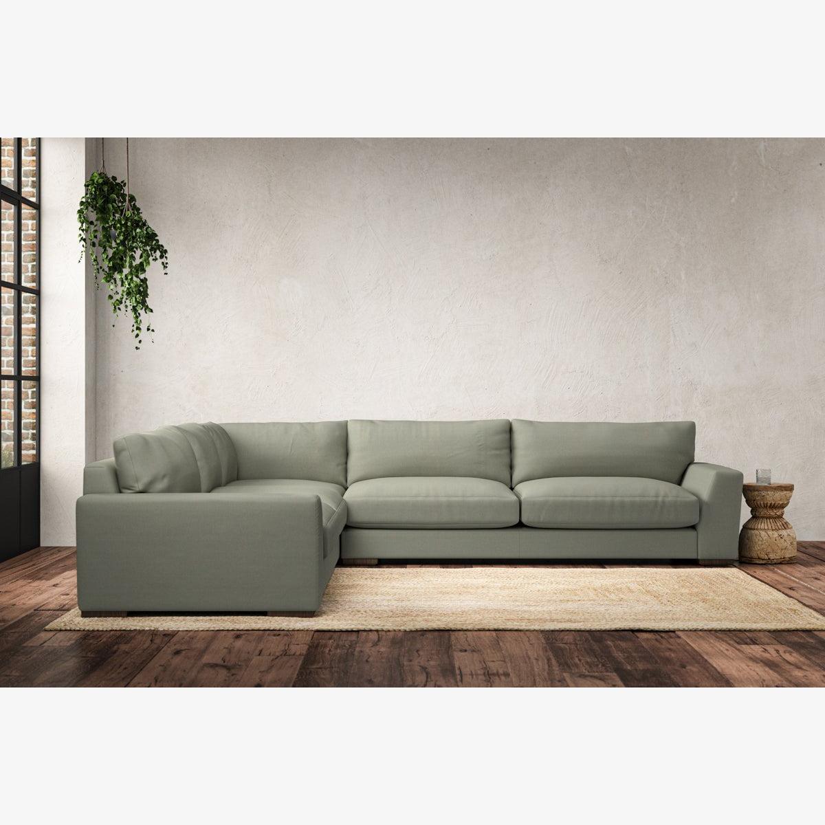 The laid-back sculptural shape of the Guddu grand left hand corner sofa brings effortless style to an interior. The generous arms and deep seat cushions make this collection the perfect choice for families or those that like a bit of extra space to stretch out. Details include separate back cushions, exceptional quality fabrics and solid wood block feet. Each piece is handcrafted by experts using traditional techniques for a quality finish that celebrates the best of British craftmanship. The hardwood frame and high-grade steel serpentine springs are selected for enduring quality, and the cushions are made from foam with a fibre wrap for added comfort. The fabric is hand cut to size, playing close attention to the characteristics of the material, and the sculpted hardwood feet provides the finishing detail. Our upholstery fabrics are chosen for their style and quality, where all fabrics are FR treated for domestic upholstery ensuring peace of mind as well as meeting specialist UK furniture requirements. Our curated colour palette offers a variety of sophisticated muted shades. Please note, our white background cut-out photography is shown in Natural for shape and style reference. Fabric Swatch Ordering We recommend ordering fabric swatches before placing your order, giving you the chance to feel the fabric and see your colour choices within your own home. You can order up to 6 free fabric swatches by clicking here. Before placing your order, it's important to take the time to measure the space you intend to place your made-to-order furniture to ensure it fits properly. You can read more in our Sofa Buying Guide.